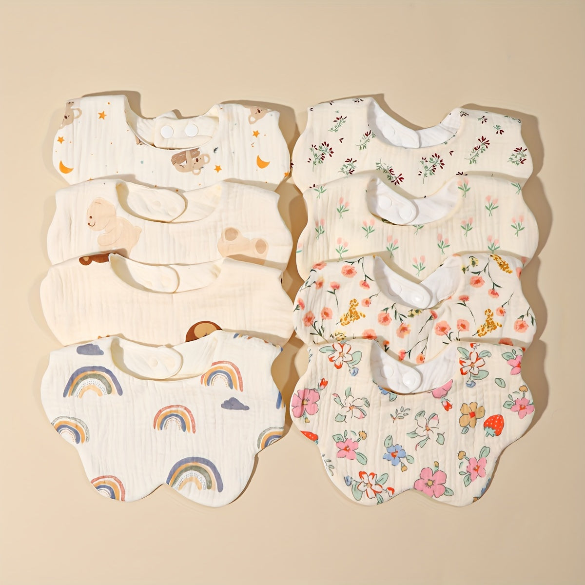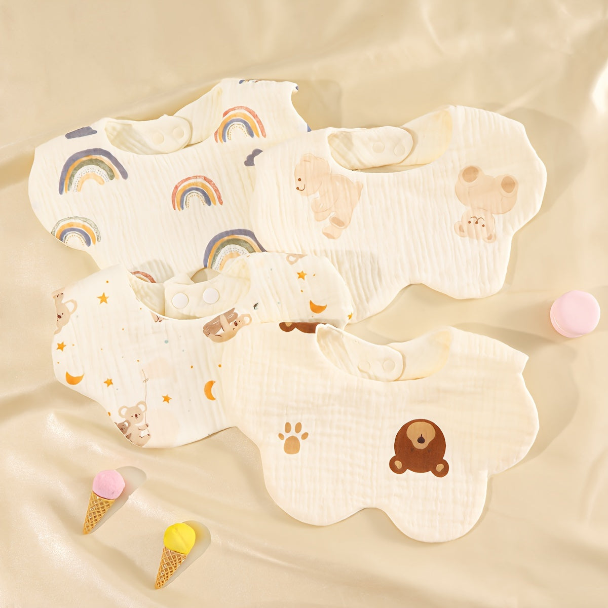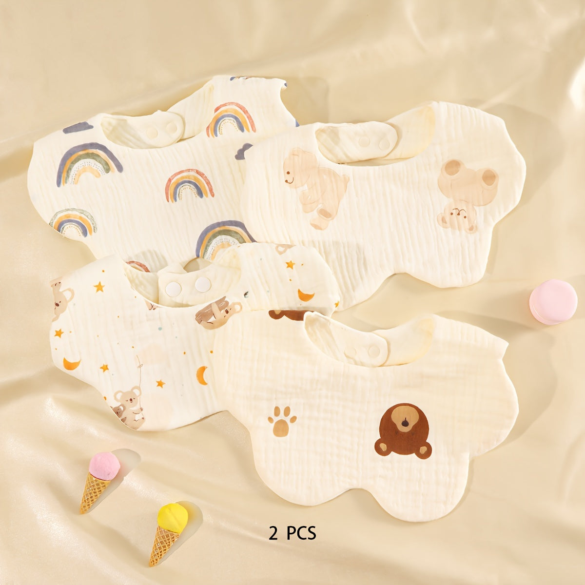Bolalar uchun 0-3 yoshdagi bolalar bibsi, paxta gazli, so‘riladigan, chiroyli multfilm dizayni