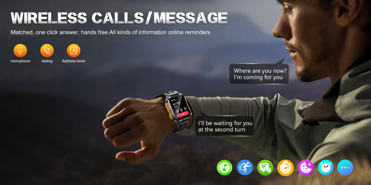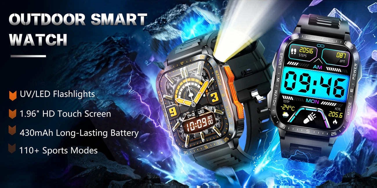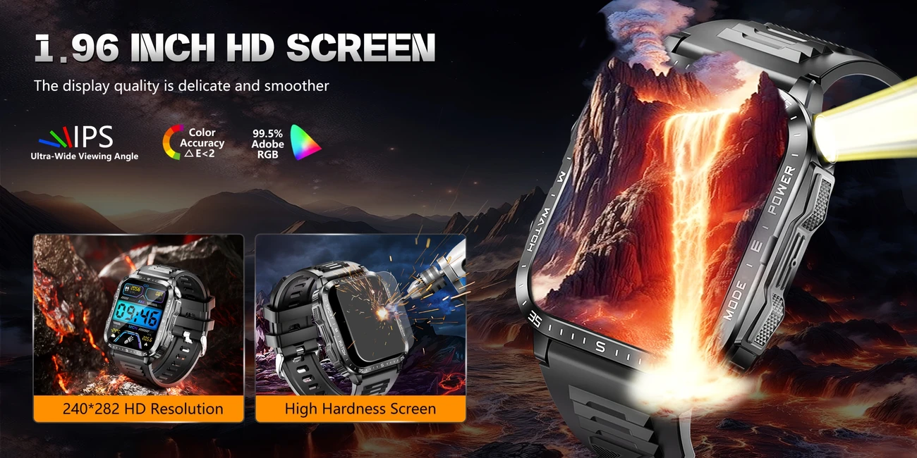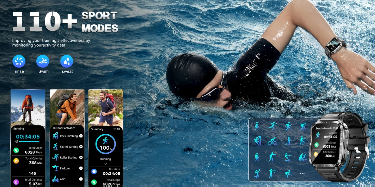 GAWSUG Aqlli Soat Erkaklar Uchun IPS Ekran, Suvga Chidamli, 100+ Sport Rejimlari, Signalizatsiya, Musiqa, Uzoq Muddatli Batareya, Silikon Kamar, Simsiz, Qayta Zaryadlanadigan Litiy Polimer, Fitness &