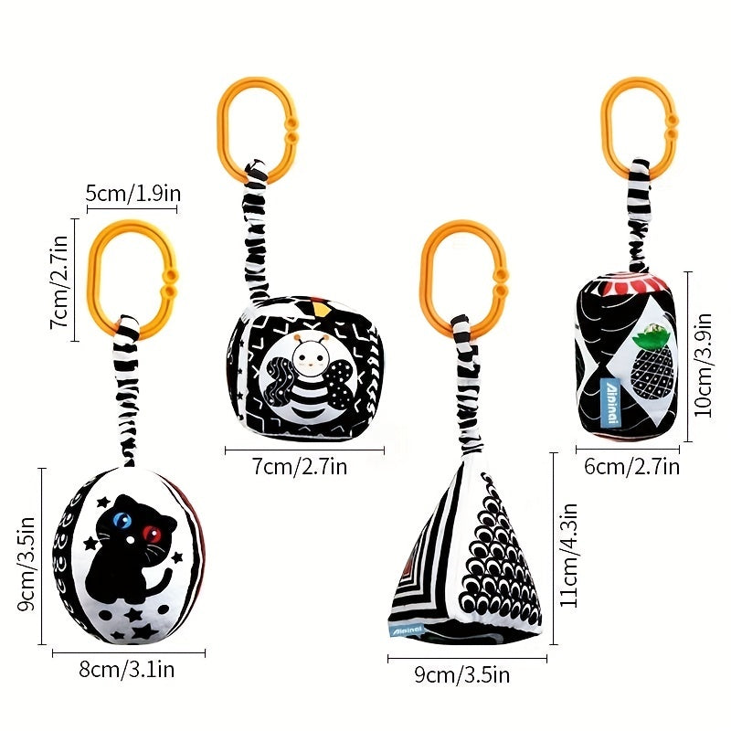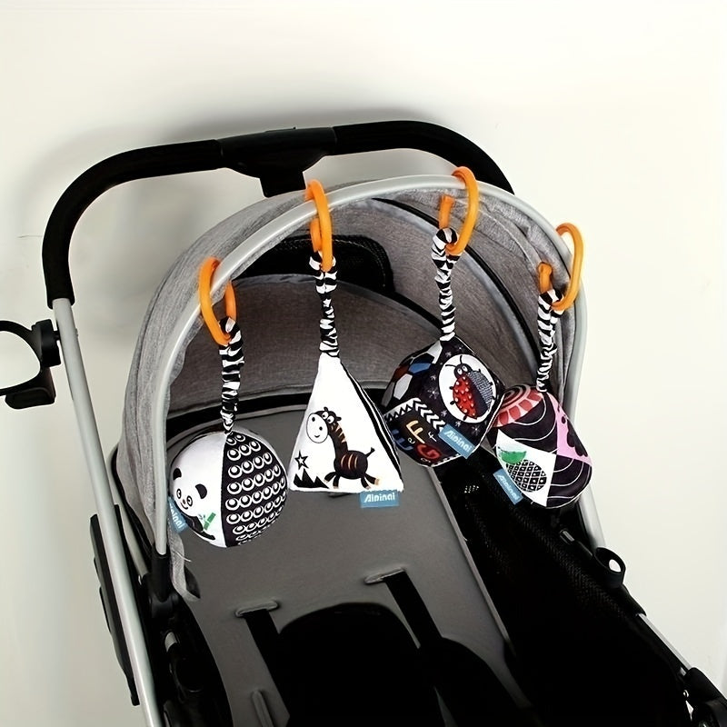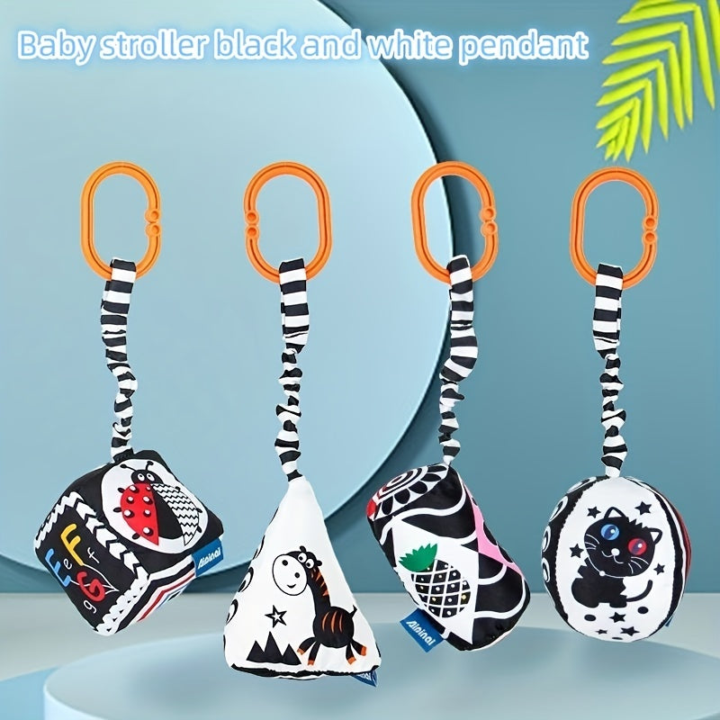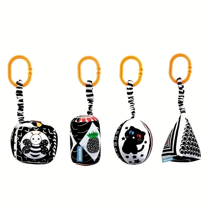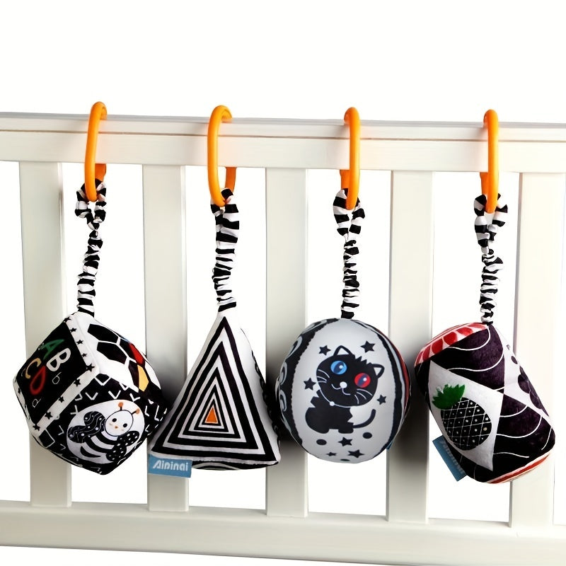 Qora va oq geometrik chaqaloq osilib o'ynash uchun o'yinchoqlar, ko'ruv stimulyatsiya va erta ta'lim uchun