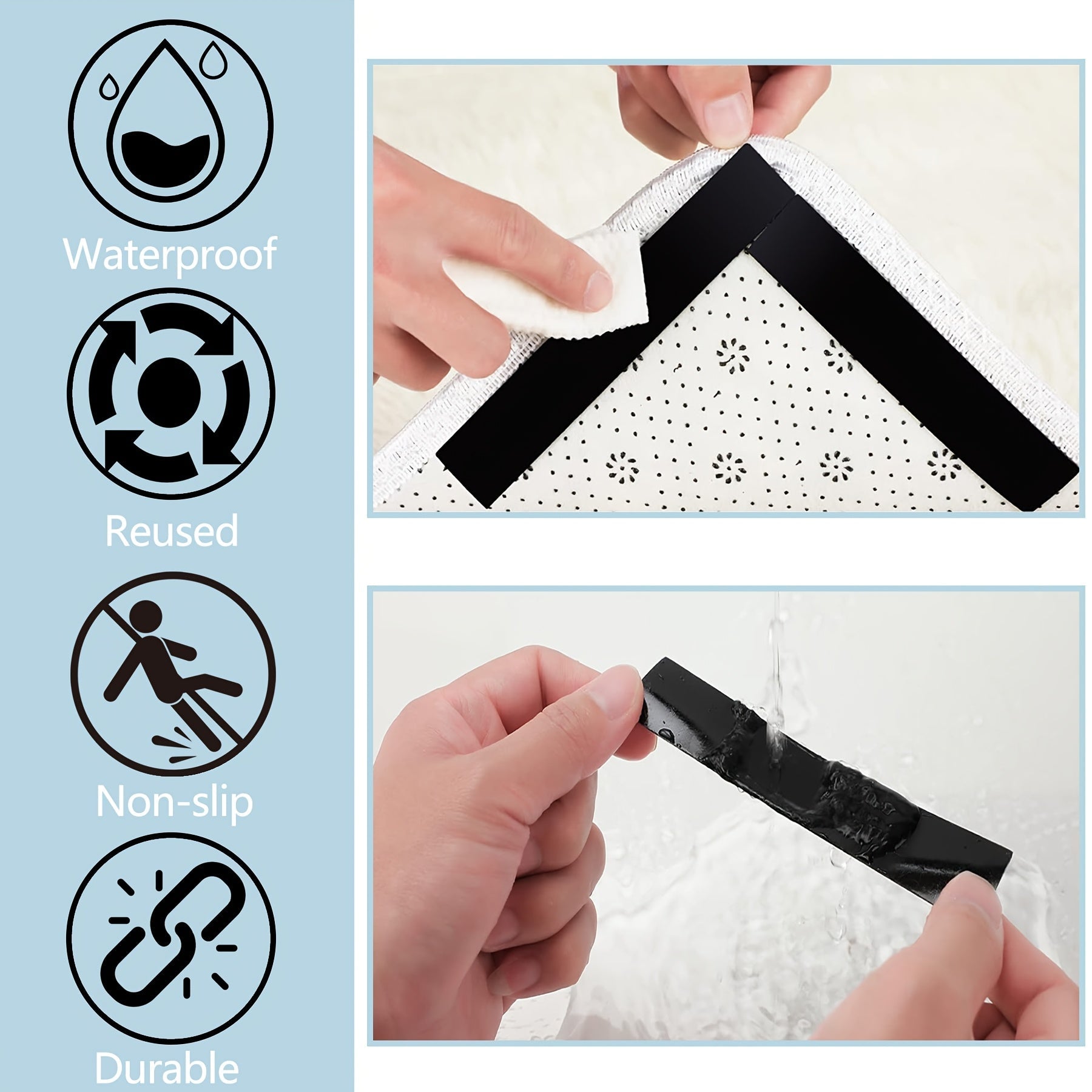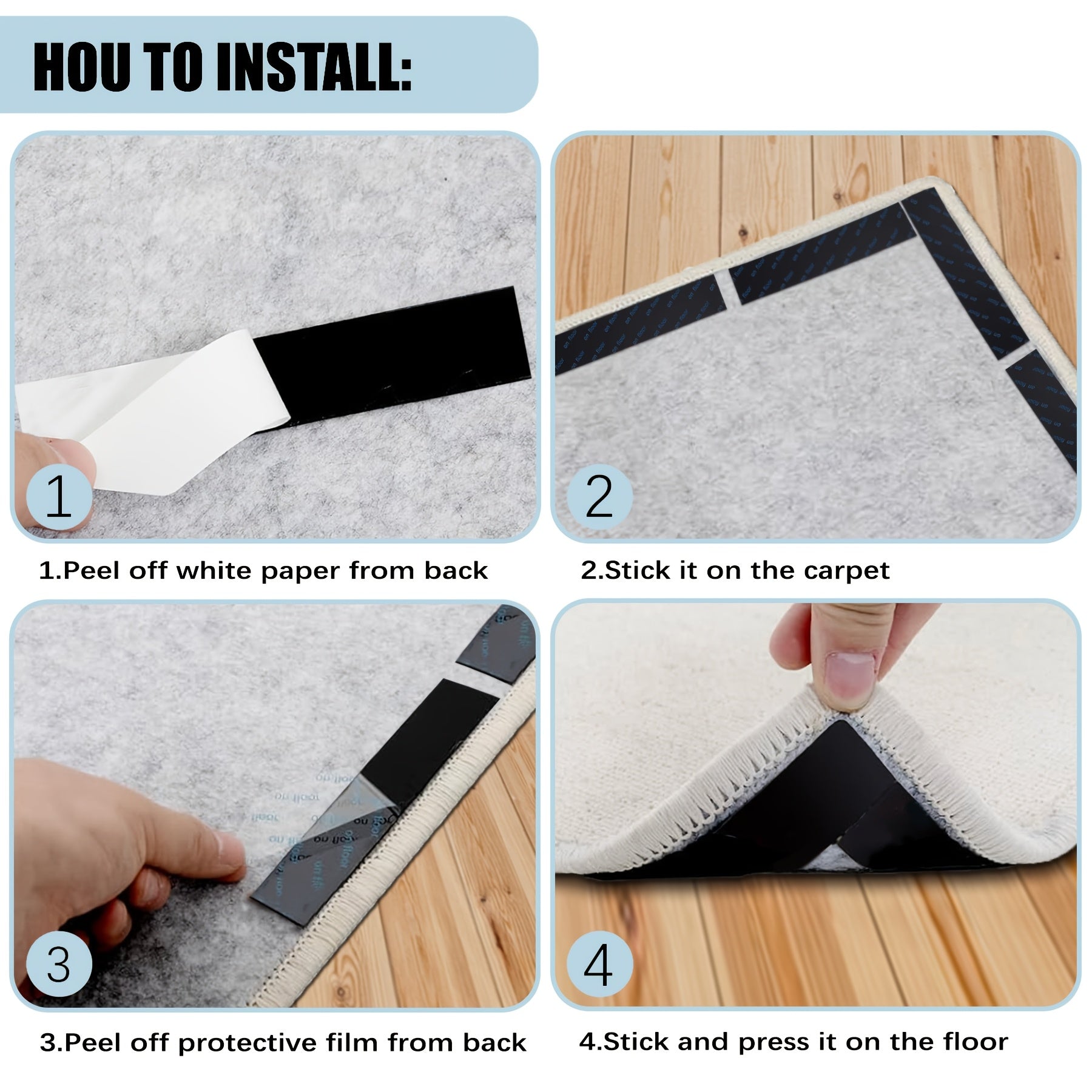 To'rt dona Silikon Gilam Qopqog'ini oling - Yog'och pollarda sirpanmaslik uchun ikki tomonlama va qayta ishlatiladigan gilam lenta stikerlari. Ushbu suv o'tkazmaydigan gilam chetini ushlovchi lenta ofislar va yotoqxonalarda foydalanish uchun mukammaldir.