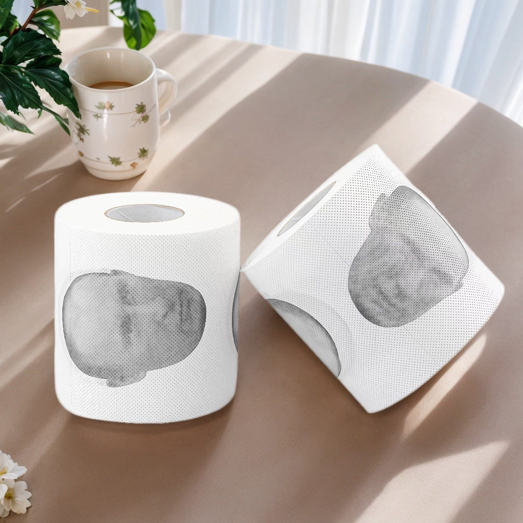 Biodegradable bambuk hojatxona qog'ozi, ko'p qavatli, uzluksiz rulo, bosma dizayni bilan, partiyalar va kundalik foydalanish uchun