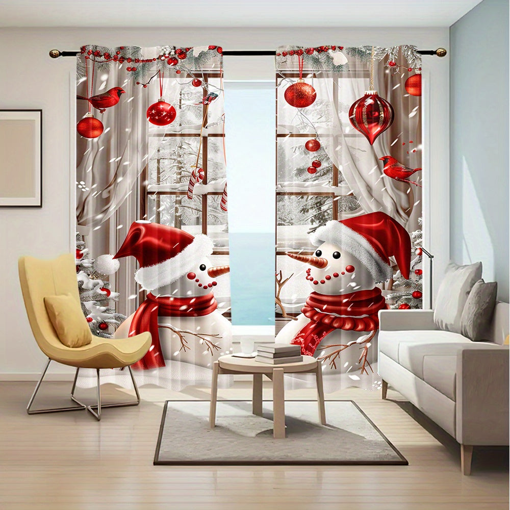 Rojdestvo qor odamlarining pardasi raqamli bosma polyester tayoq choʻntakli pardalar bayram bezaklari uchun