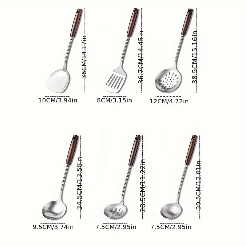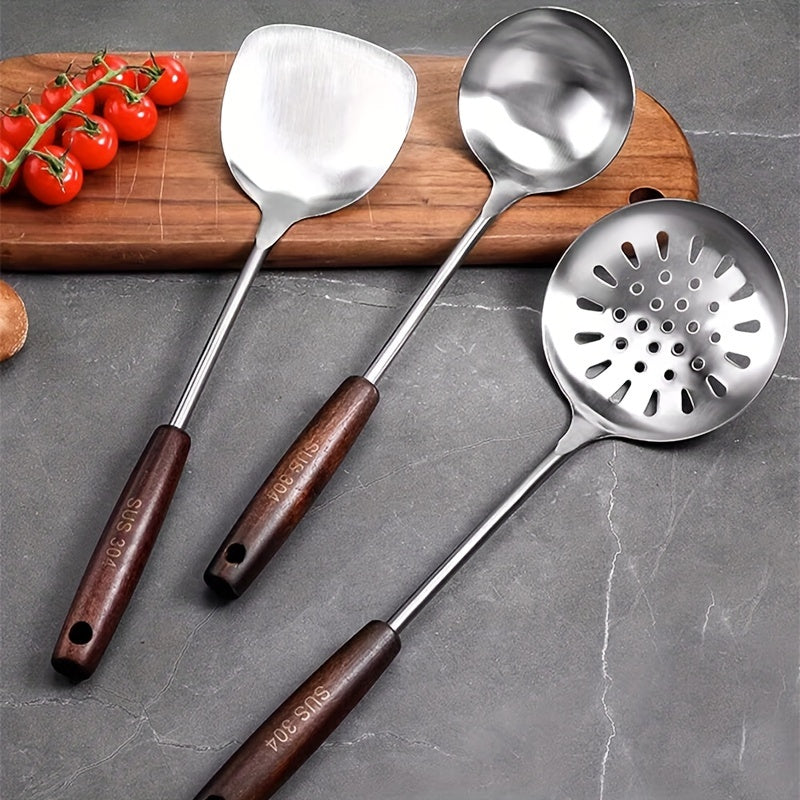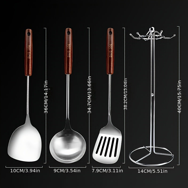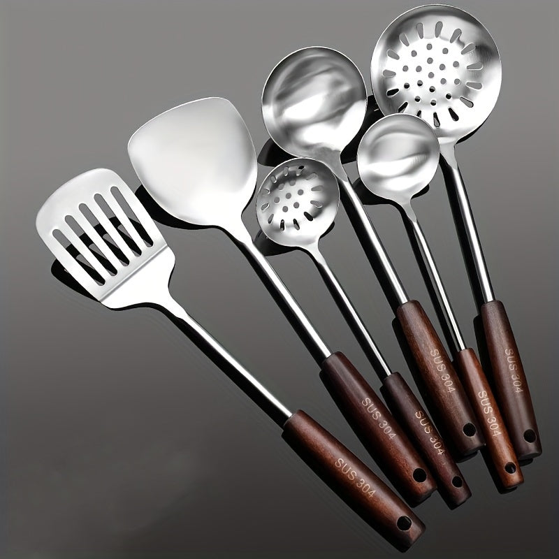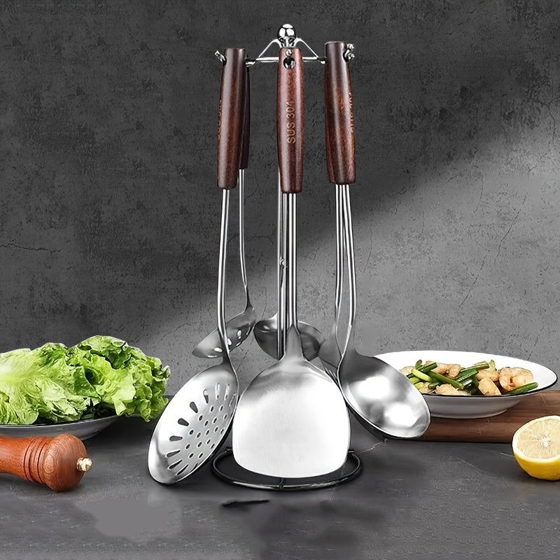 304 zanglamaydigan po'latdan yasalgan oshxona asboblari to'plami, spatula, qozon va xizmat qilish qoshiq bilan