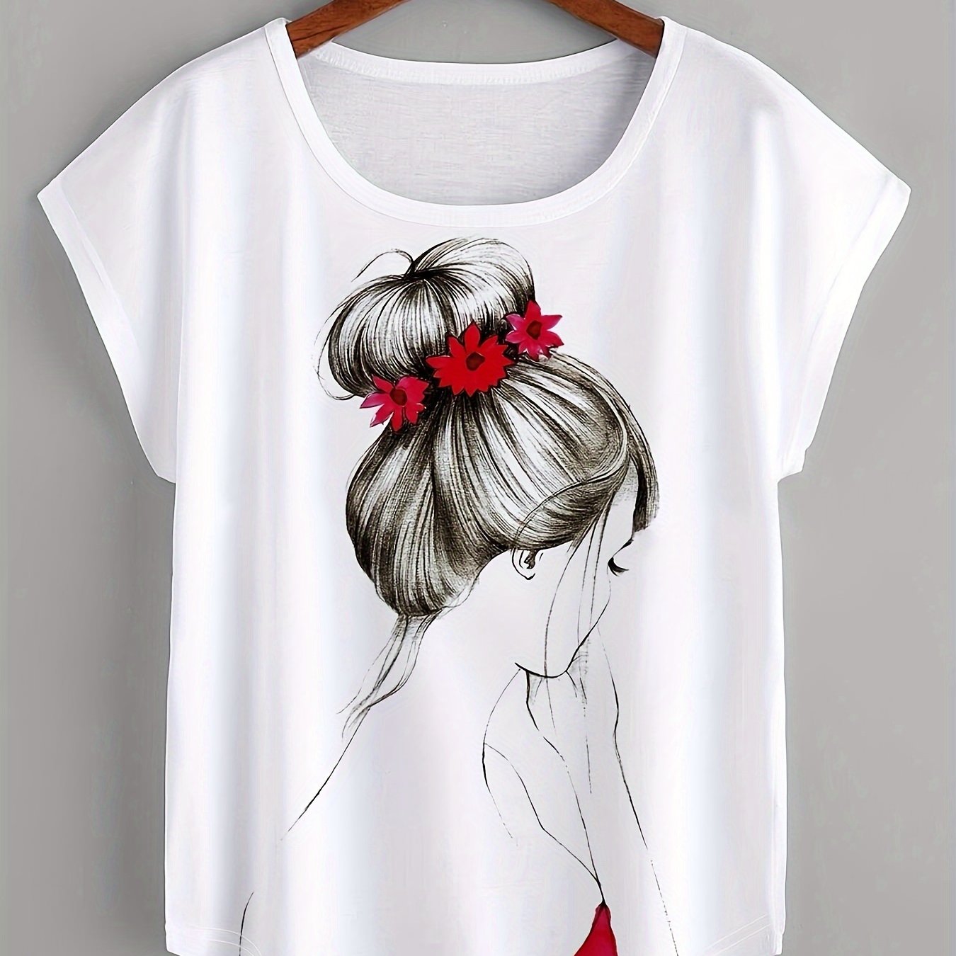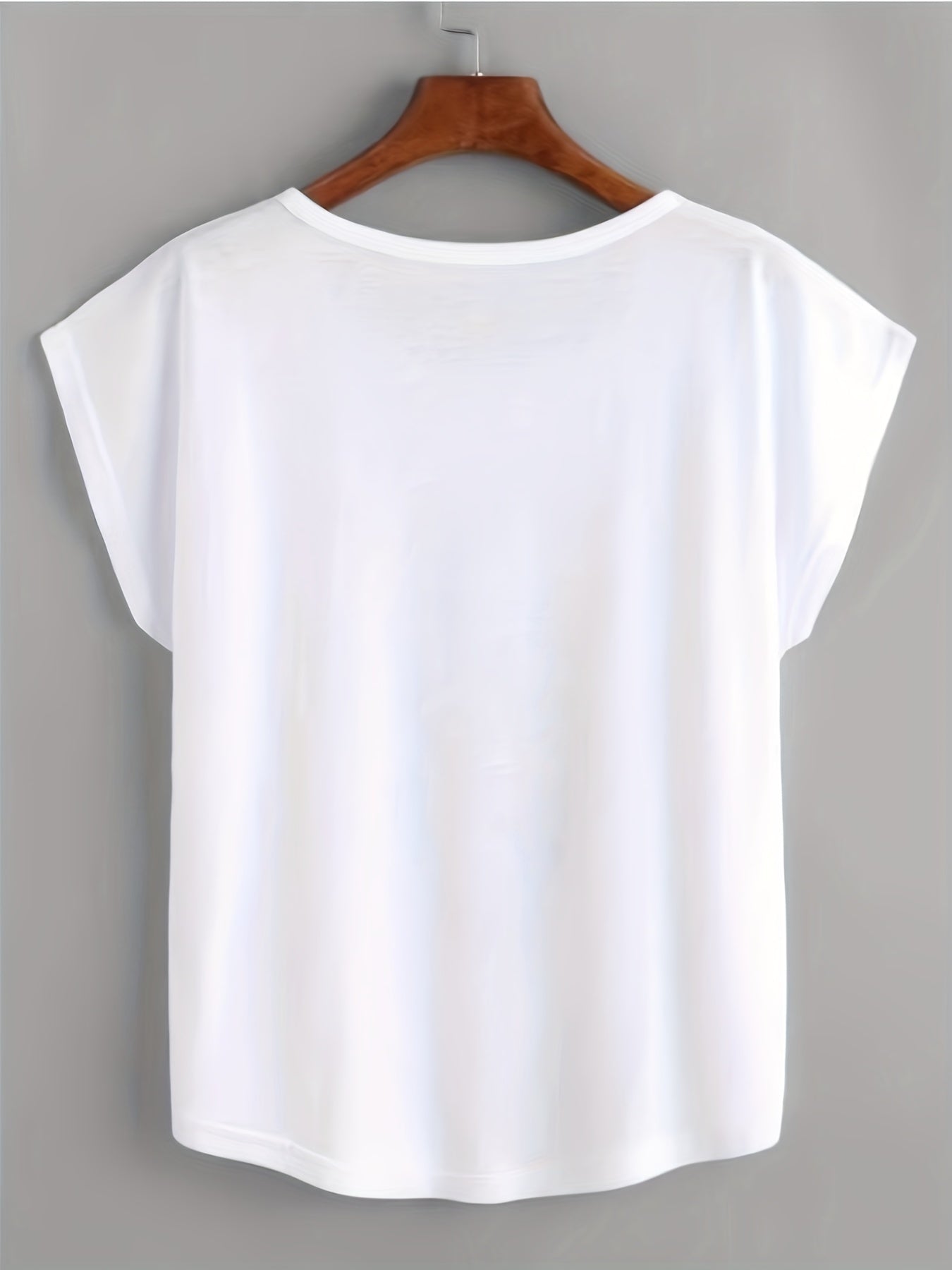 Qizlar uchun bahor va yozda kiyish uchun qisqa yengli futbolka, tasodifiy krujka bo'yinli yuqori.