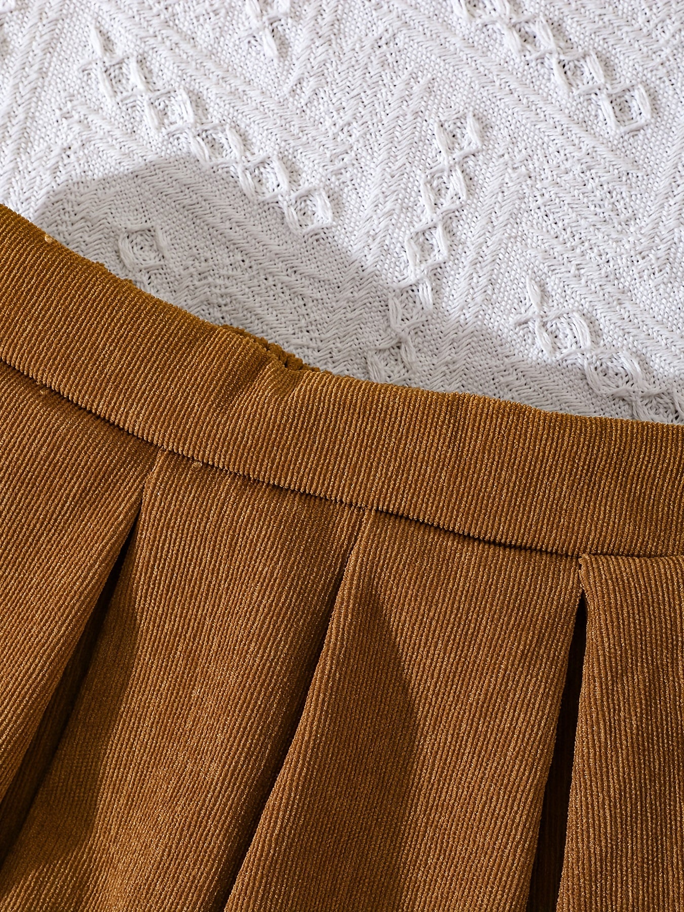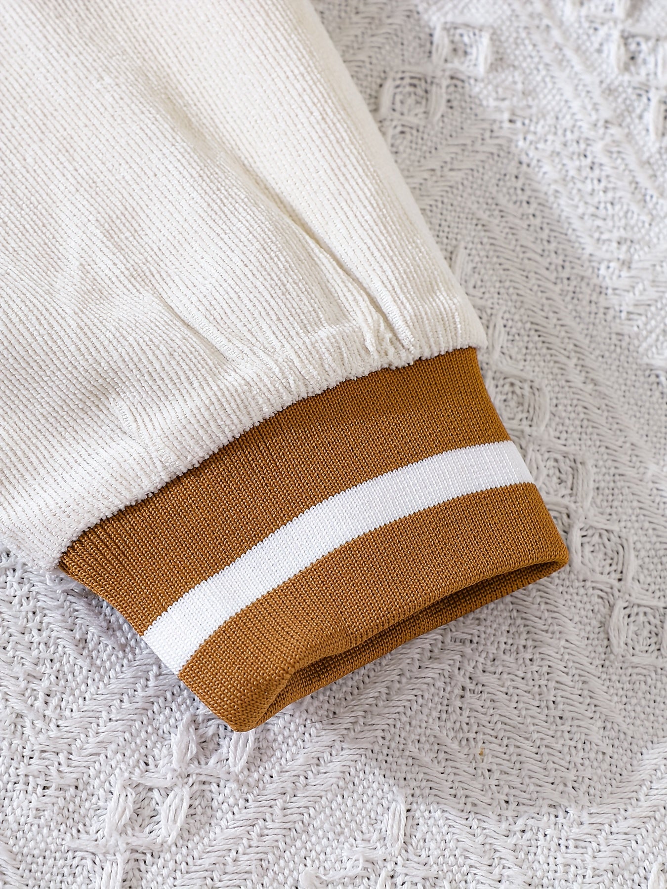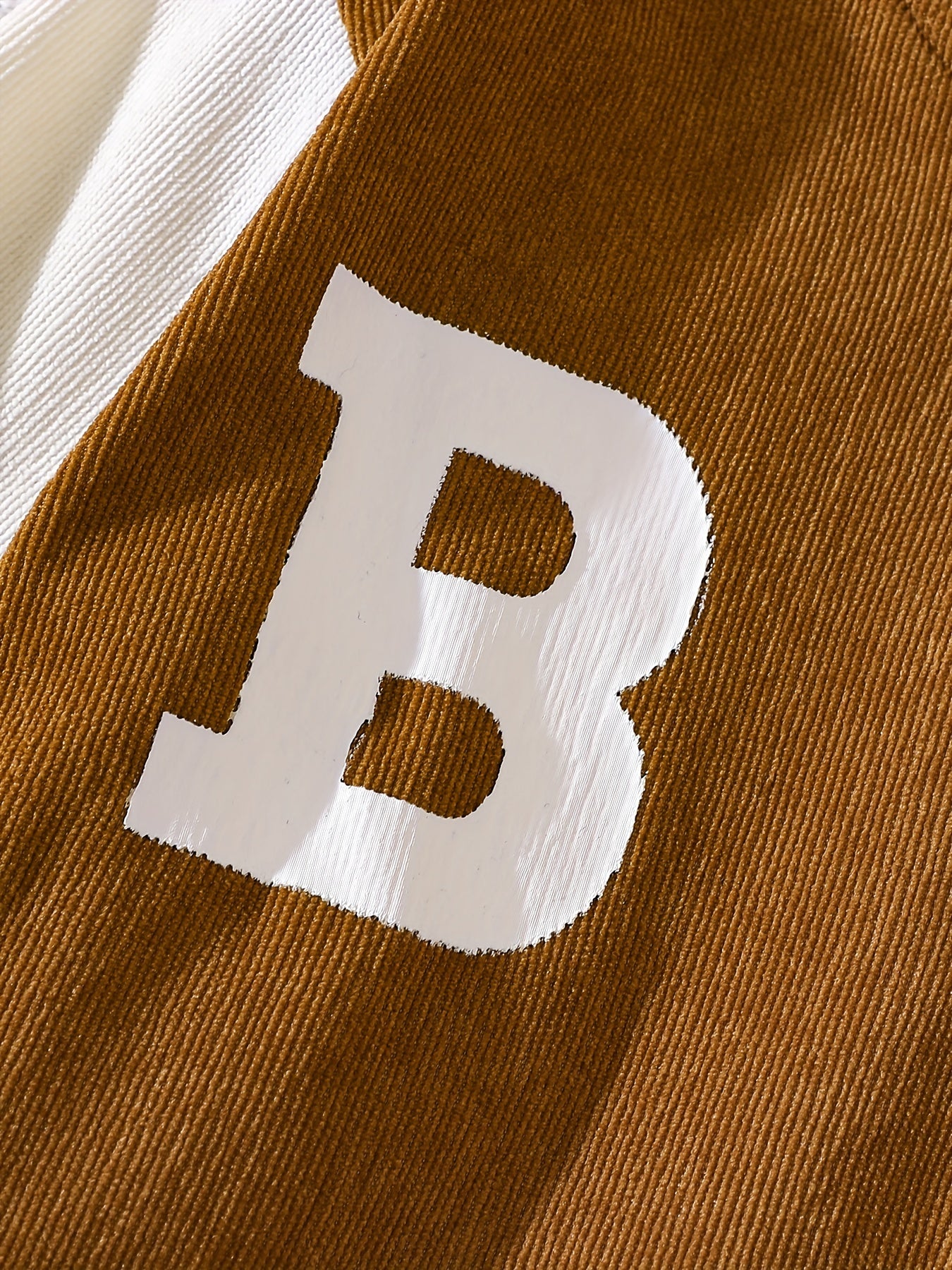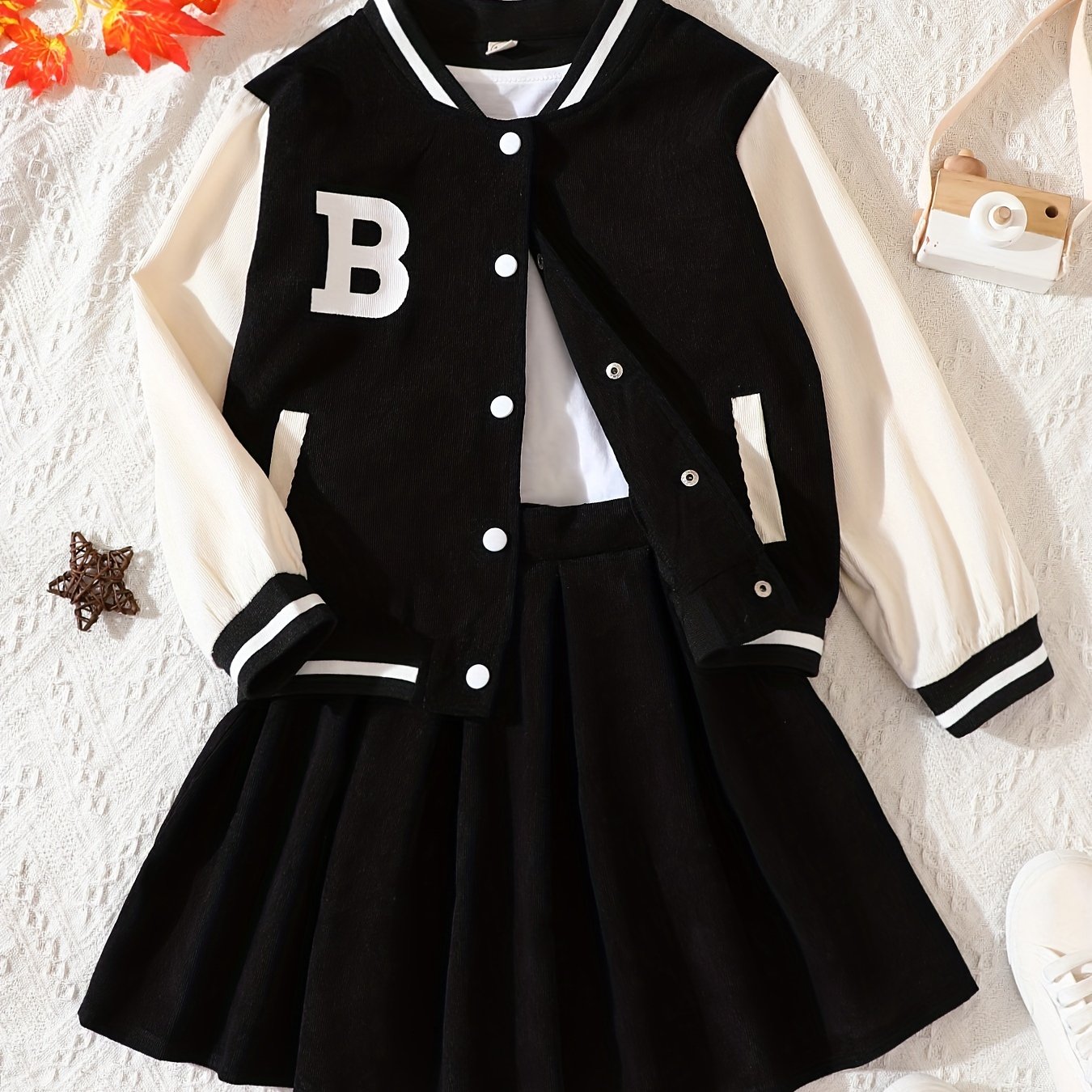 Qizlar uchun 2 qismli kiyim to'plami, uzun yengli beysbol jeketi va B harfi bosma korduroy, pliseli qisqa yubka, bahor va kuzda norasmiy ochiq havoda kiyish uchun mukammal.