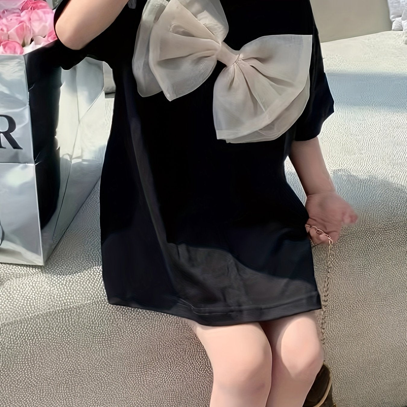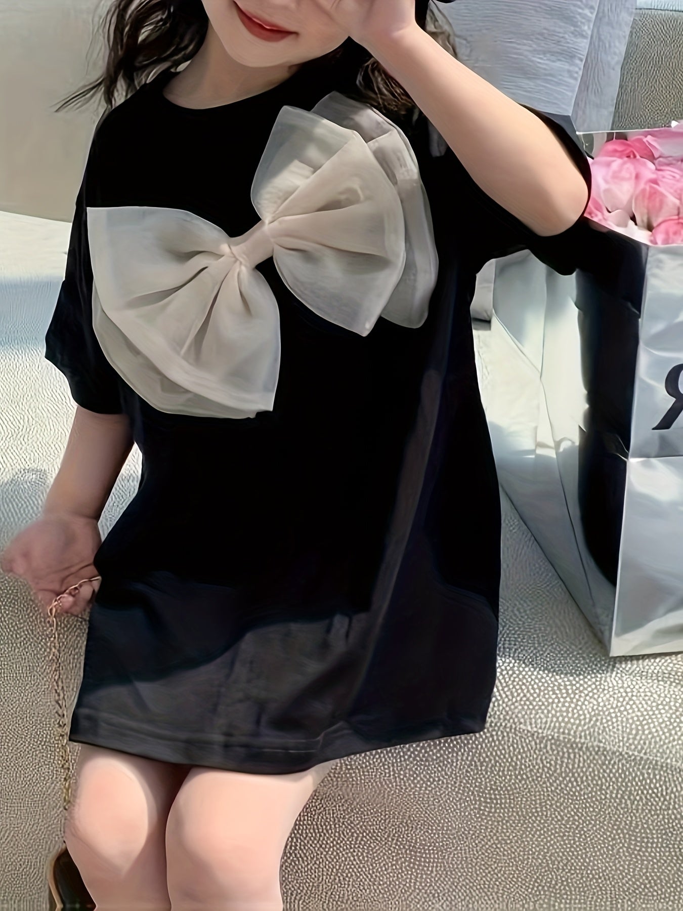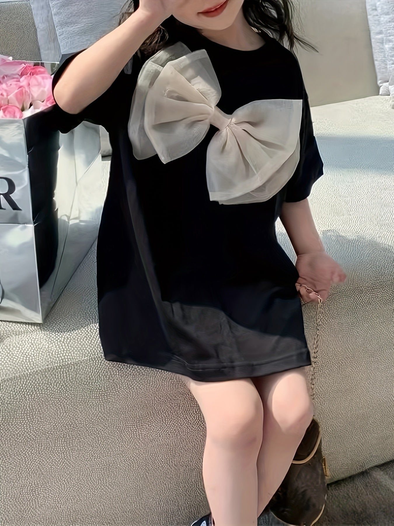 Qizlar uchun bahor va yozda bowknot tafsilotli tasodifiy va qulay T-kofta