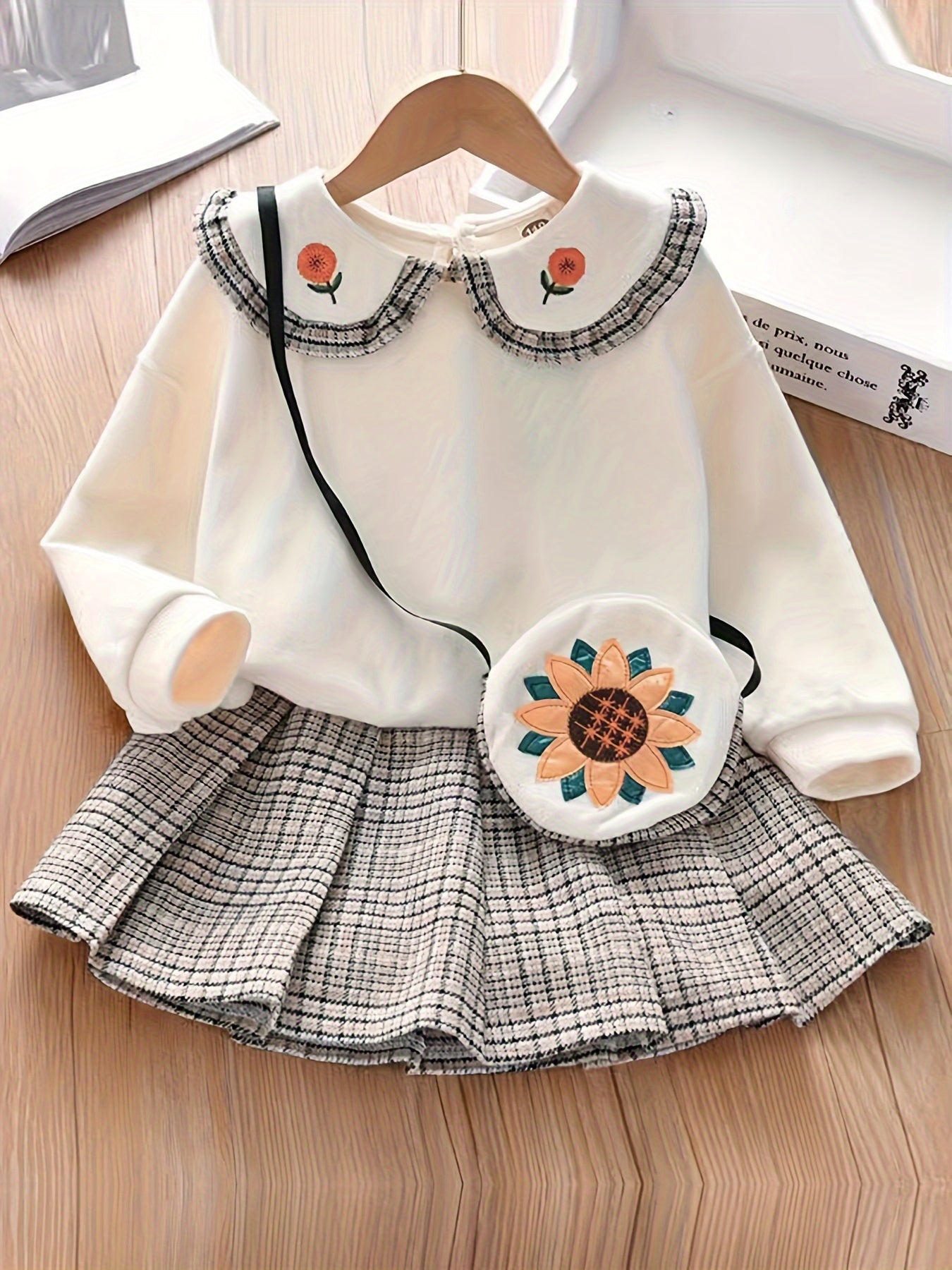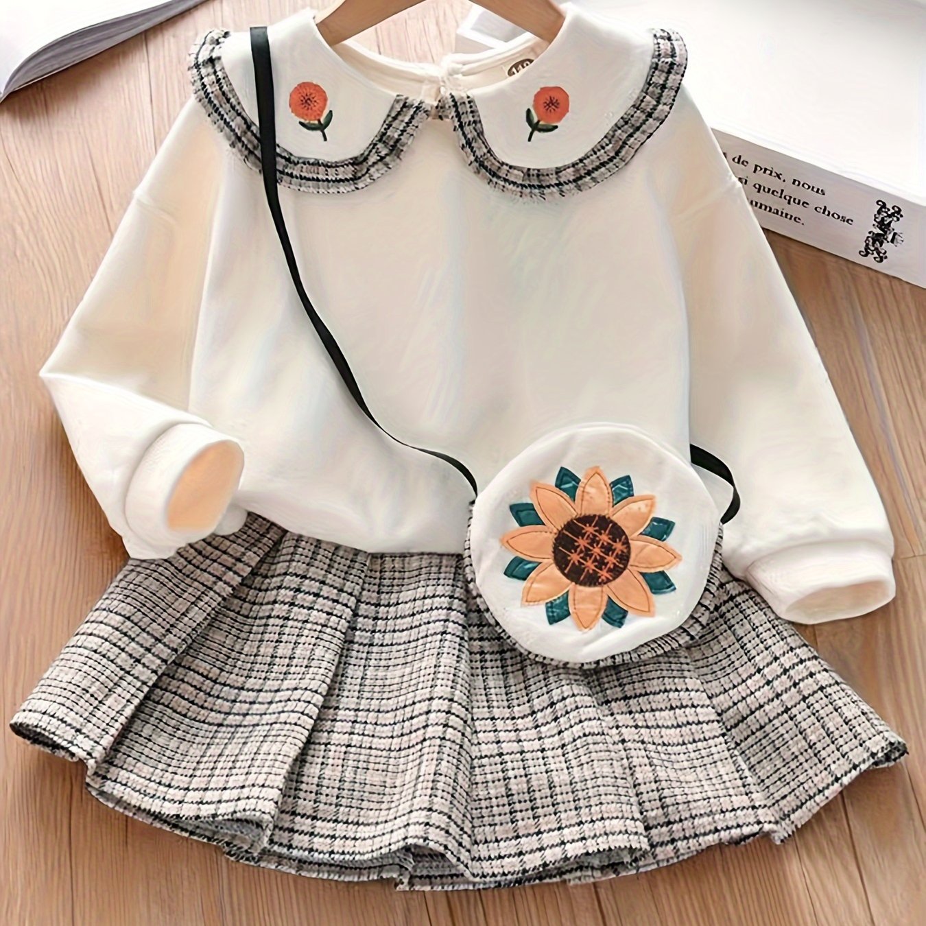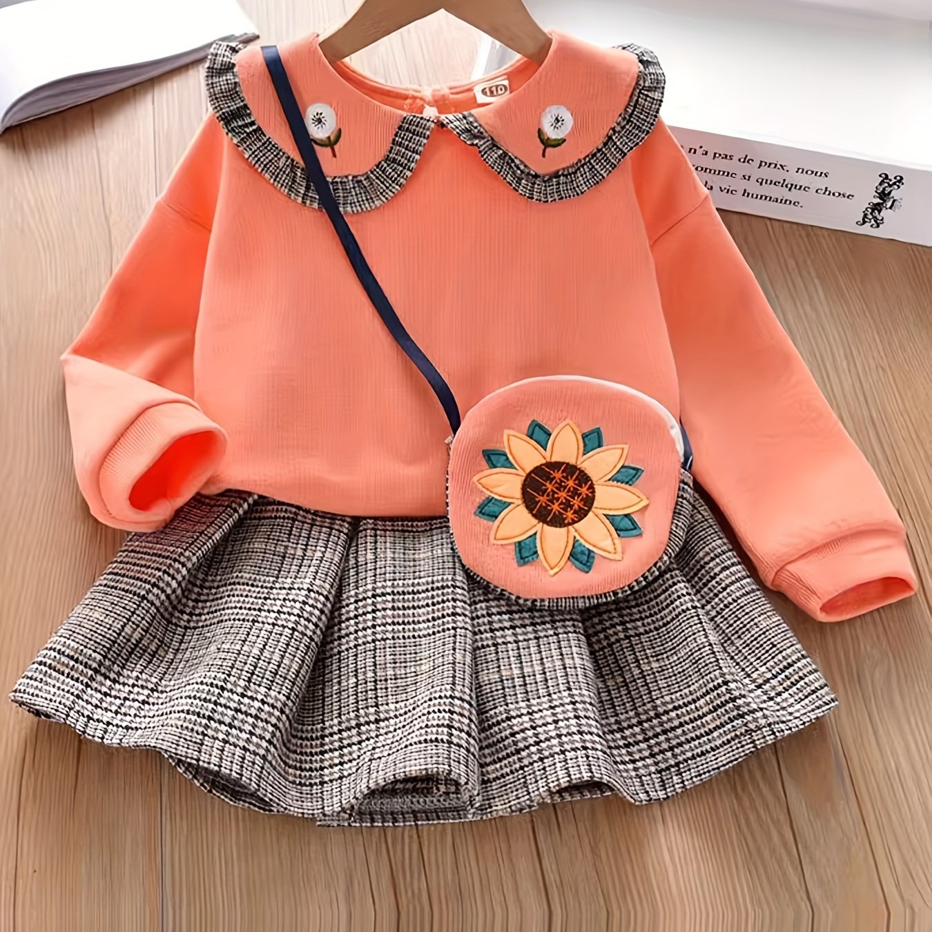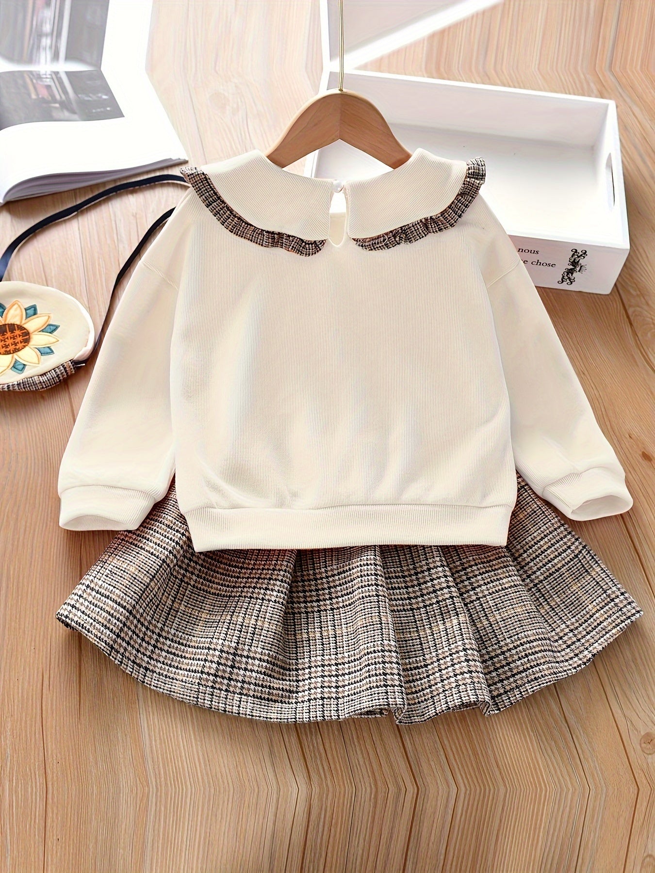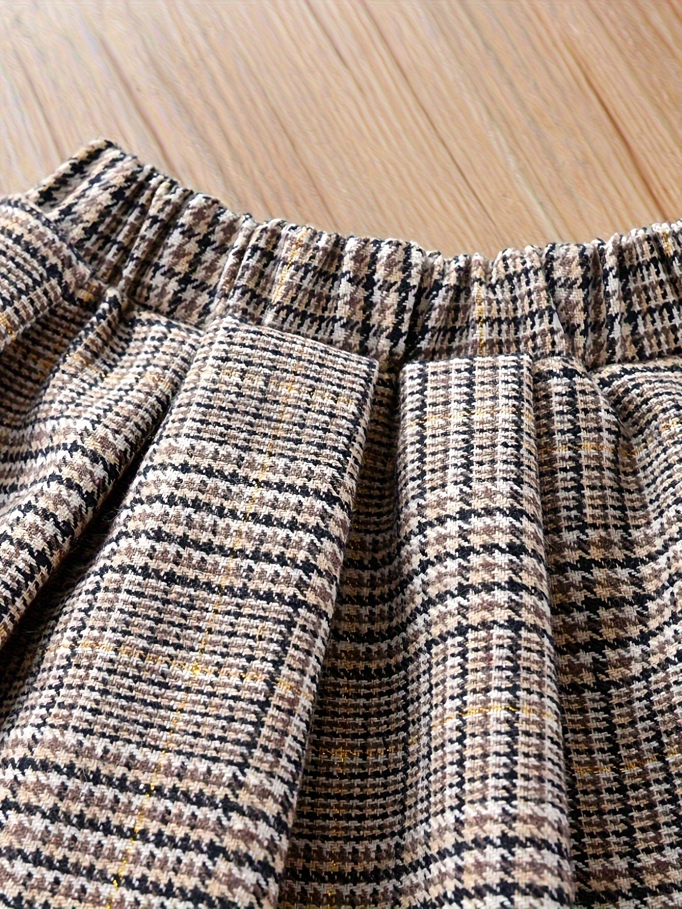 Qizlar uchun paxta yubka to'plami, tikuvli yuqori qismi va plitkali yubka - Norasmiy, oson parvarish qilinadigan, shaffof emas
