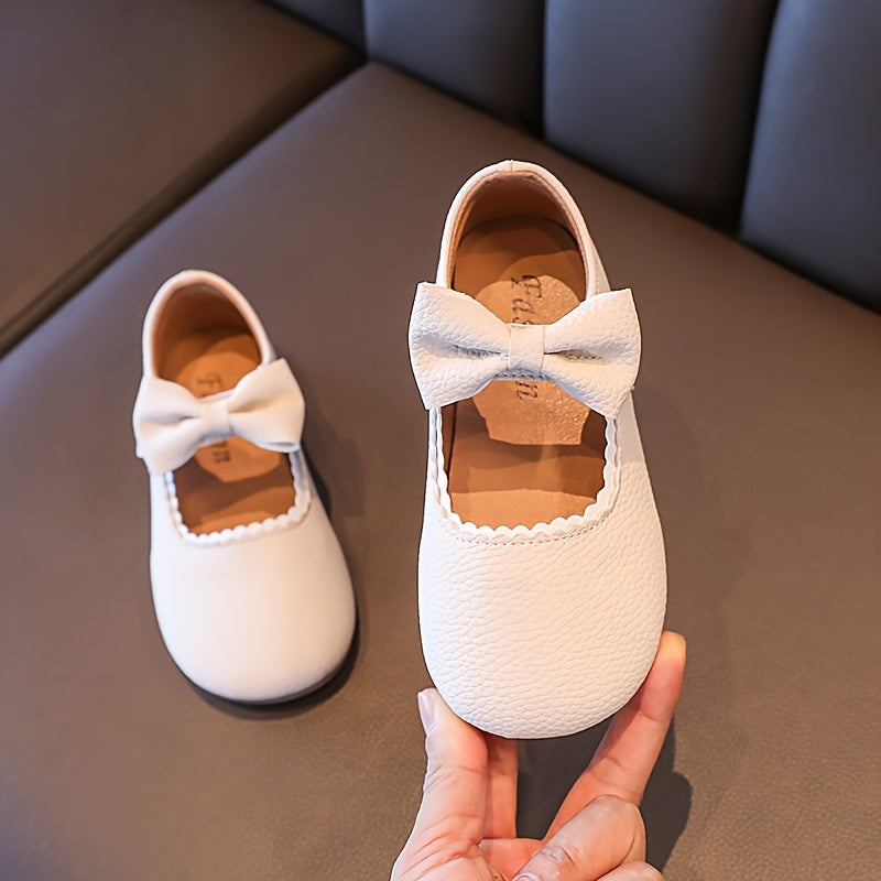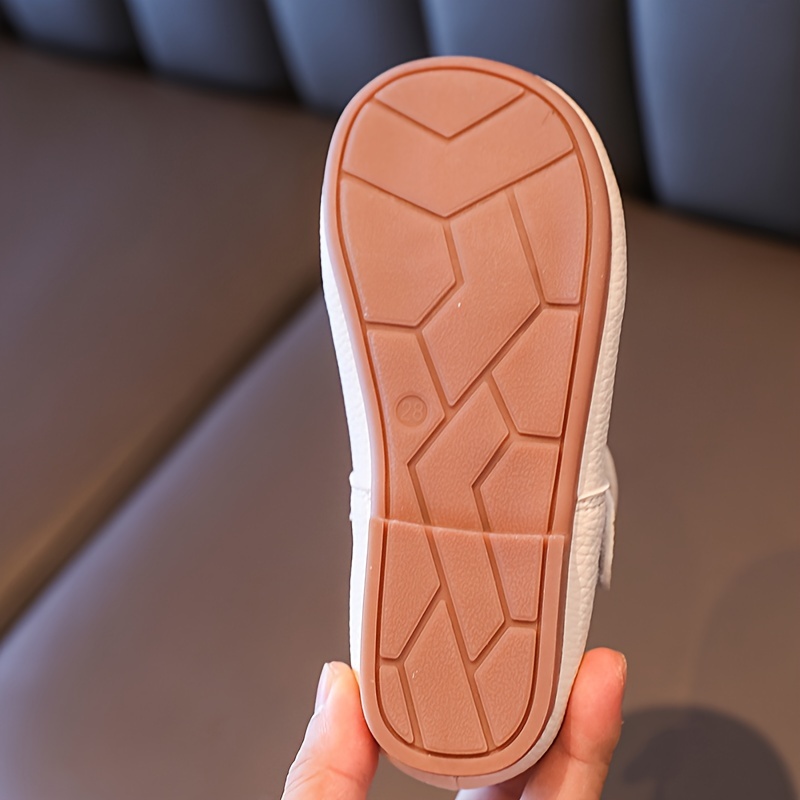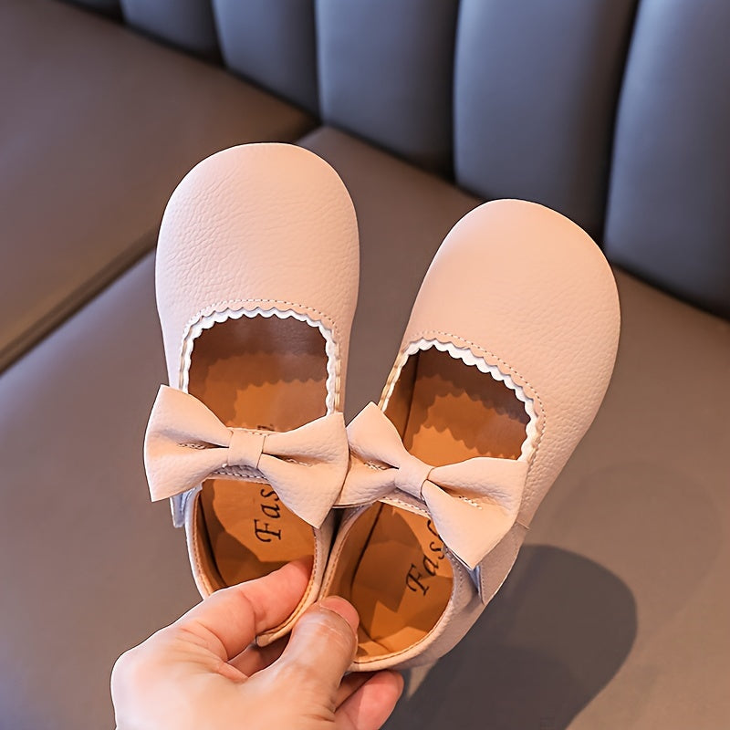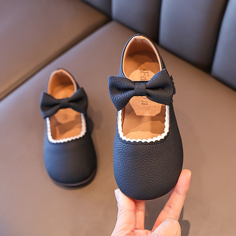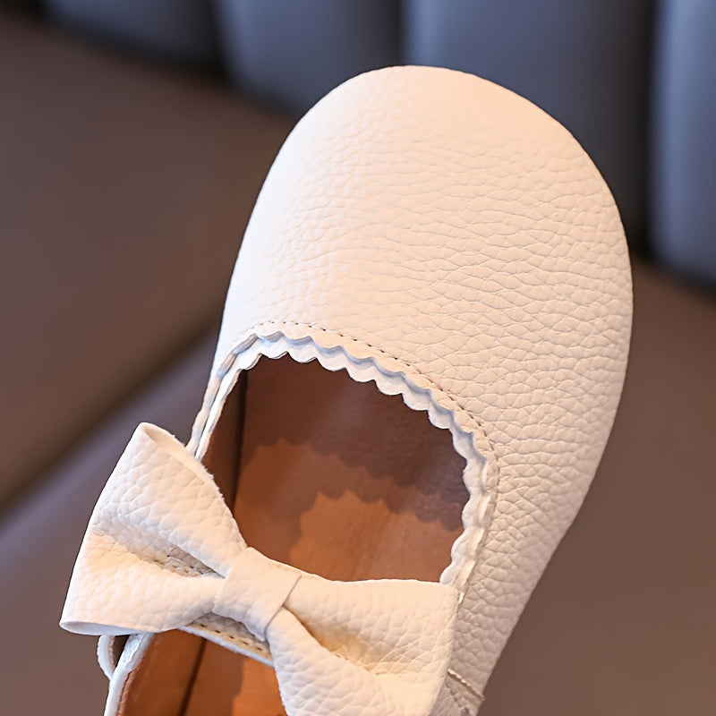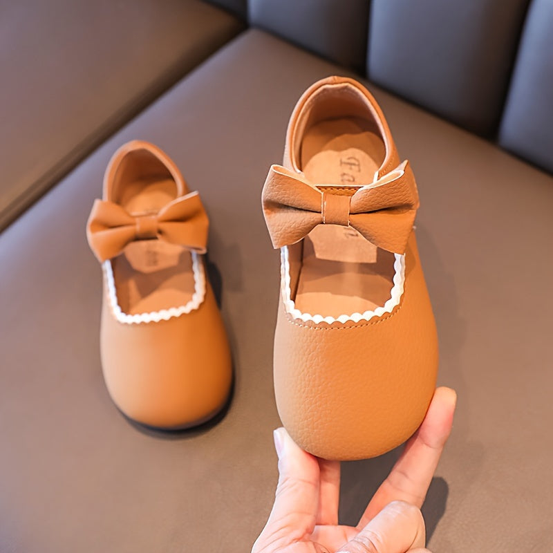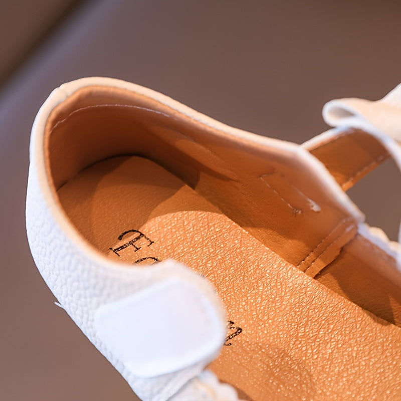 Qizlar uchun chiroyli bog'ich detali, yumshoq taglik, qora, jigarrang va bej rangda yopishqoq tasma bilan yopiladigan tekis poyabzal, qulay yurish uchun mustahkam PU material.