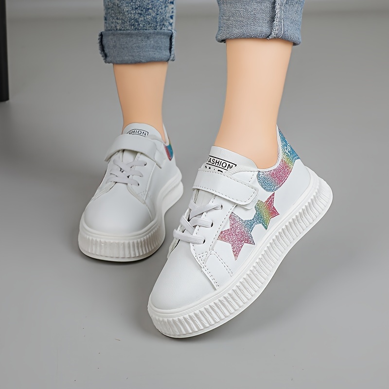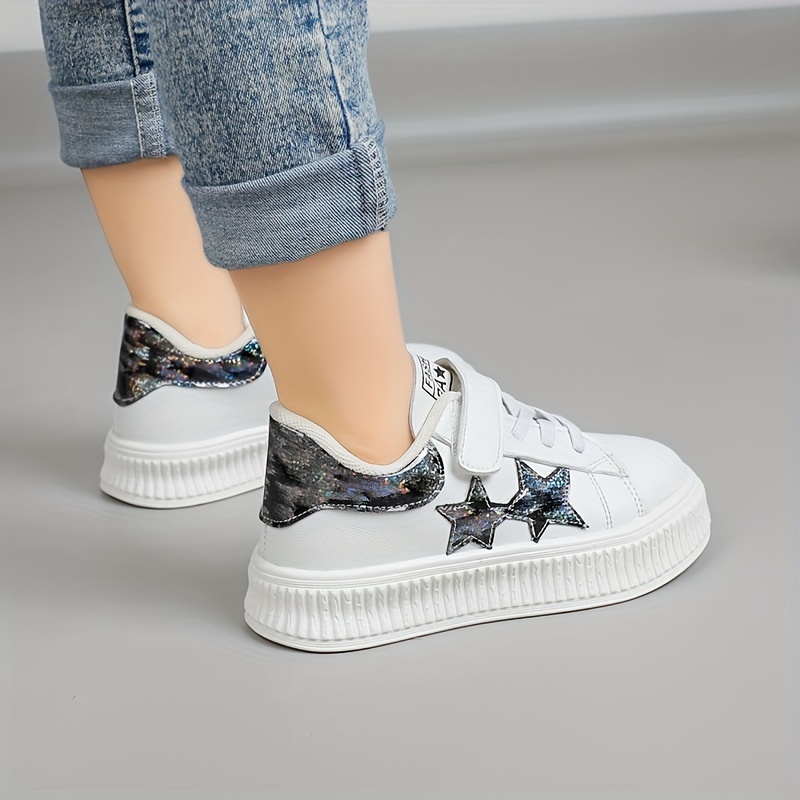 Qizlar uchun yulduz bezakli pastki krossovkalar, qulaylik va sirpanmas qo'llab-quvvatlash uchun, yurish, yugurish va barcha mavsumlar uchun mos.