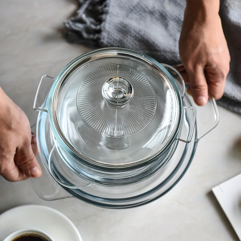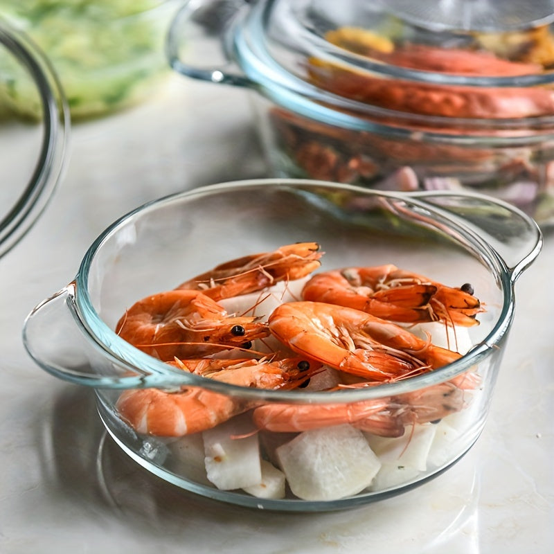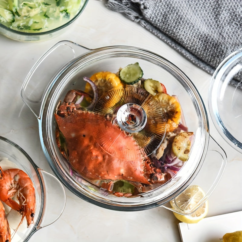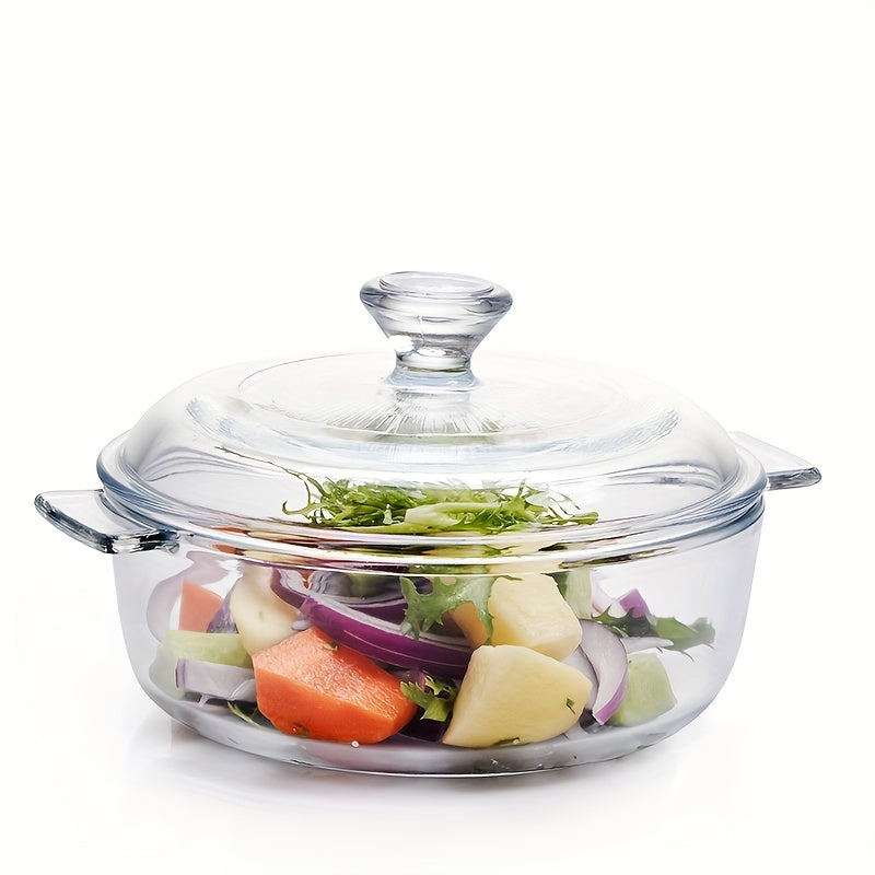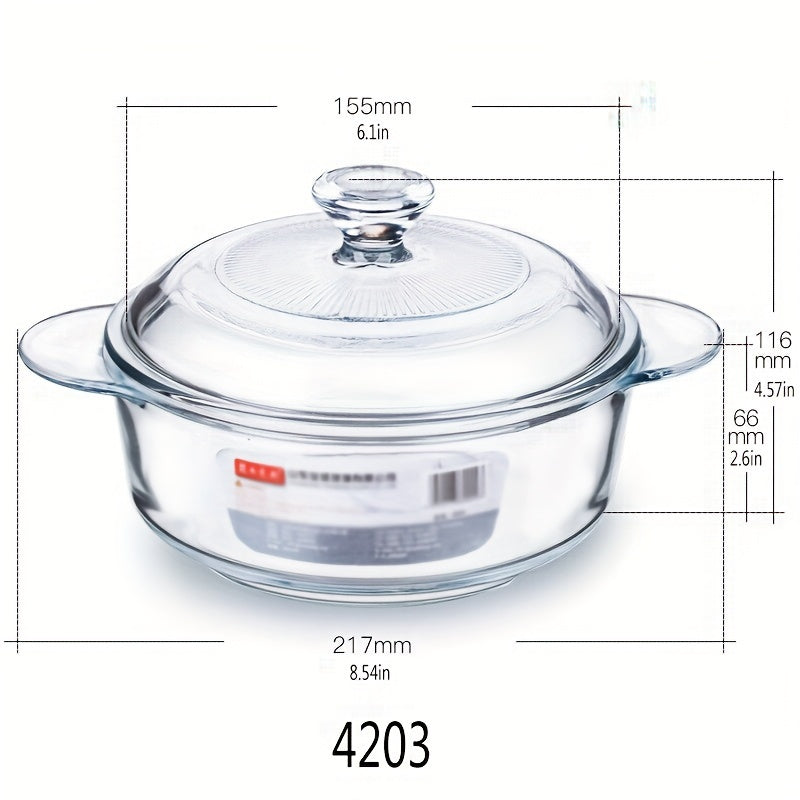 Pech va mikroto'lqinli pechda ishlatish uchun mo'ljallangan qopqoq bilan shisha kastryul. O'lchamlari: 28.09 sm diametr, 21.11 sm chuqurlik, 11.0 sm tutqichlar bilan. Pishirish va tayyorlash uchun mukammal.