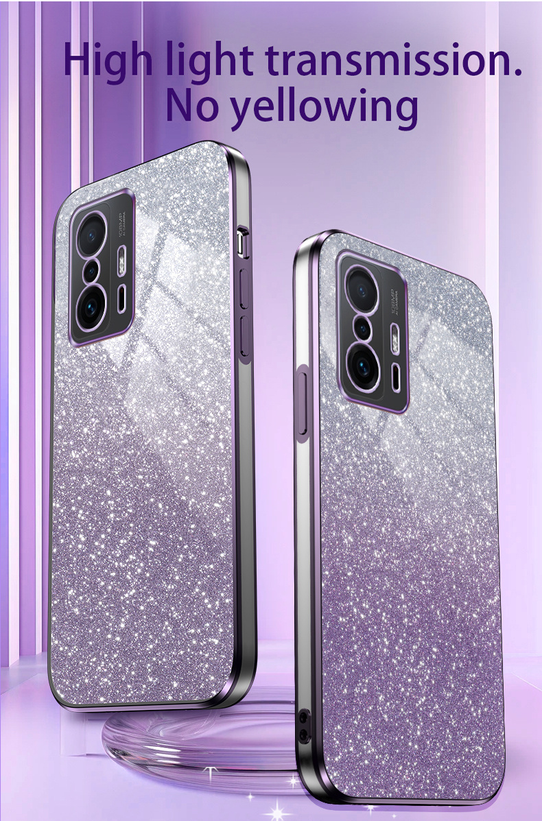 Turli Mi va Redmi modellari uchun porloq gradient mobil telefon qopqog'i, zarbaga chidamli va sirpanmaydigan ajoyib, porloq dizaynga ega.