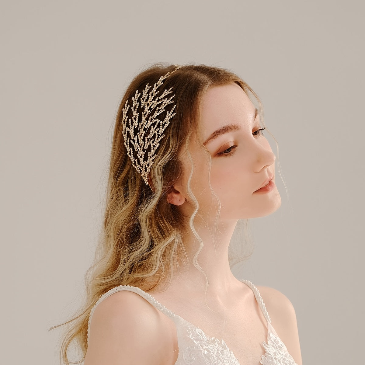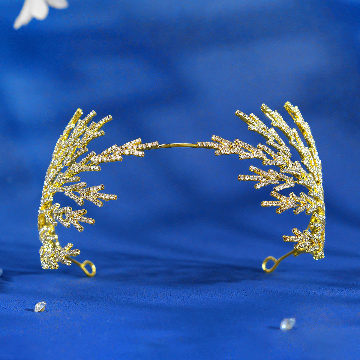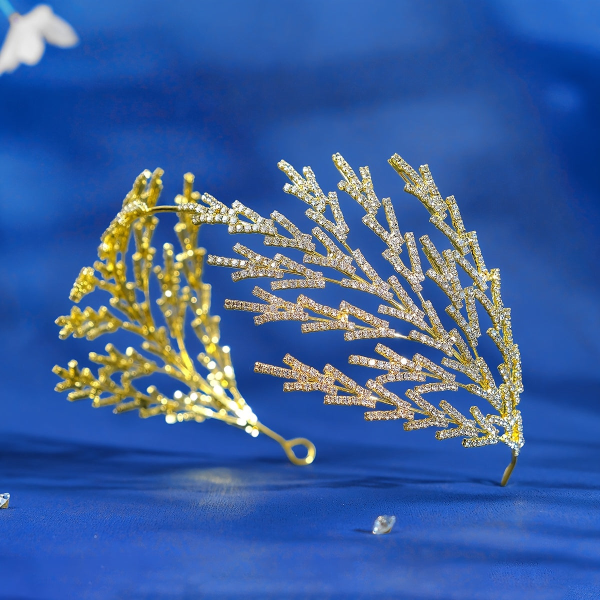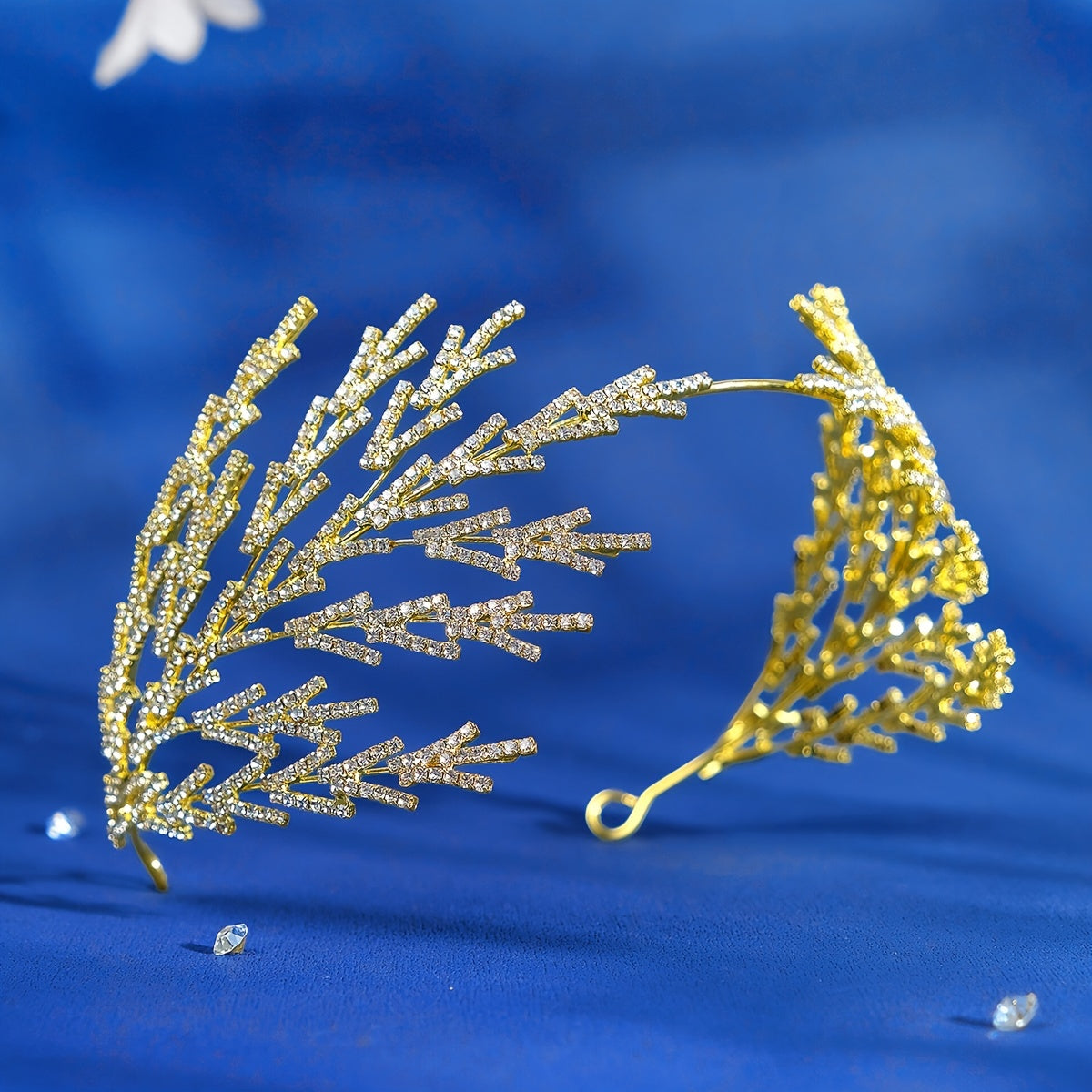 To'ylar, partiyalar va kostyumlar uchun oltin bargli rhinestone bosh band