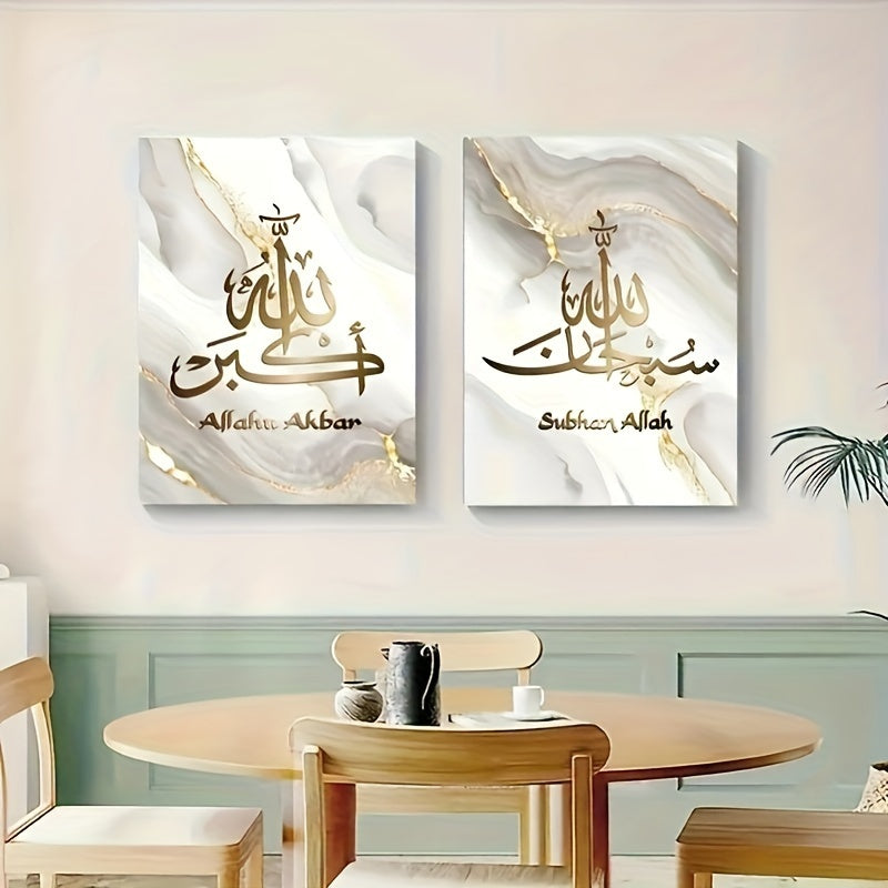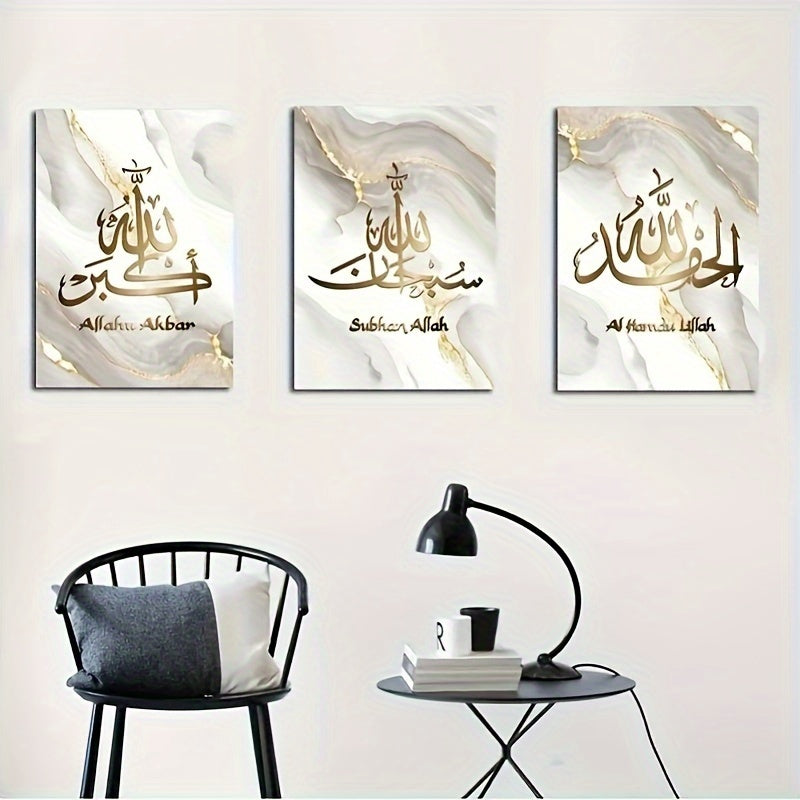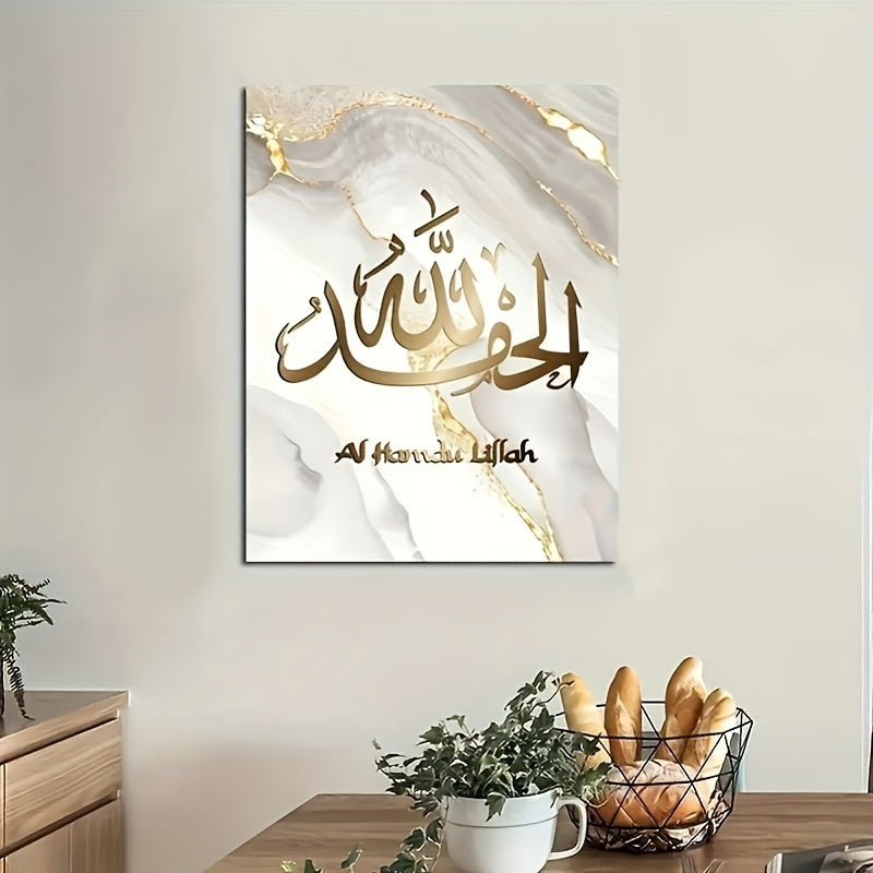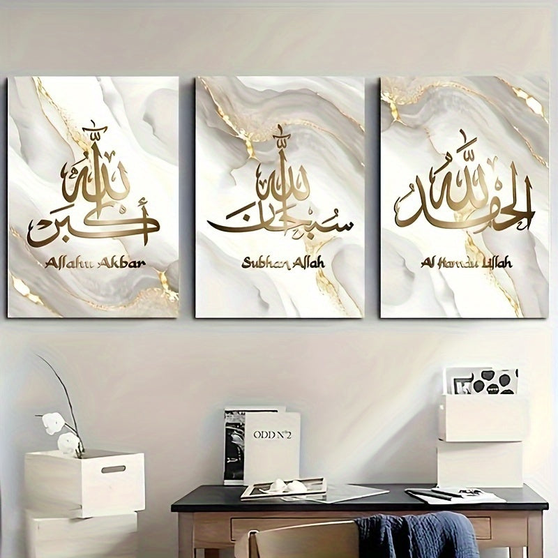 Oltin marmar va islomiy kaligrafiya kanvas san'at nashrlari - Har qanday xona uchun zamonaviy devor bezaklari - Ramkasiz, suyuq, musulmon san'ati.