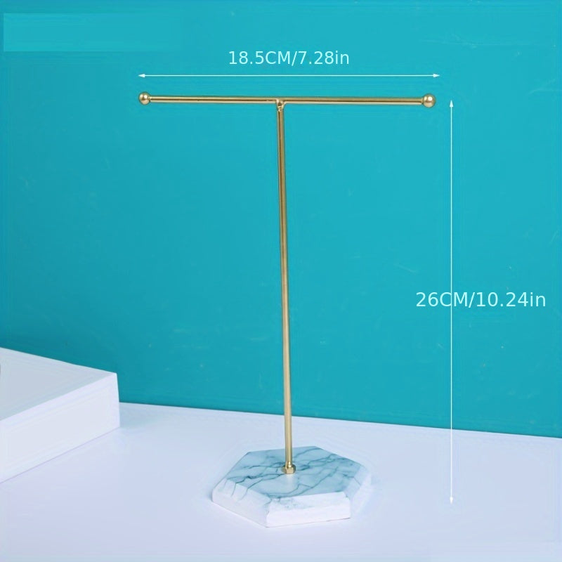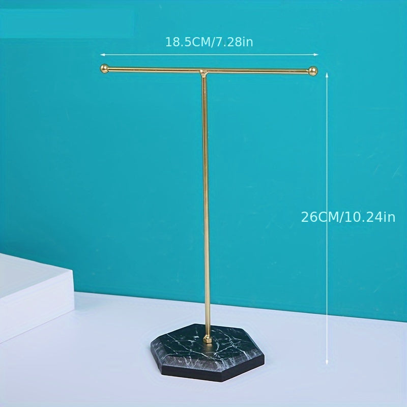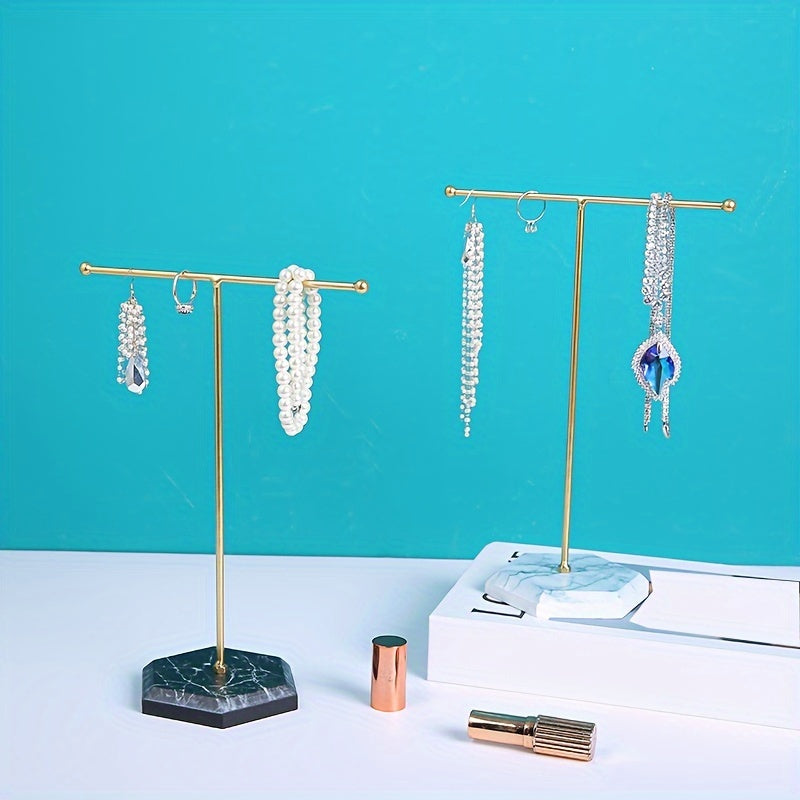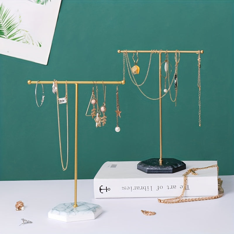 Oltin T-shaklidagi zargarlik buyumlarini tashkil etuvchi rack, uzuklar, marjonlar, taqinchoqlar va bilakuzuklar uchun