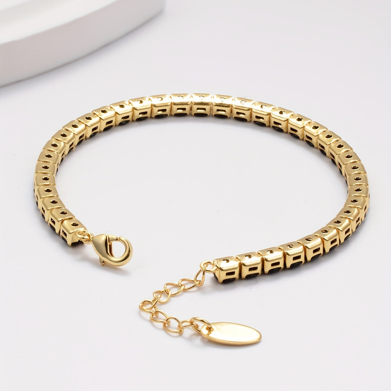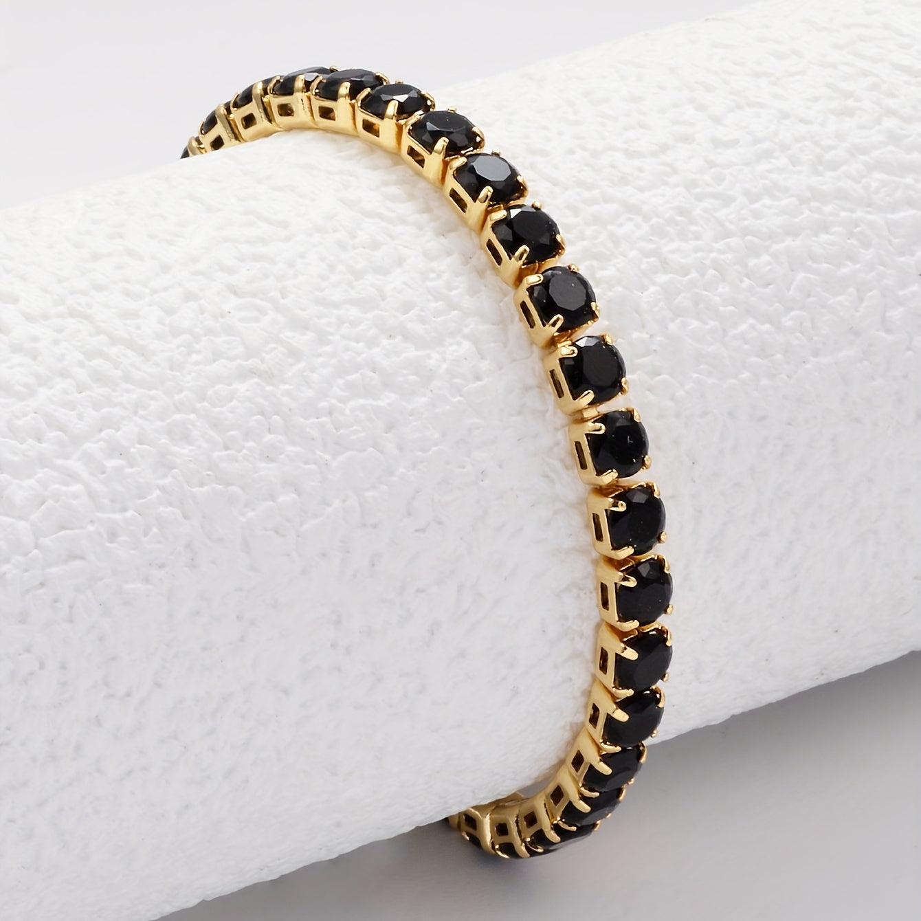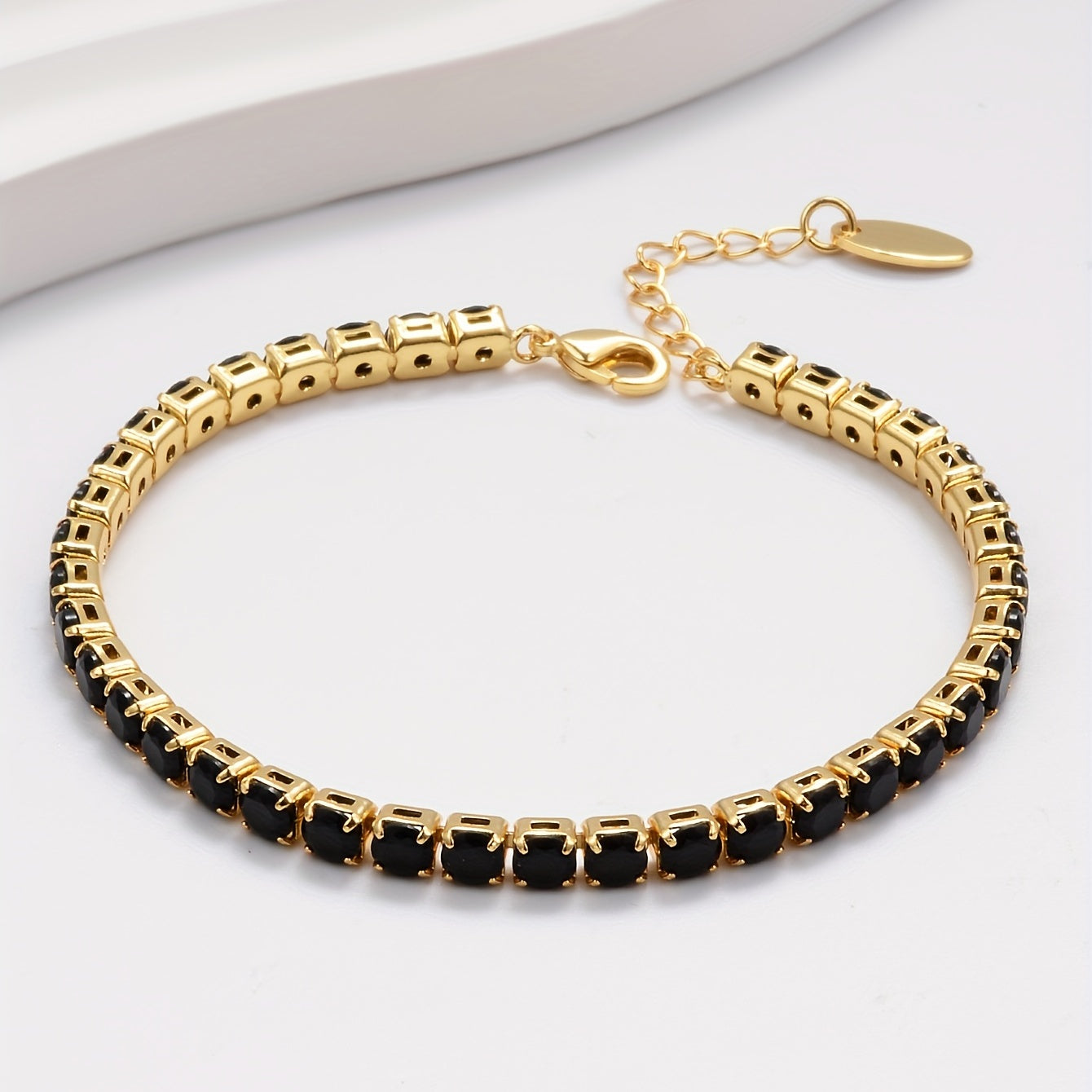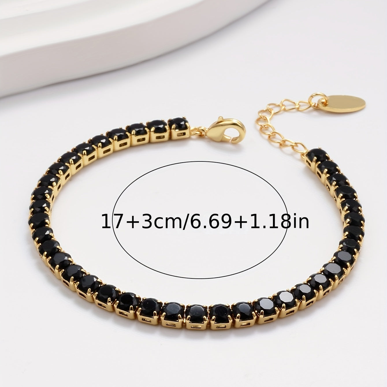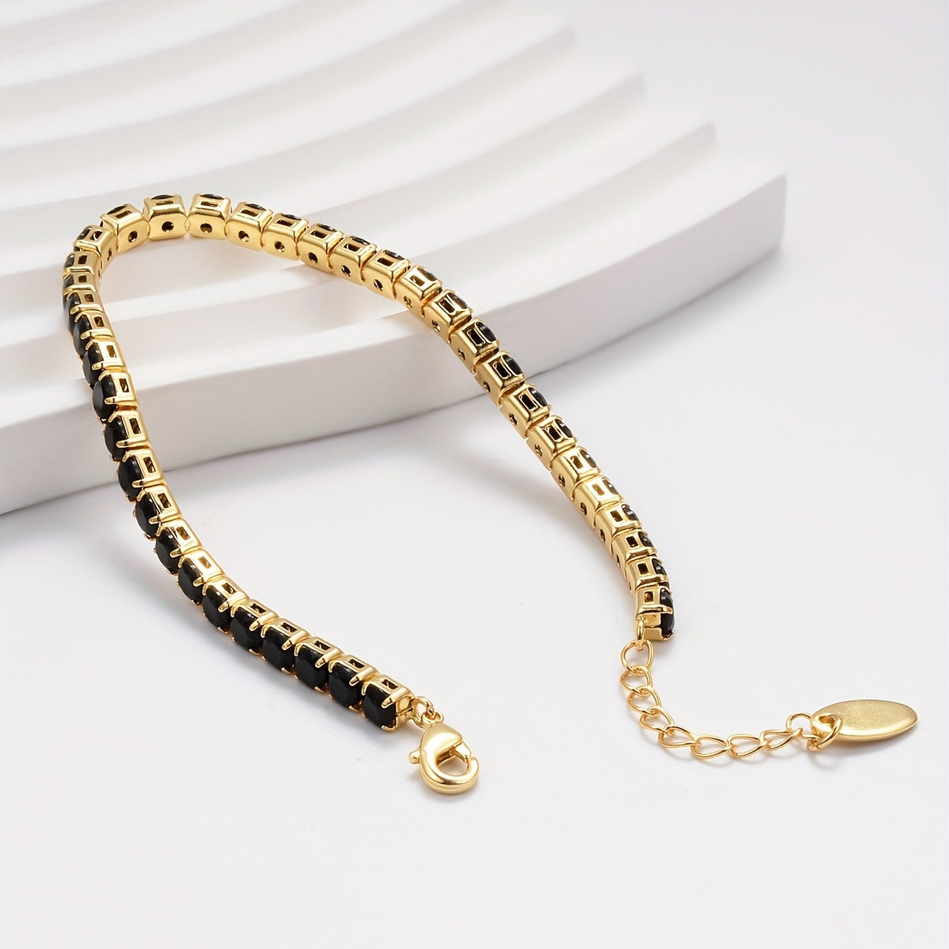 Zamonaviy shaxsiyatga ega ajoyib qora zirkoni zanjir bilaguzuk, 18K oltin bilan qoplangan klassik tennis bilaguzuk, ayollar va qizlar uchun ideal, yubiley yoki to'y zargarlik uchun mukammal.