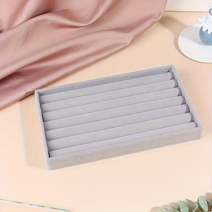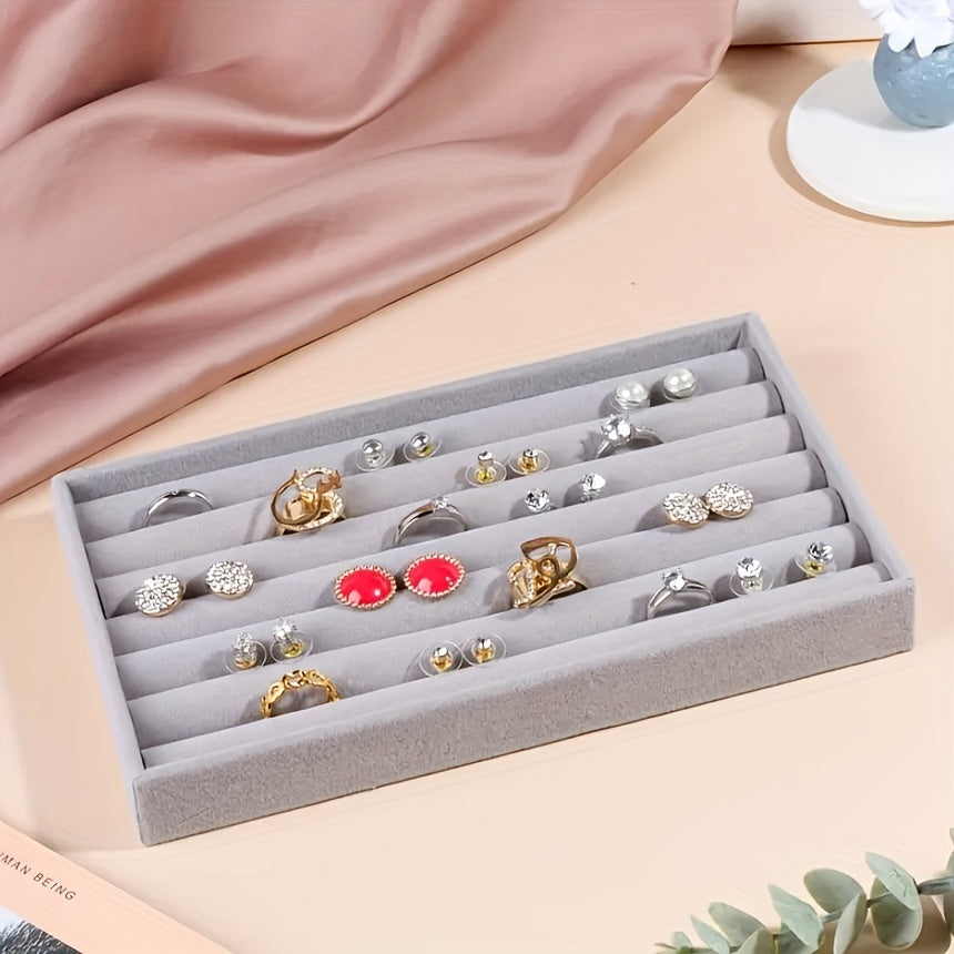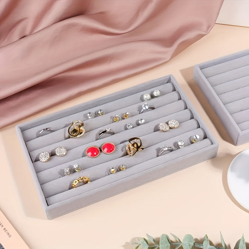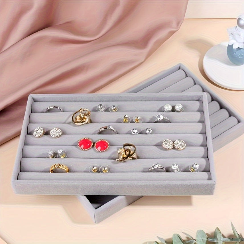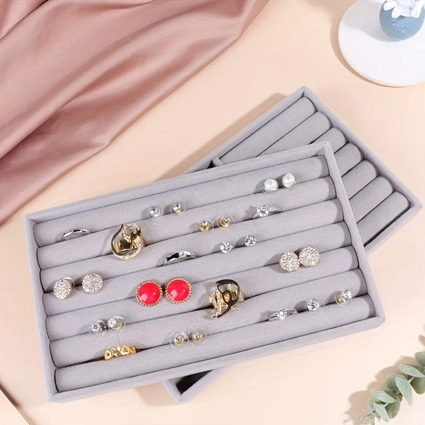 Kulrang velur zargarlik buyumlarini namoyish qilish standi, uzuk va sirg‘a uchun teshiklar bilan