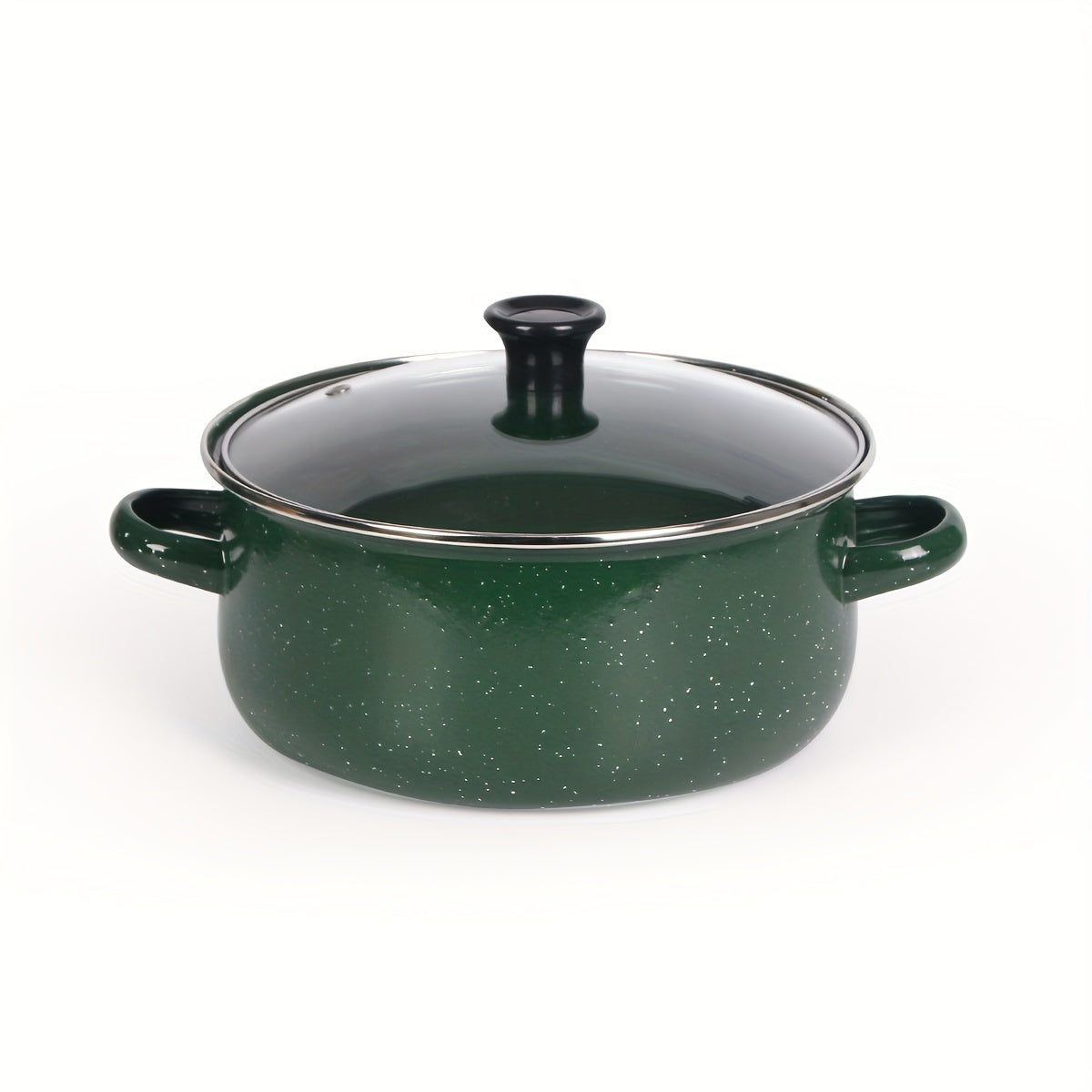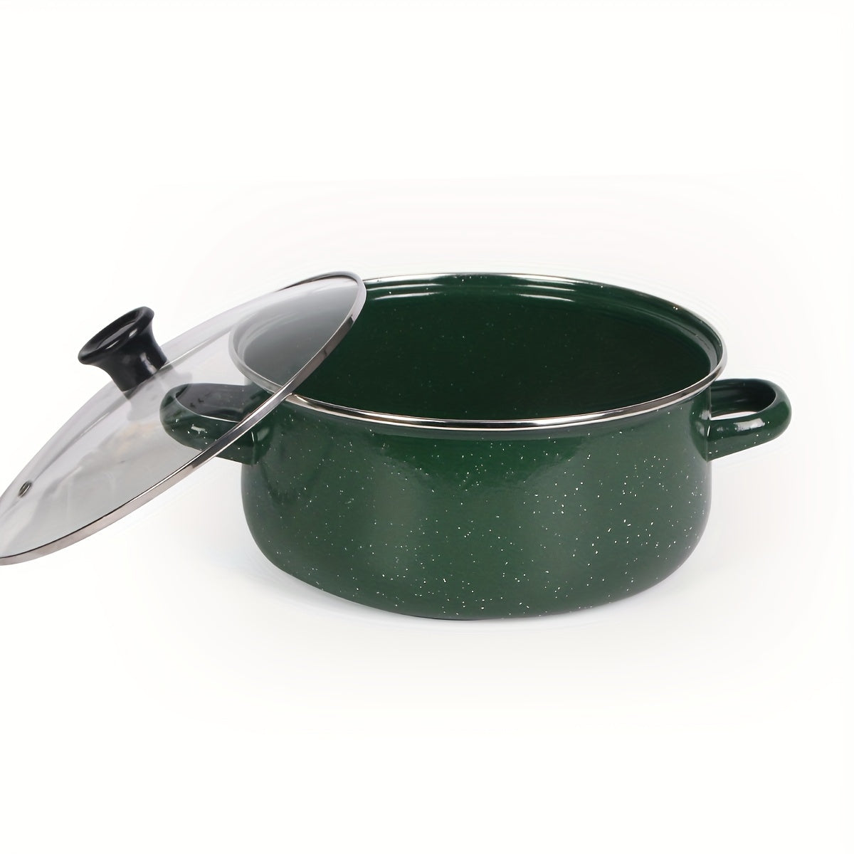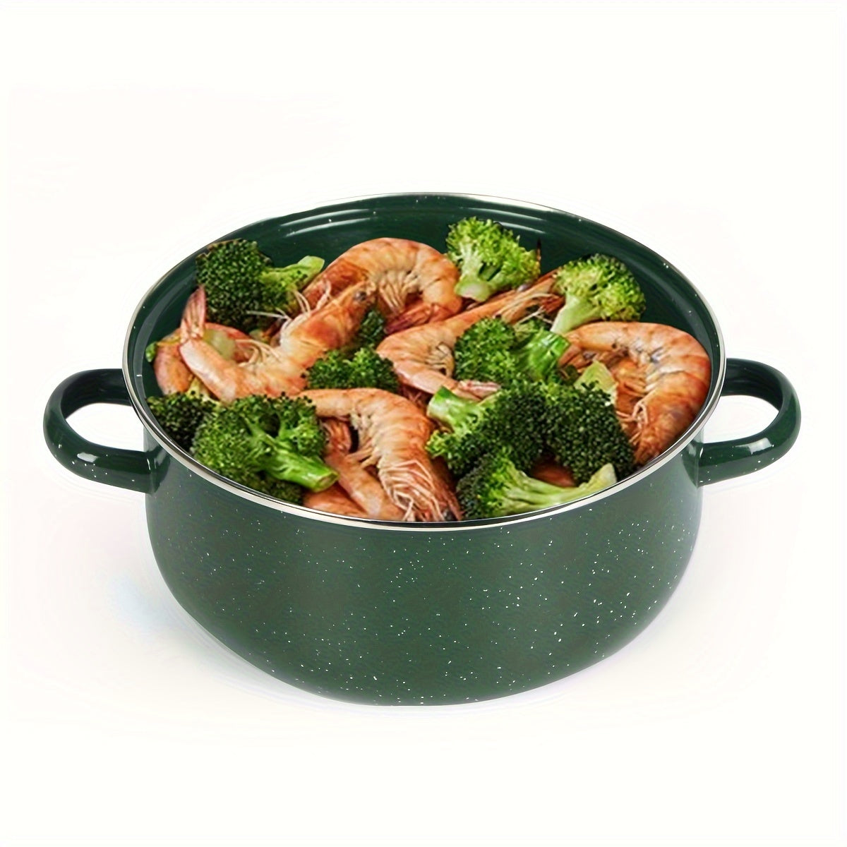 Yashil emal idishlar to'plami: 3 dona bilan, 5 dona olish imkoniyati mavjud. Har qanday pishirish ehtiyojlariga mos keladigan ko'p funksiyali oshxona qozonlari va qozonlar. Gaz, elektr va induksion pechlar bilan mos keladi.