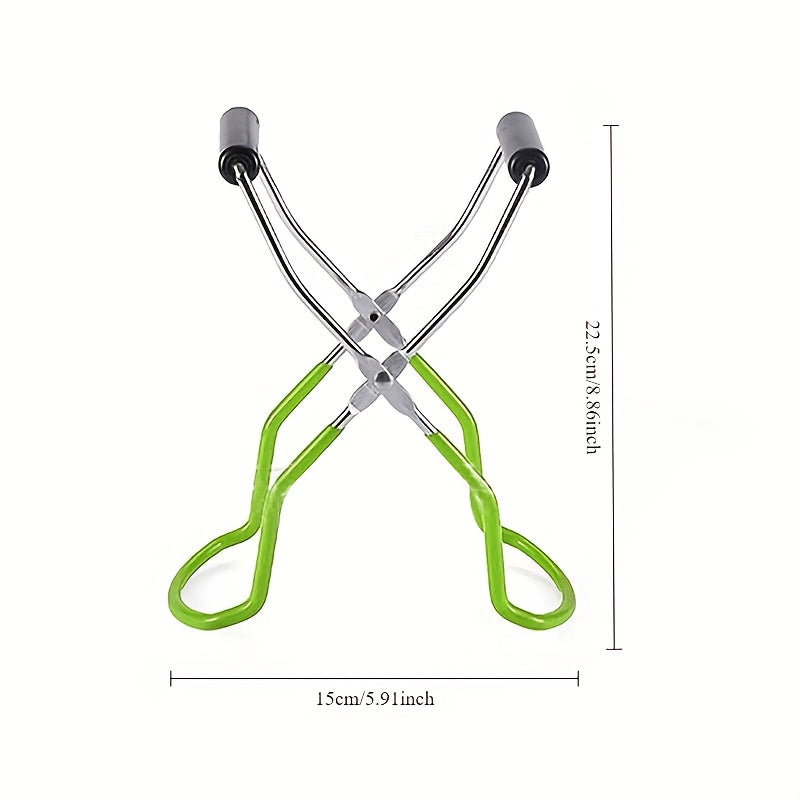 Yashil Yuqori Sifatli Keng Og'izli Konserva Bankasi Ko'taruvchi Tongs, Qizib Ketishdan Himoyalovchi, Sirpanmaydigan Ovqat Tashuvchi Klip, Mustahkam Temir va Vinil Qoplamali Materialdan Yasalgan, o'lchami 22.5x15 sm.