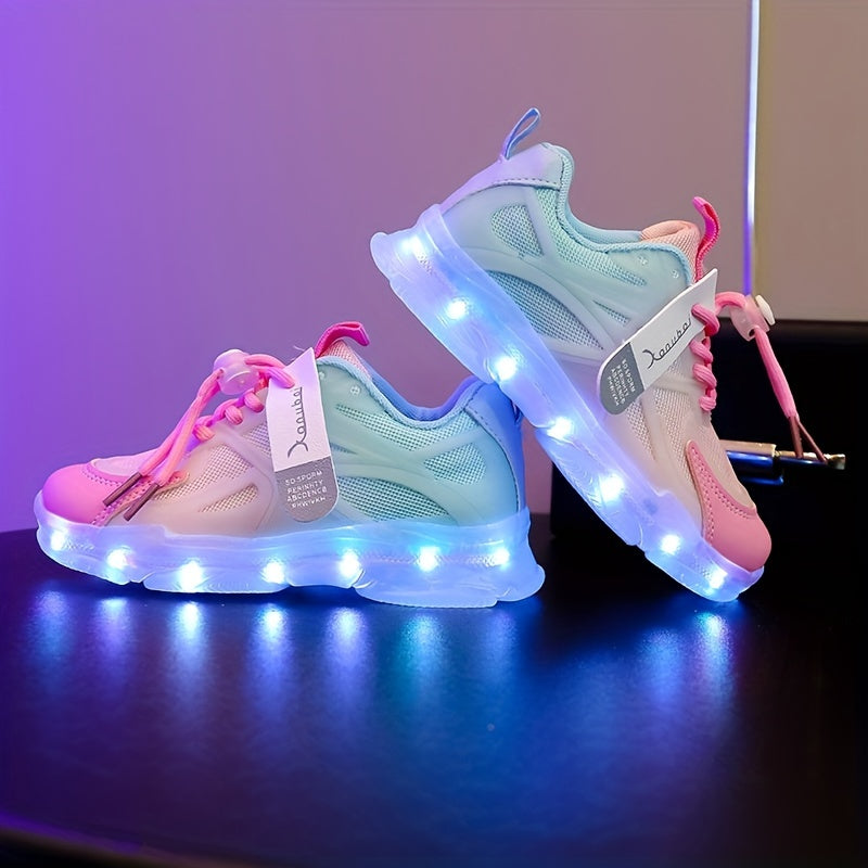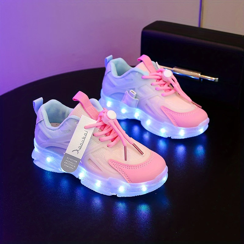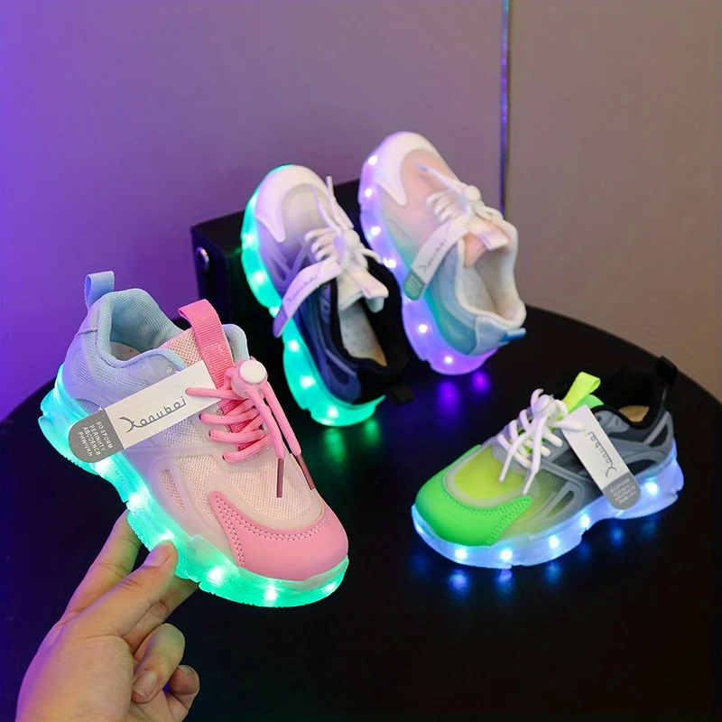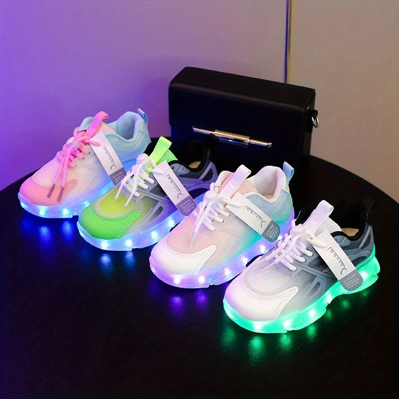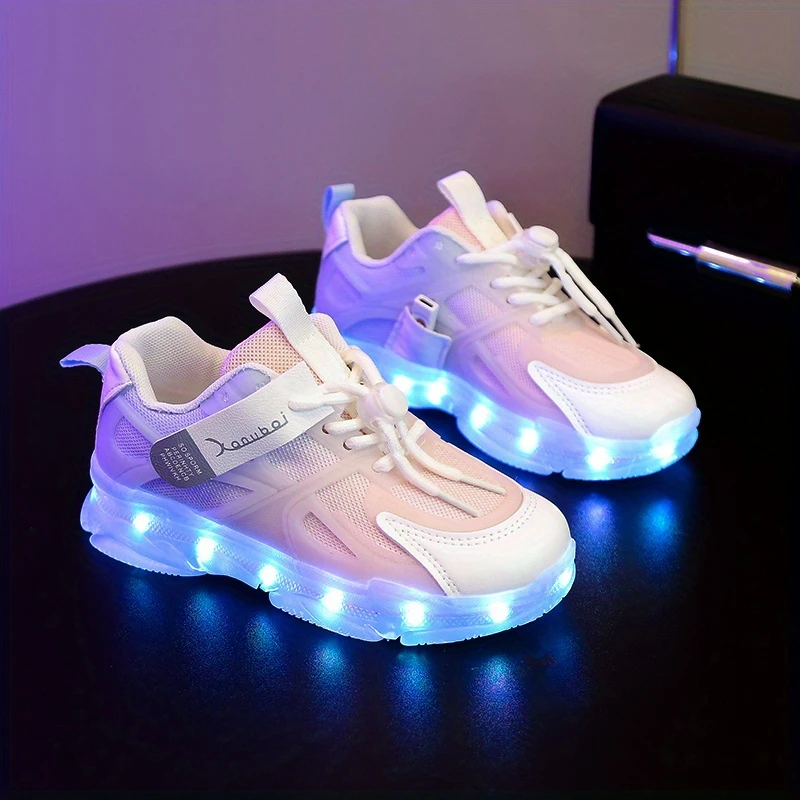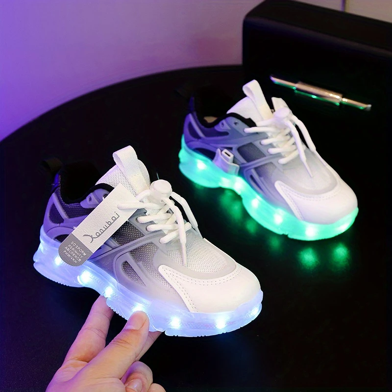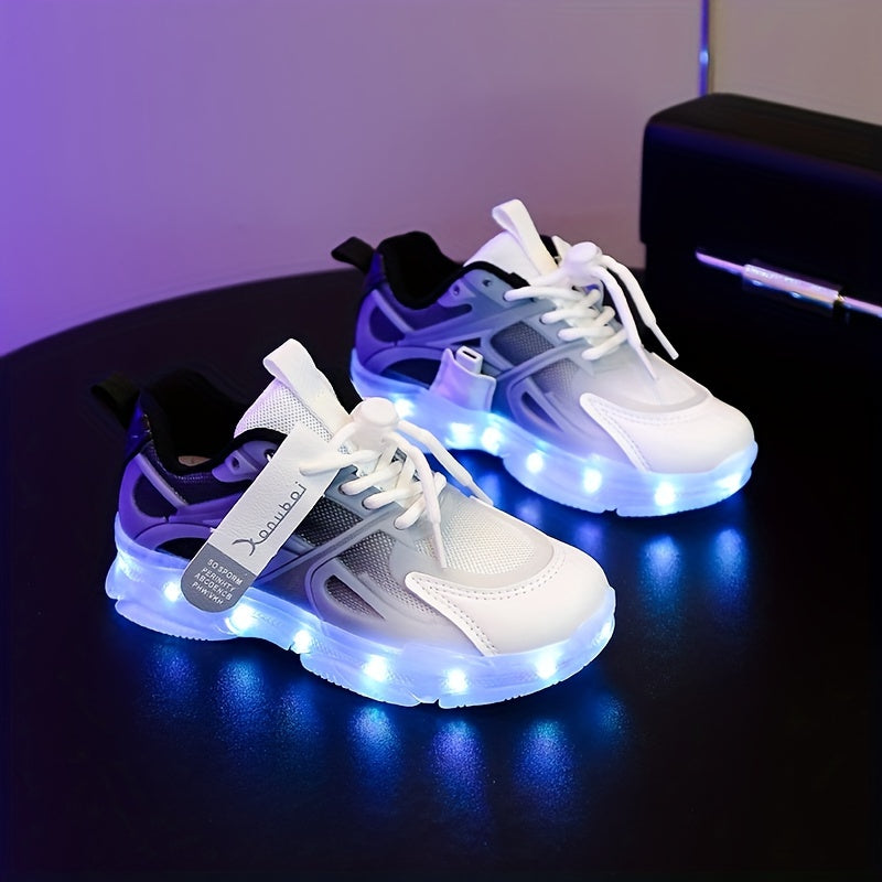 Guanlan USB orqali zaryadlanadigan LED krossovkalar, bolalar uchun rang o'zgartiruvchi pufak taglik bilan. Tunda ko'rinish va uslub uchun ideal.