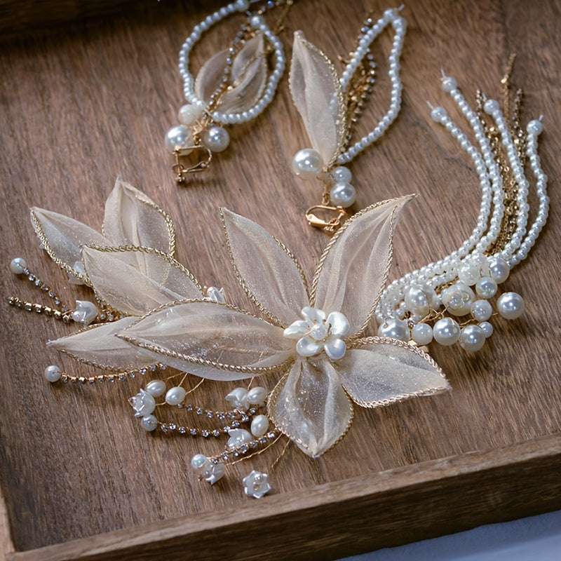Gul faux marjonli soch kliplar to'plami, to'y, partiyaga, cosplay va bezaklar uchun