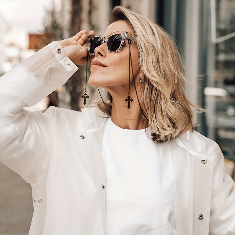 Halloween Goth Ko'zoynak Zanjiri, Xoch, Qarg'a, Mushuk va It Bezaklari bilan - Quyosh Ko'zoynaklari va O'qish Ko'zoynaklari uchun Lanyard Strap, Qiziqarli Yuzni Qoplovchi Usul - 4 dona to'plam