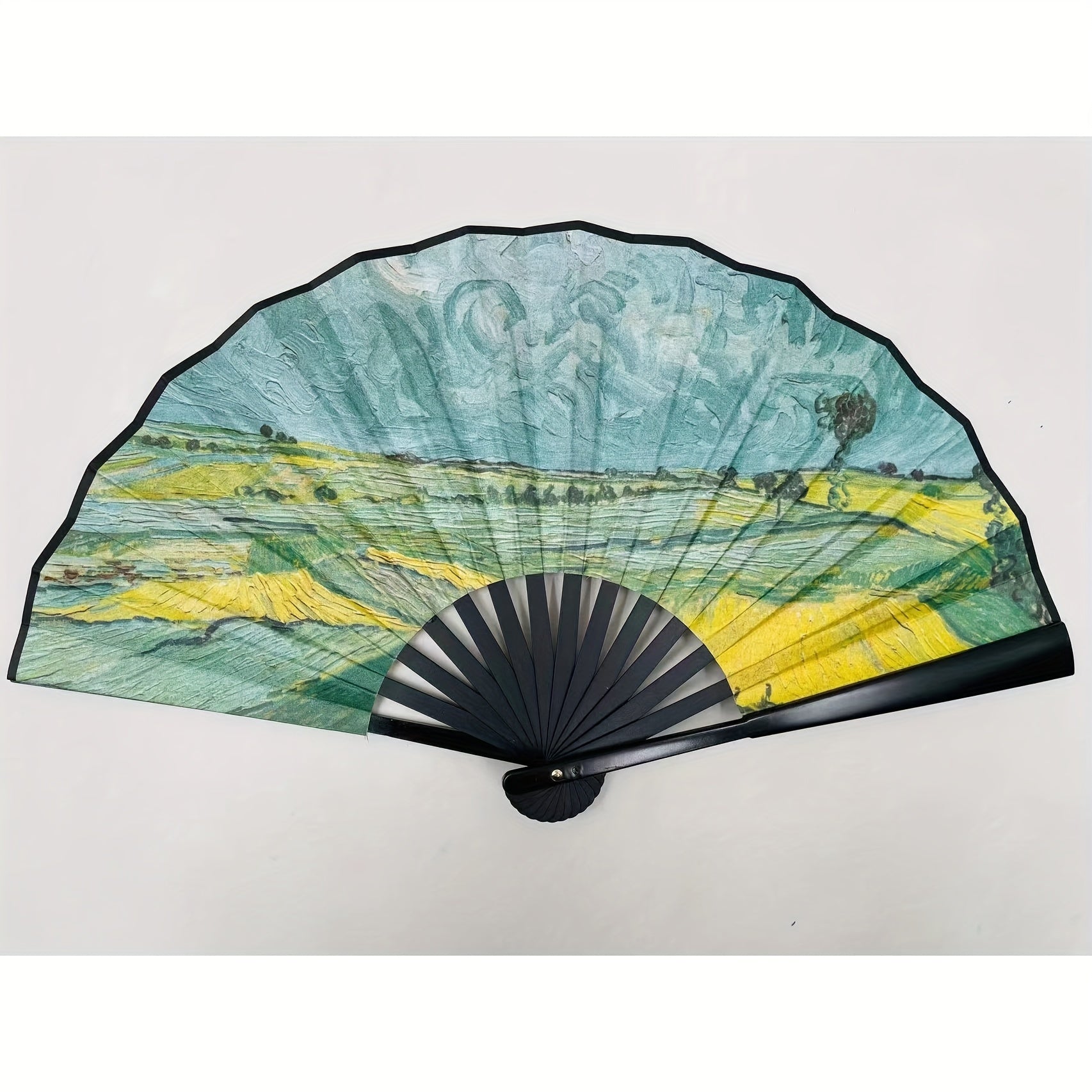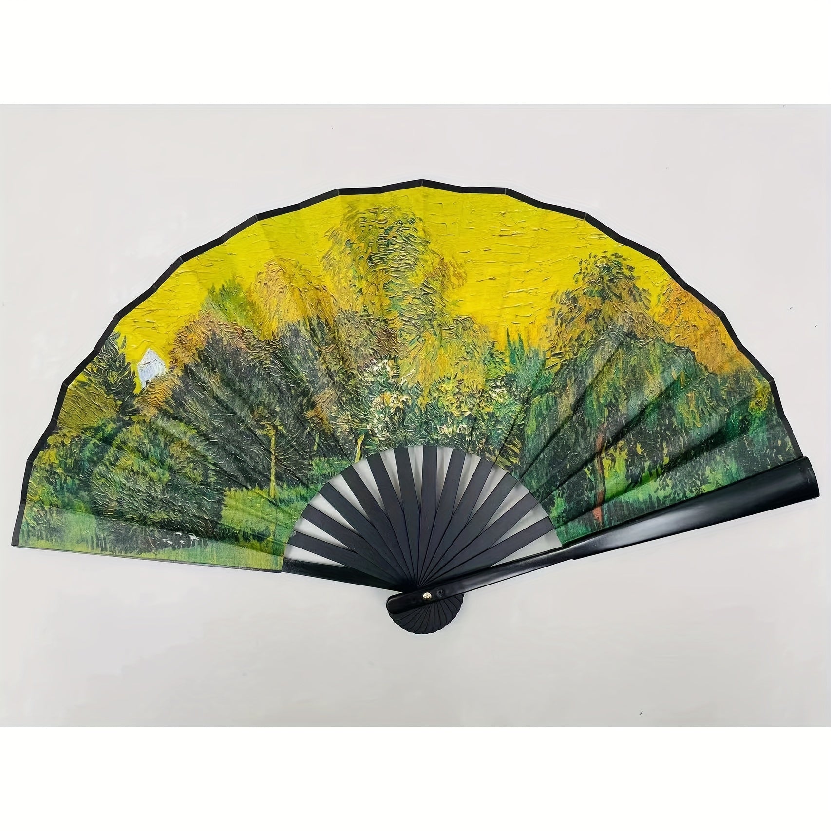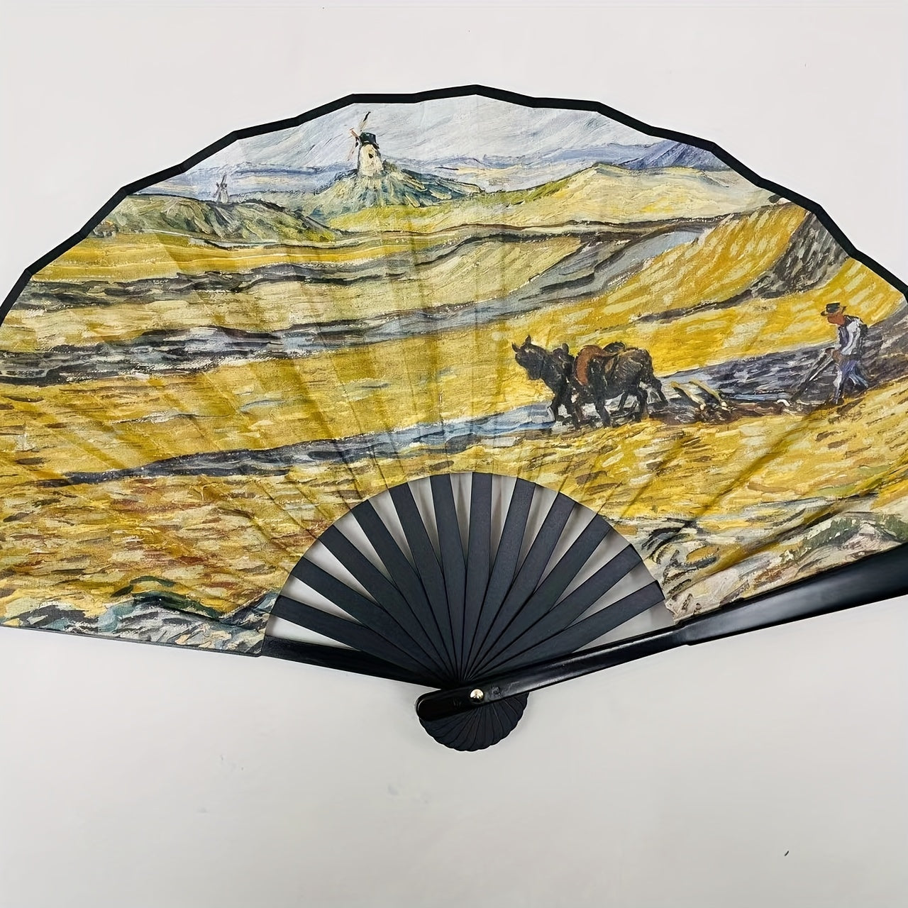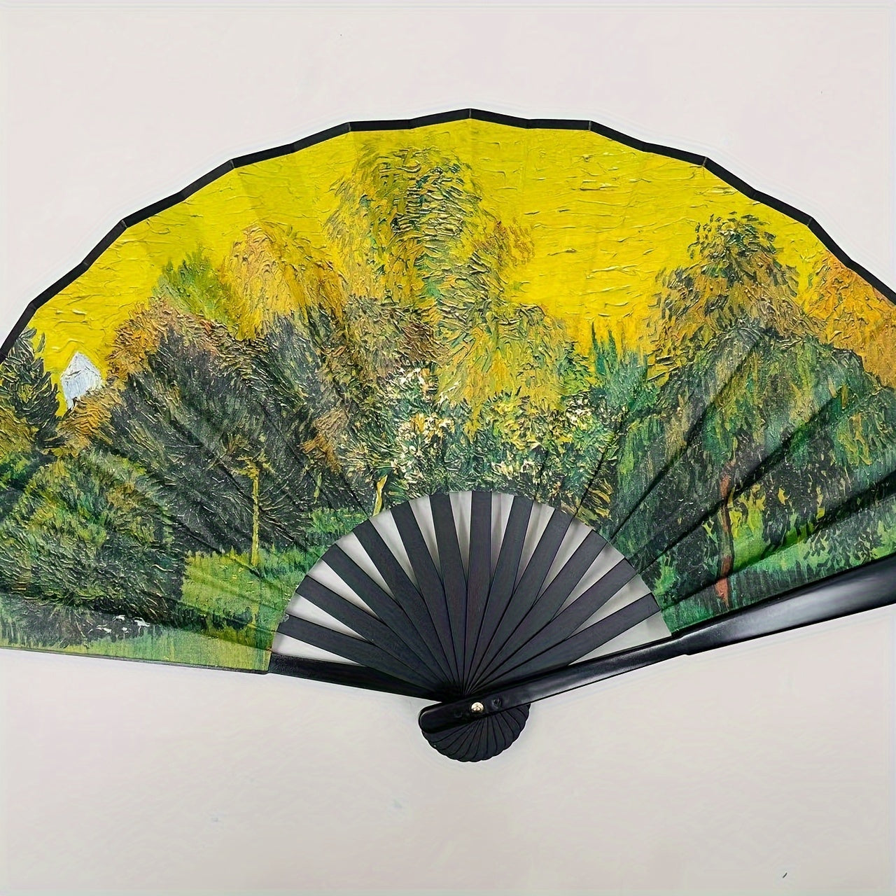 "Zarif Landshaft Printi bilan Qo'l Ventilyatori, Raqqoslik Ko'rsatmalari va Cheongsam Kiymak Uchun Mukammal, Yuqori Sifatli Bosma va Egiluvchan Dizayn"