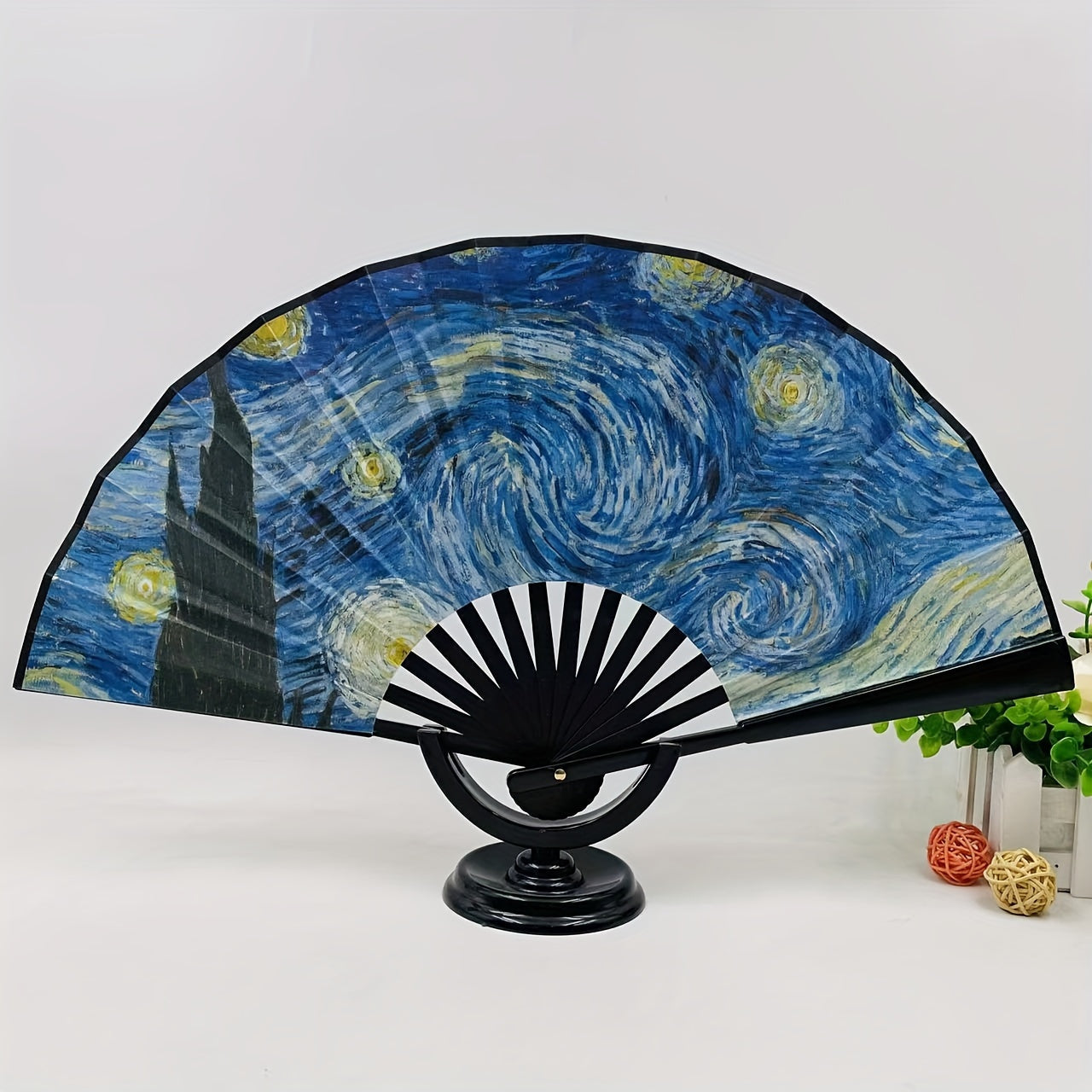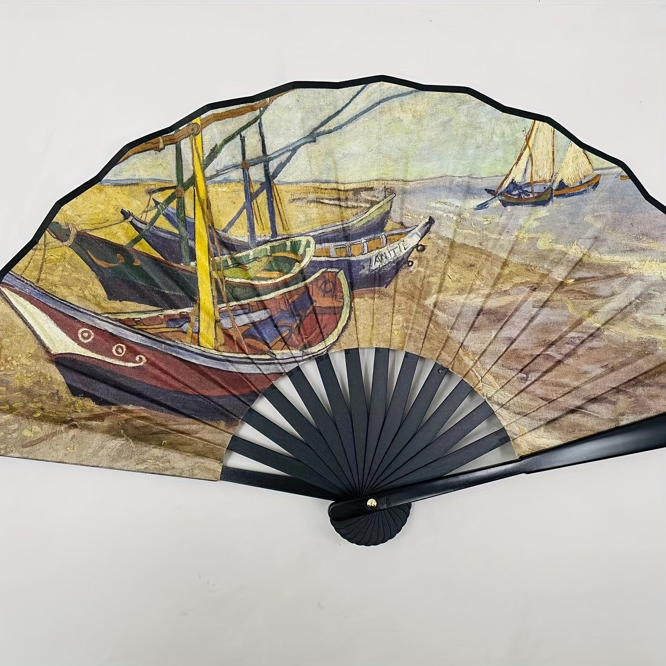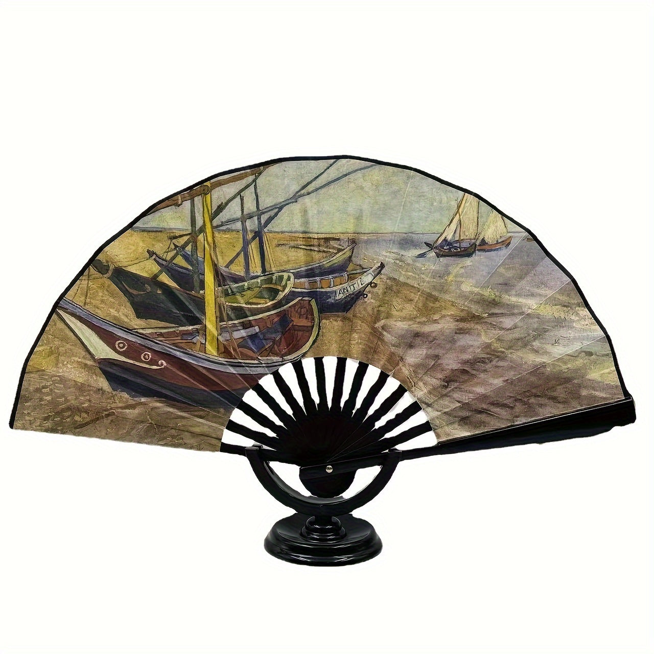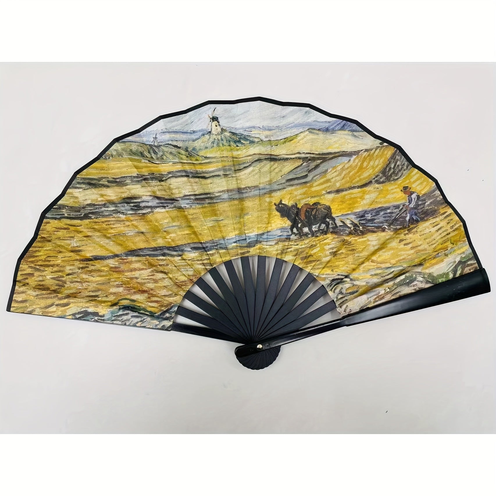 "Zarif Landshaft Printi bilan Qo'l Ventilyatori, Raqqoslik Ko'rsatmalari va Cheongsam Kiymak Uchun Mukammal, Yuqori Sifatli Bosma va Egiluvchan Dizayn"