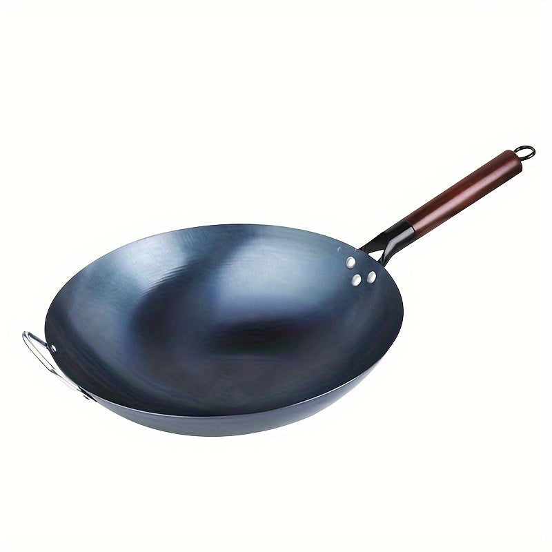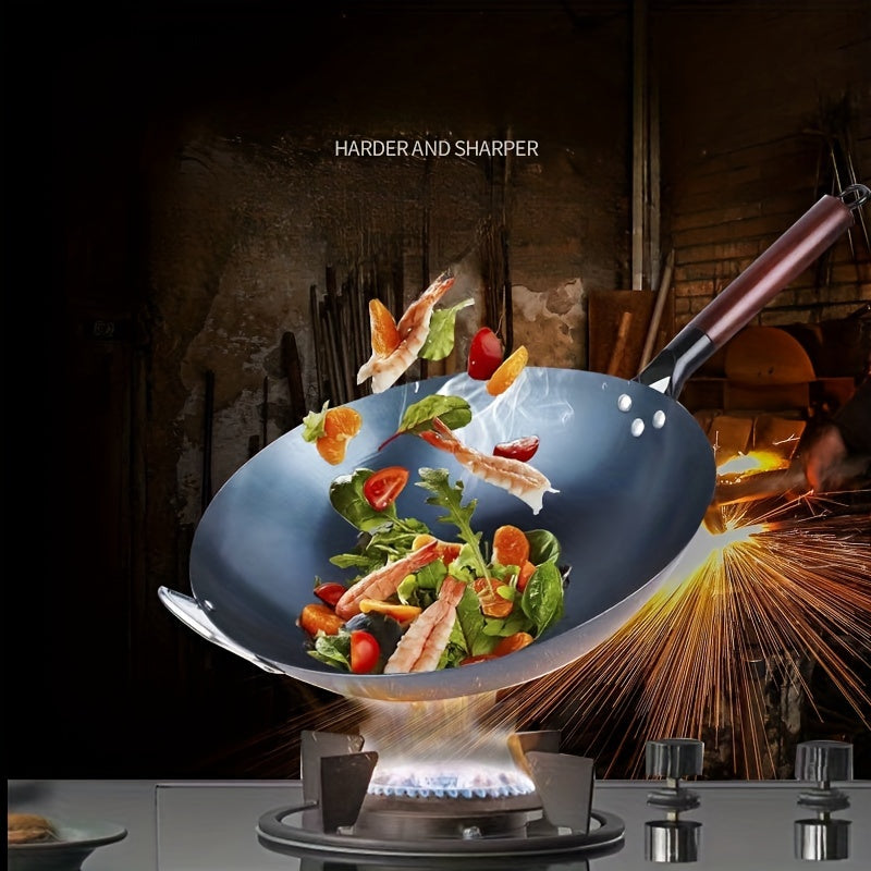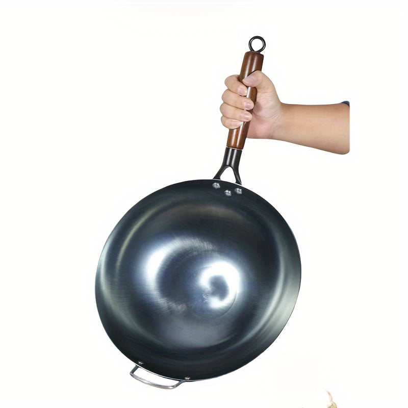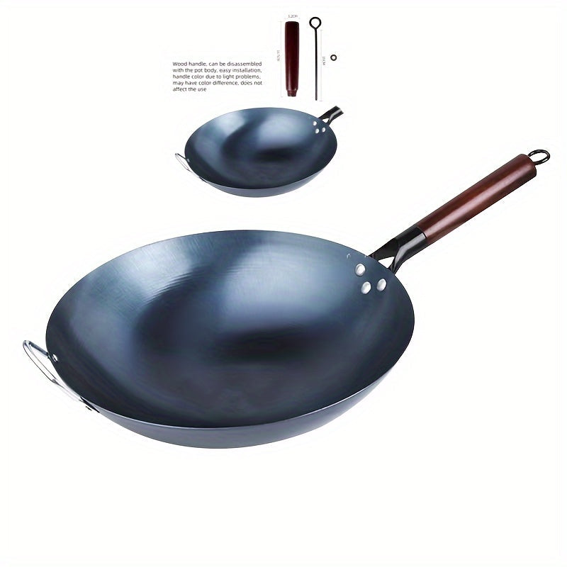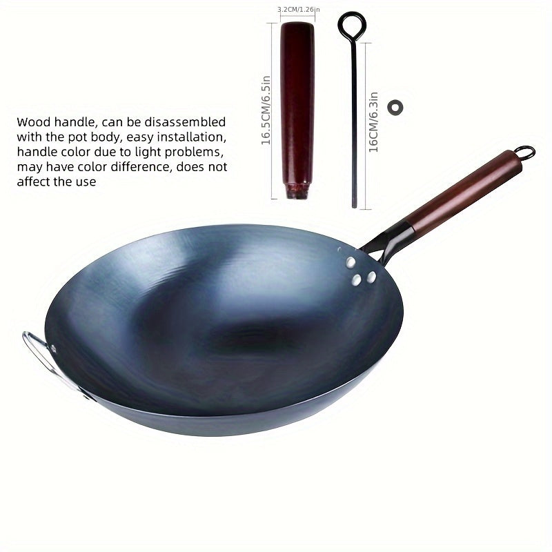 Qo'l bilan zarb qilingan yopishqoq quyma temir wok, ajratiladigan yog'och tutqichi bilan - 32.0 sm o'lcham, gaz pechlari uchun ideal va uy oshxonasida zarur