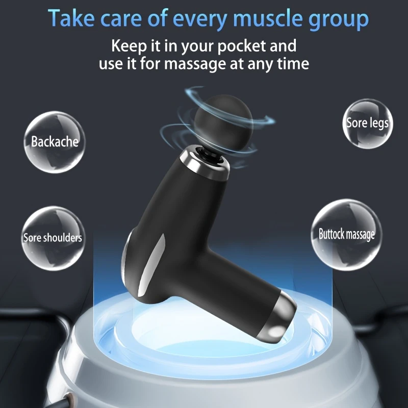 Qo'lga olinadigan portativ elektr massaj mashinasi, qulay tutqichi va to'rt tomonlama massaj uchun olti tezlikka ega. Kuchli motor, simsiz dizayn va har qanday joyda qulay foydalanish uchun oson ishlash xususiyatlariga ega.