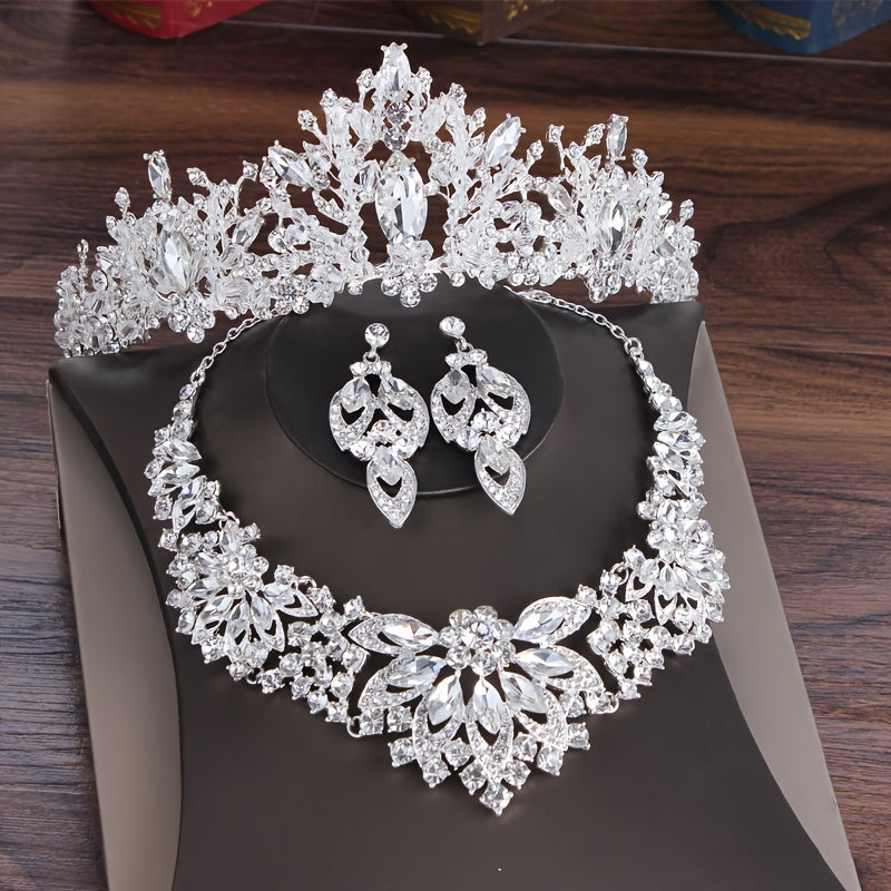 Qoʻlda tayyorlangan rhinestone taxtli taqinchoq va sirgʻa toʻplami, toʻy uchun kelin taqinchoqi va sirgʻa