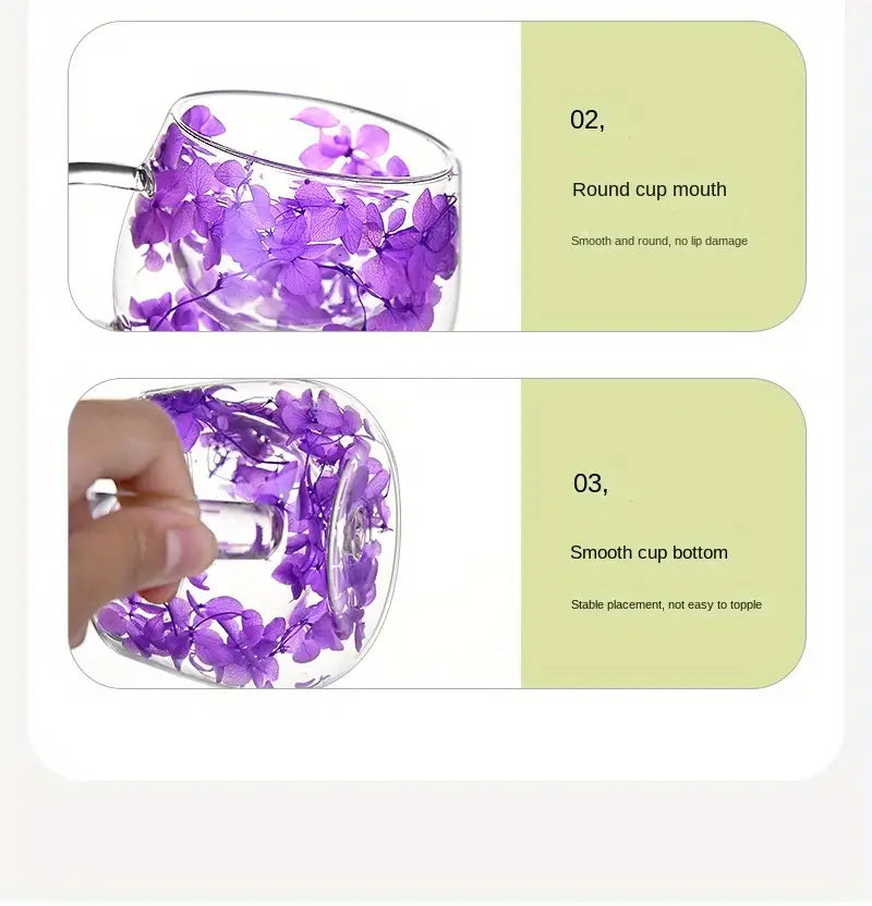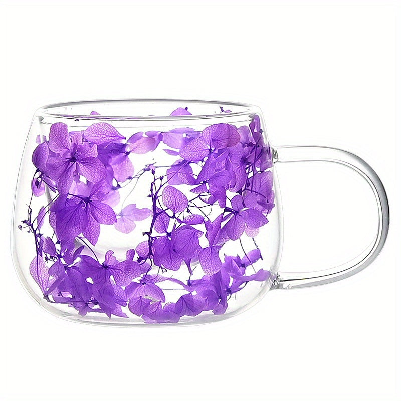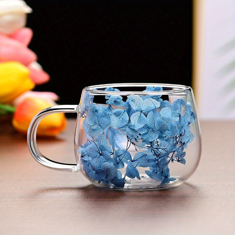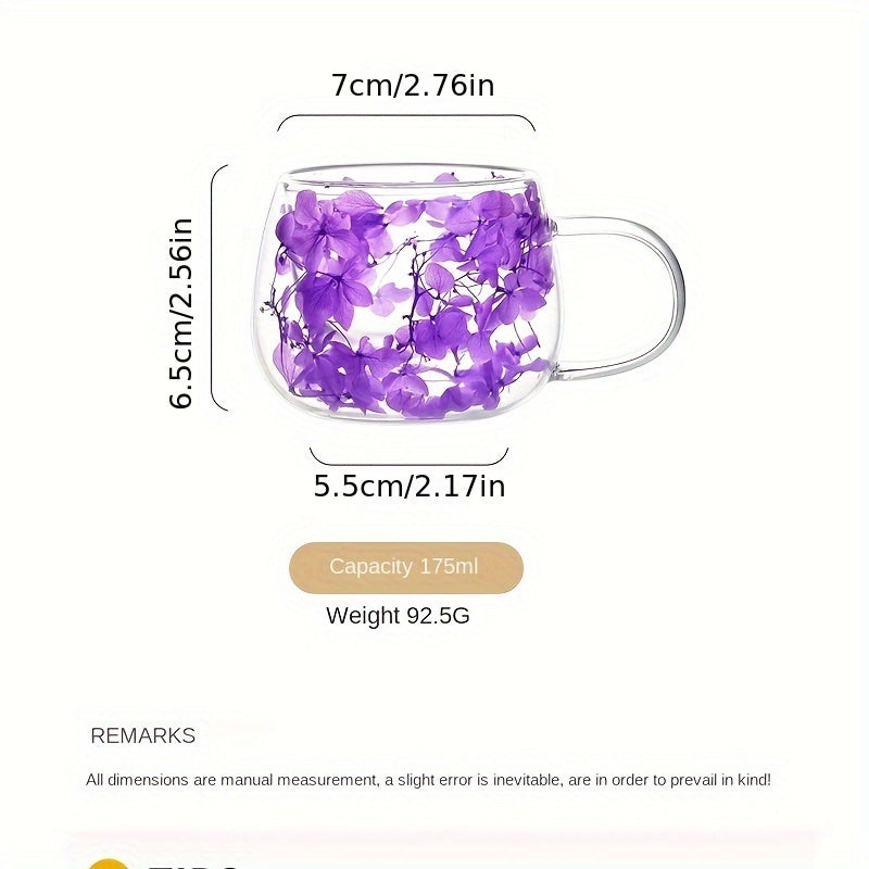 Haqiqiy quritilgan gullar bilan qo'l bilan tayyorlangan gullar naqshli shisha qahva stakani, izolyatsiya uchun ikki devorli, faqat qo'l bilan yuvish, uyda foydalanish uchun mukammal.
