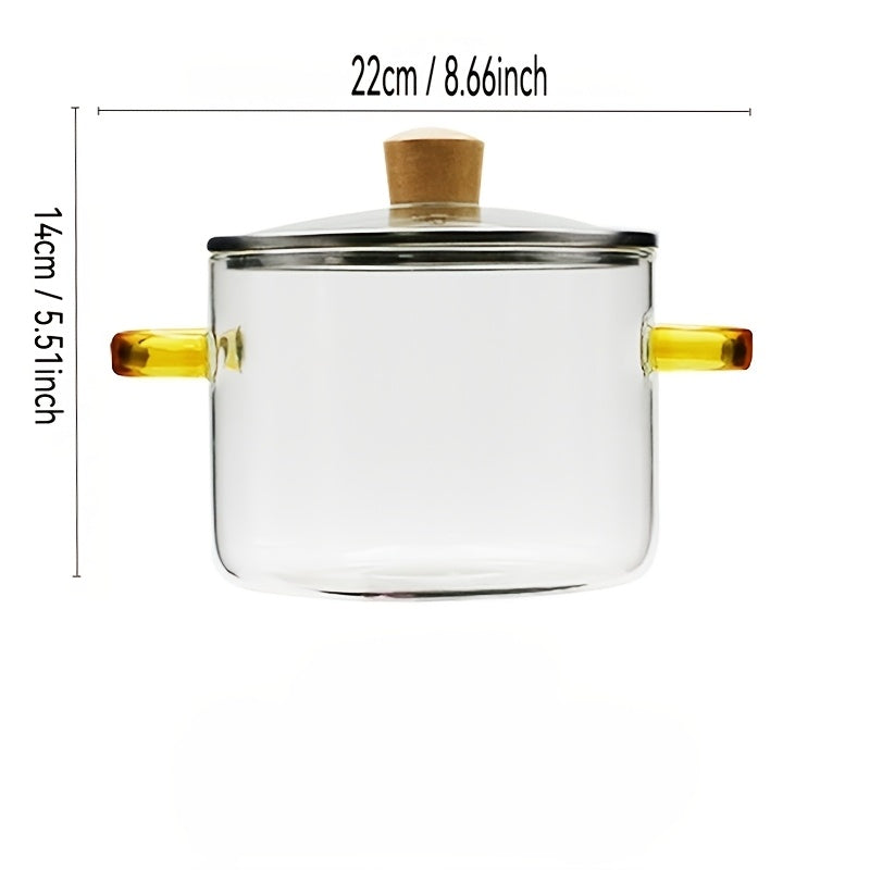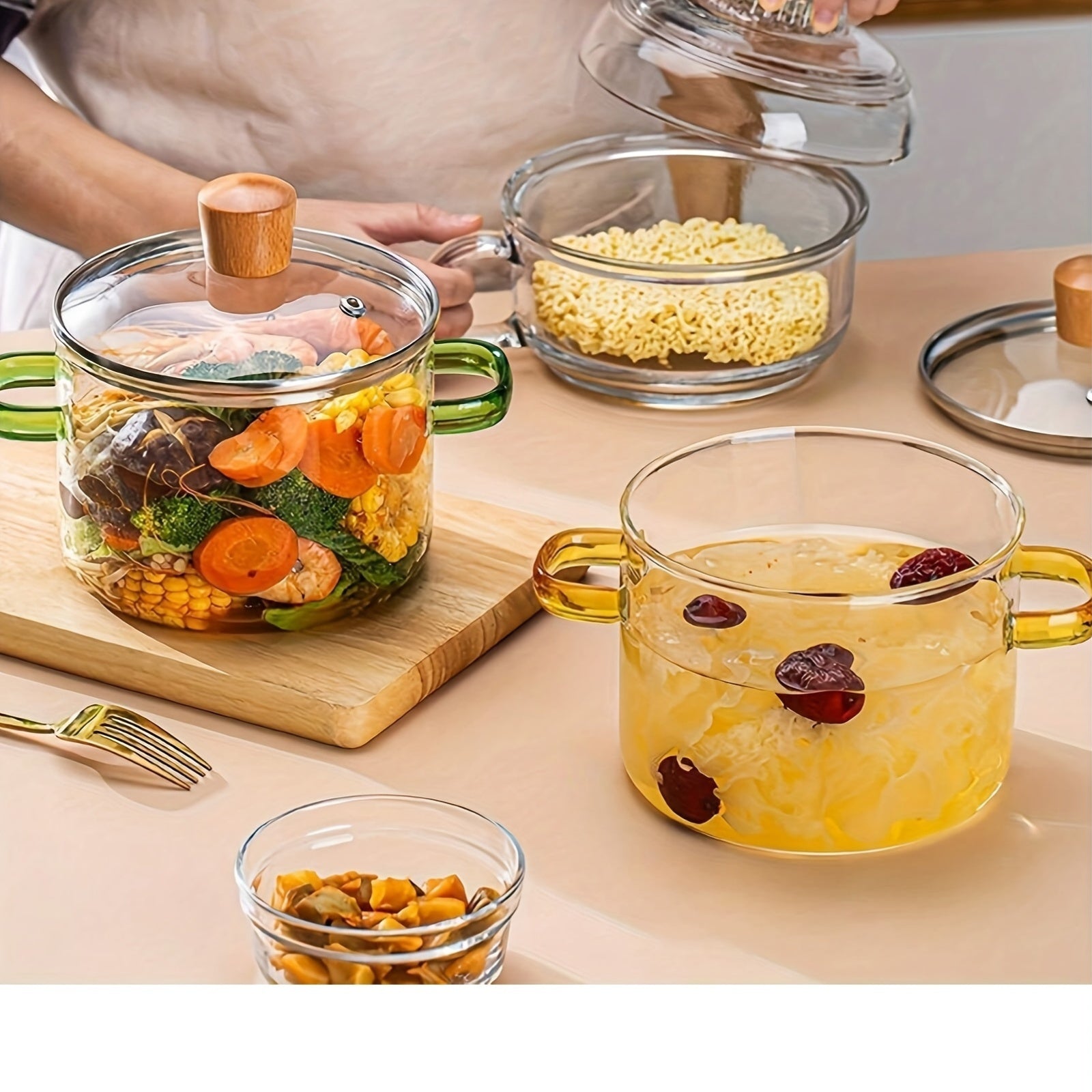 Qo'l bilan yasalgan shisha qozon to'plami qopqoq bilan - issiqqa chidamli plita qozoni va qozon, makaron, noodle, sho'rva, sut va bolalar ovqatini tayyorlash uchun ideal, plita uchun xavfsiz