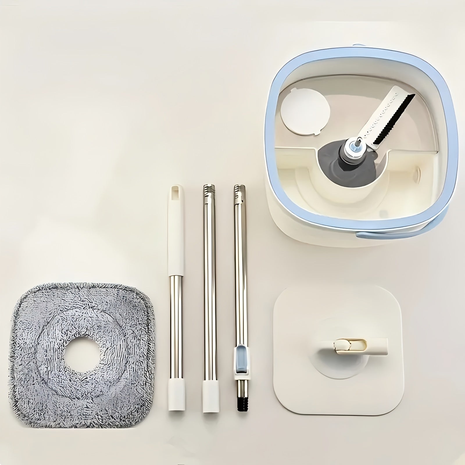 "Elektr energiyasiz tozalash uchun mo'ljallangan, uzun tutqichi va markaziy 3-in-1 tizimi bilan qo'l bilan ishlatilmaydigan tekis siqish mopu va chelak to'plami. Turli yuzalar uchun ideal."