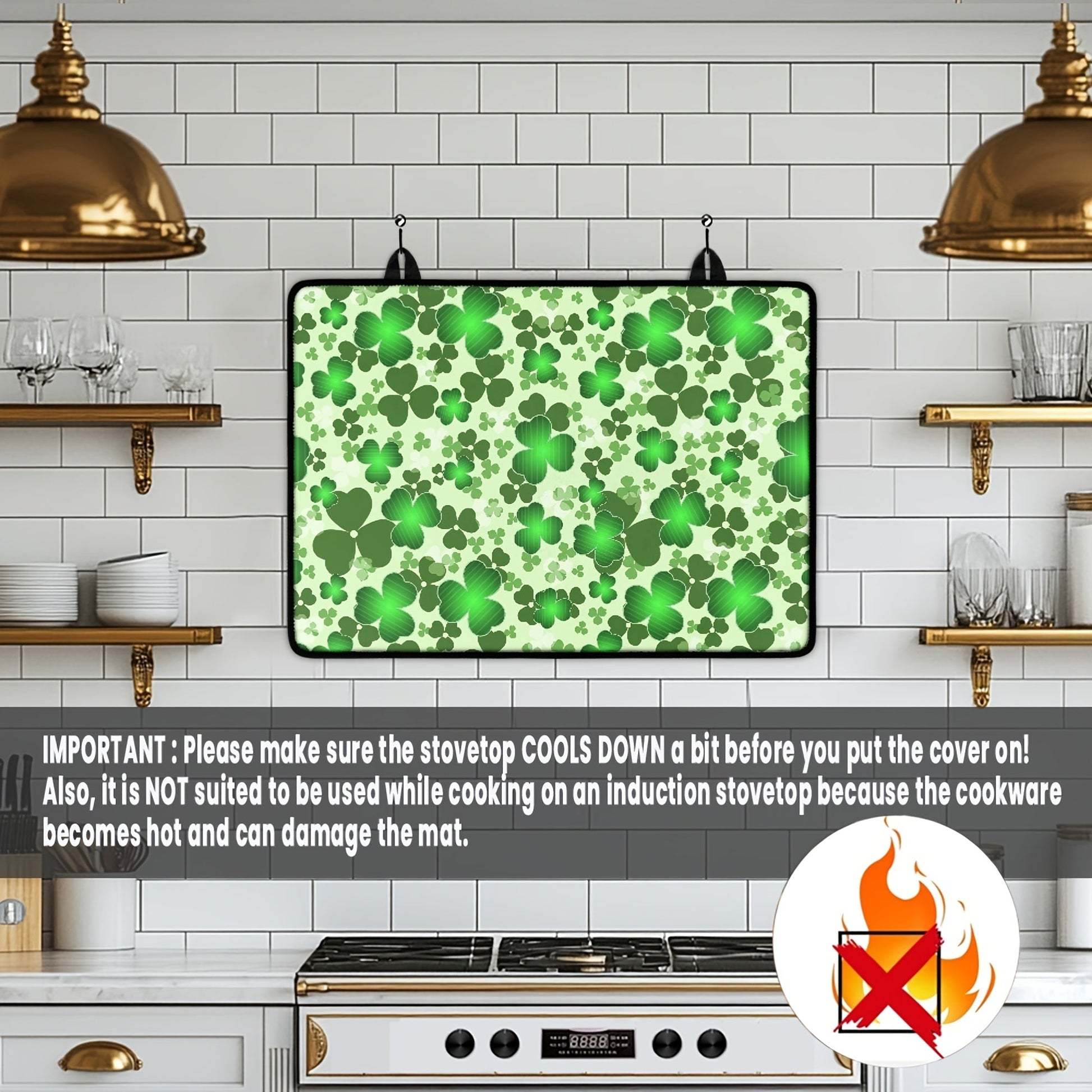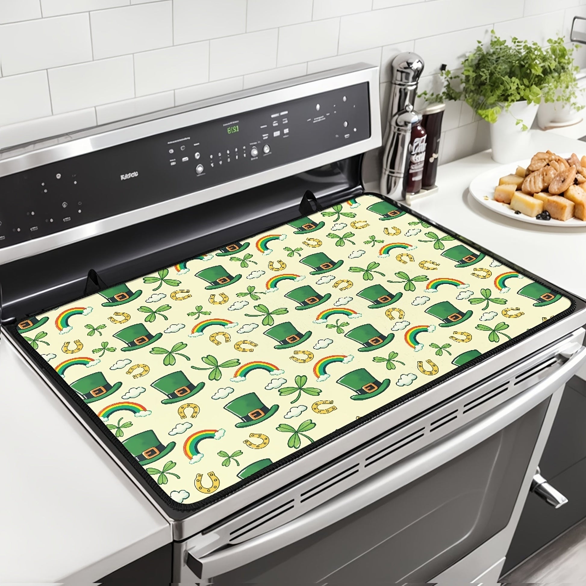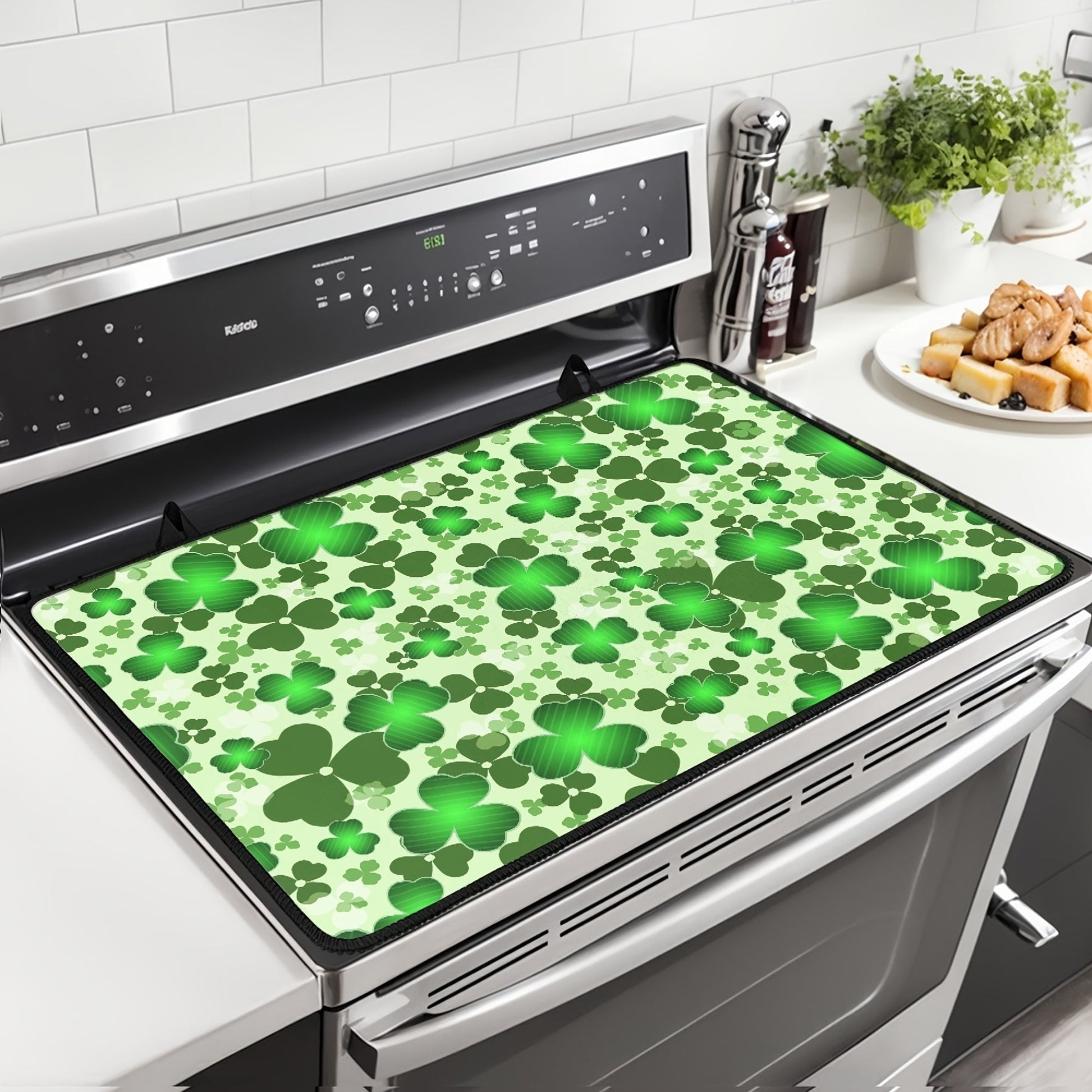 Oshxona himoyasi uchun toshga chidamli, yopishqoq bo'lmagan pechka qoplami, Klover va Yashil shlyapa dizayni bilan