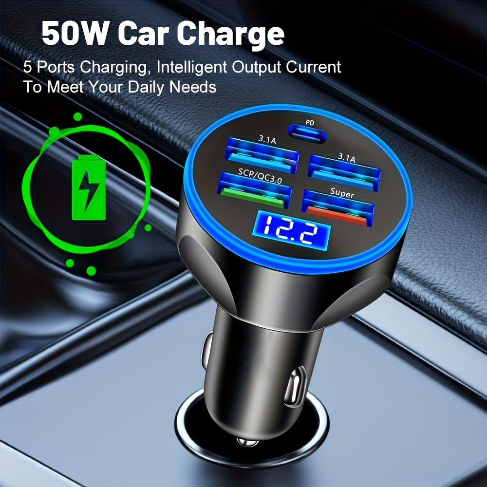 Yuqori quvvatli avtomobil zaryadkasi 3 USB porti PD tez zaryadlash uchun smartfonlar va planshetlar