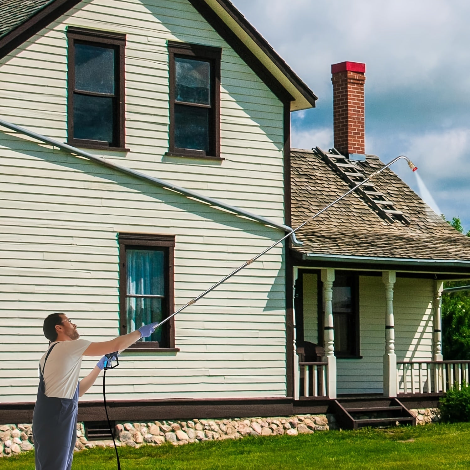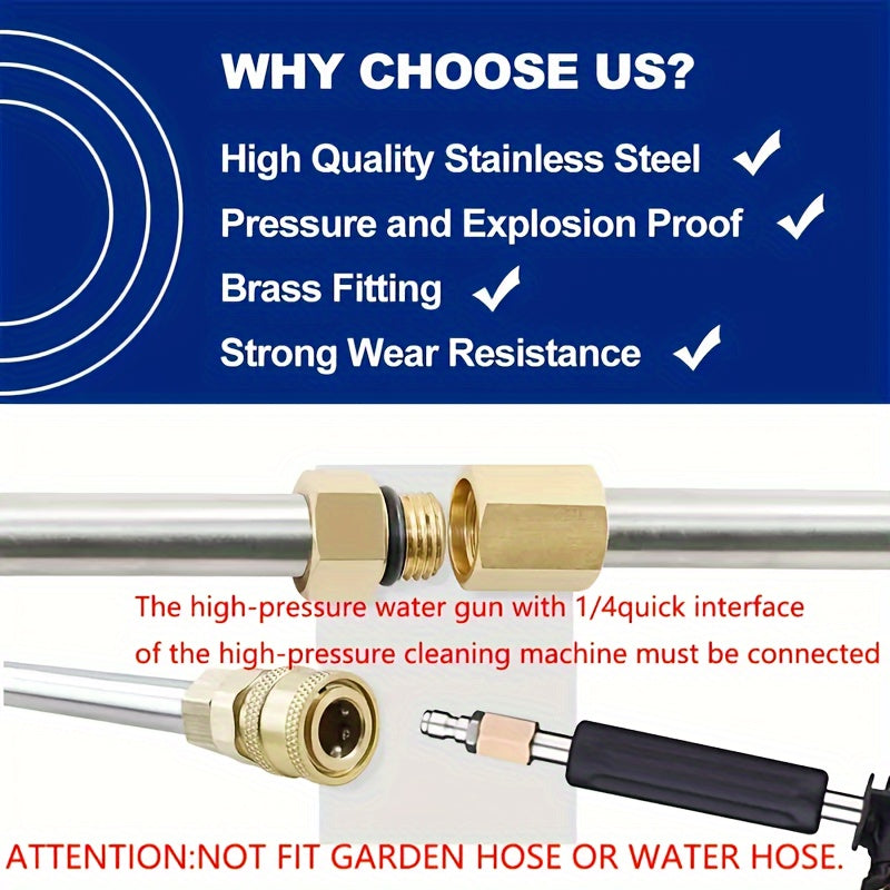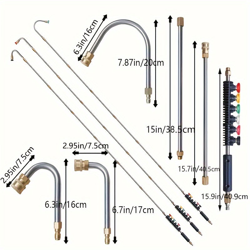 Yuqori bosimli tozalash tayoqchalari to'plami - 10 dona to'plam, mustahkam, tez ulanishlar bilan. 6 ta sozlanadigan nozzle va 4000 PSI quvvatni o'z ichiga oladi. Tomlar, devorlar va drenaj kanallarini tozalash uchun ideal.