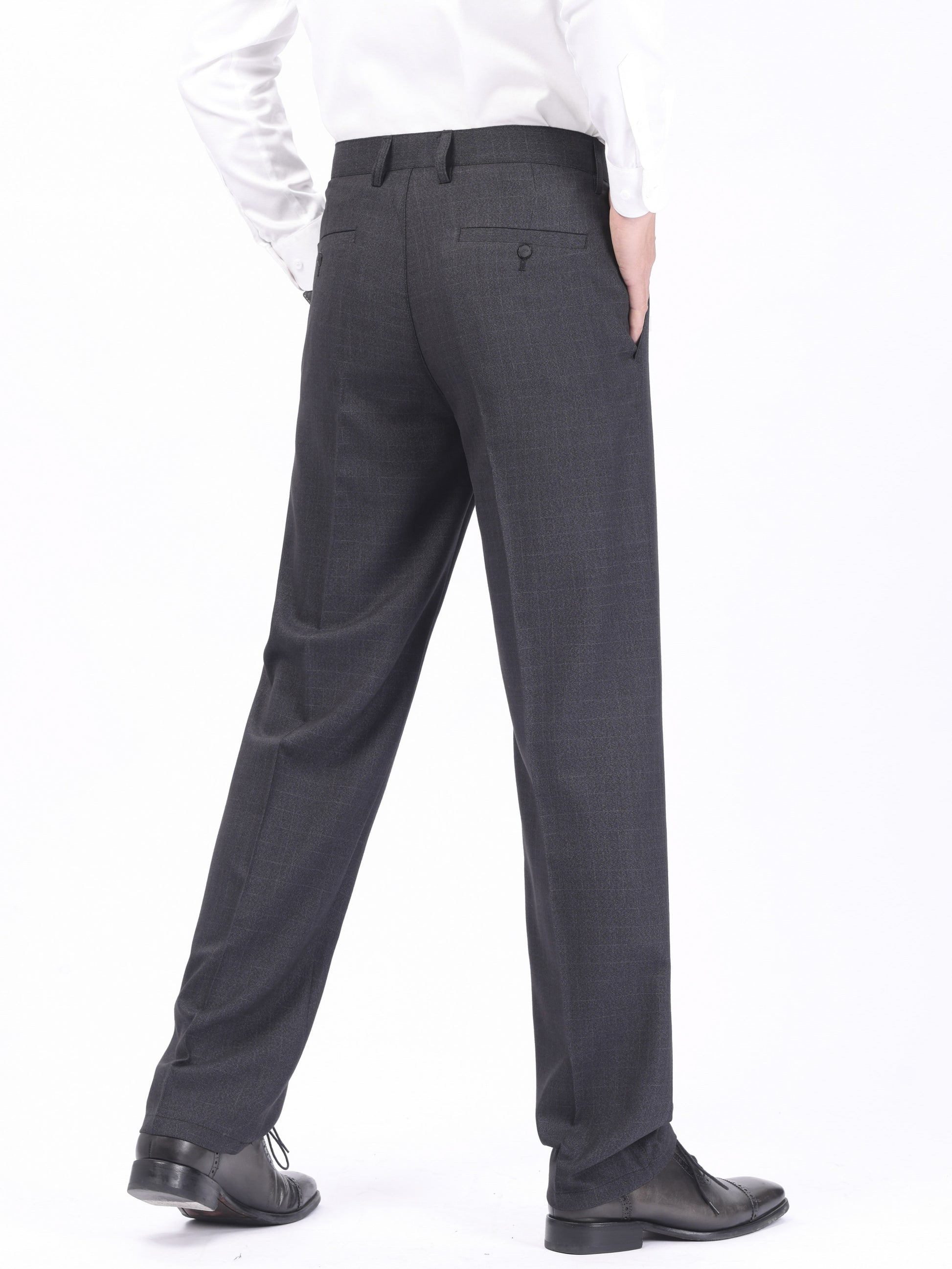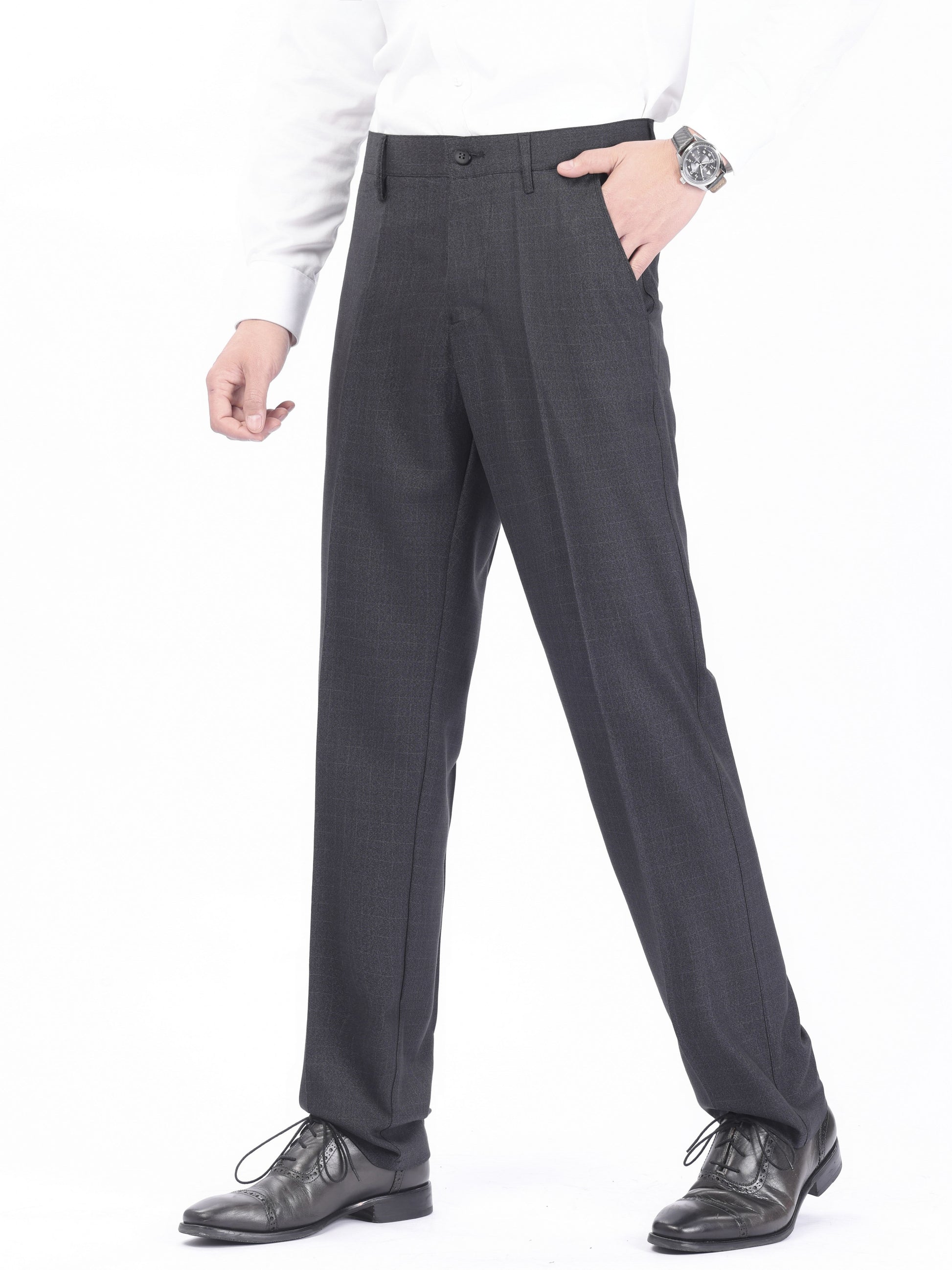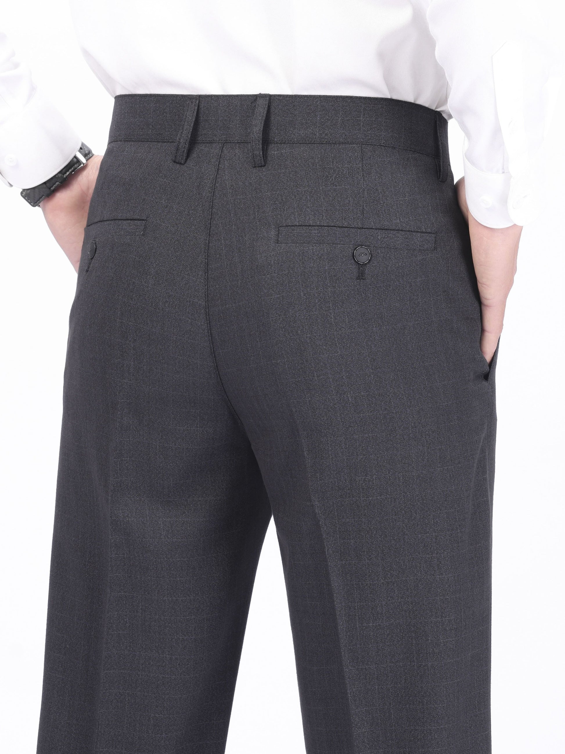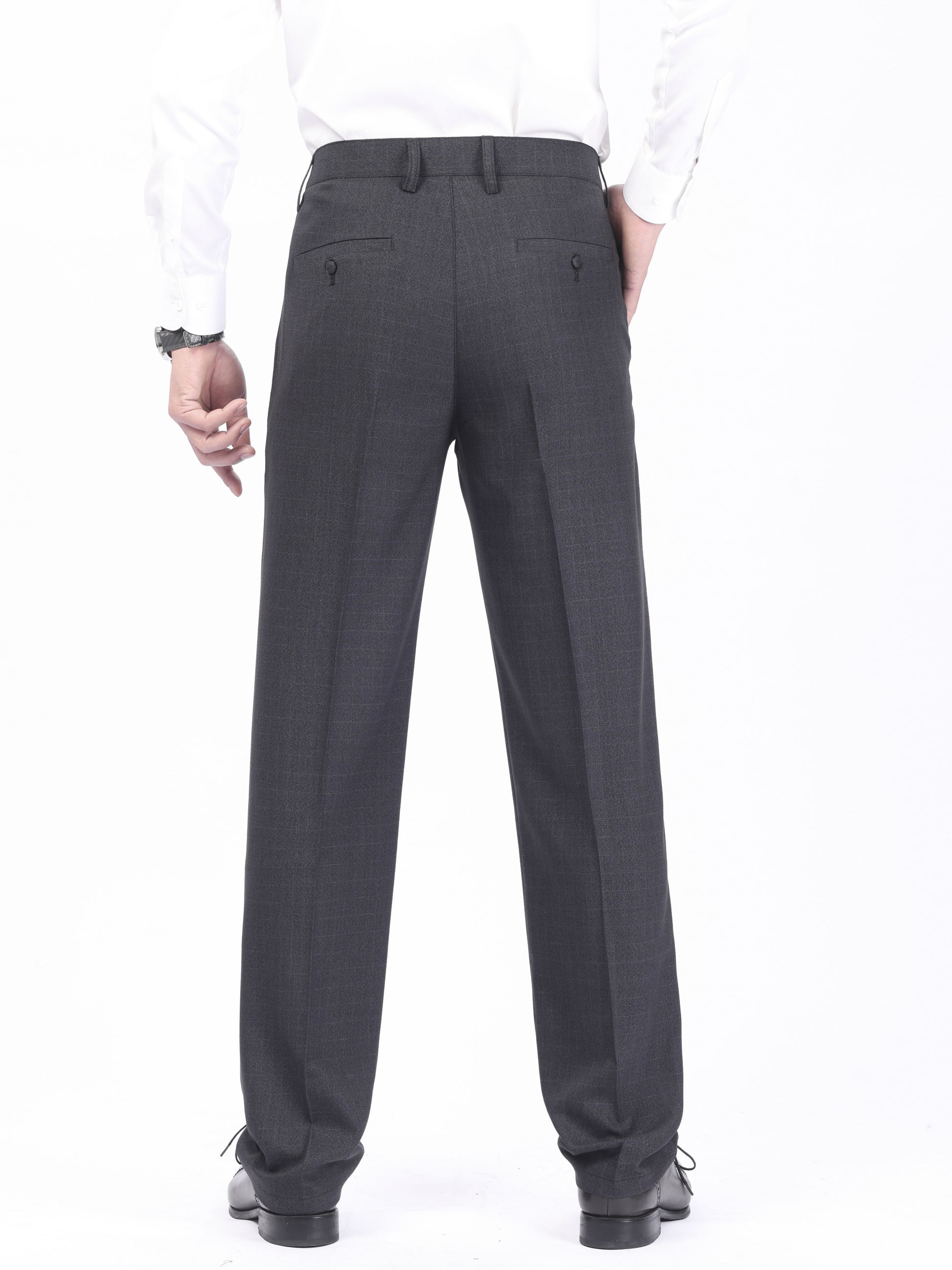 Oliy sifatli, chiziqli qora kulrang shimlar katta o'lchamdagi erkaklar uchun 0XL-6XL o'lchamlarida. Cho'zilmaydigan polyester aralashmasi, mashinada yuvish mumkin.
