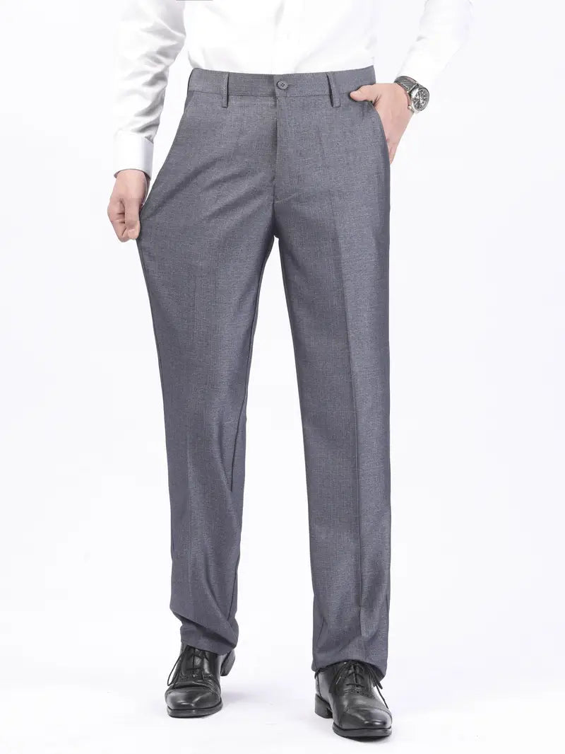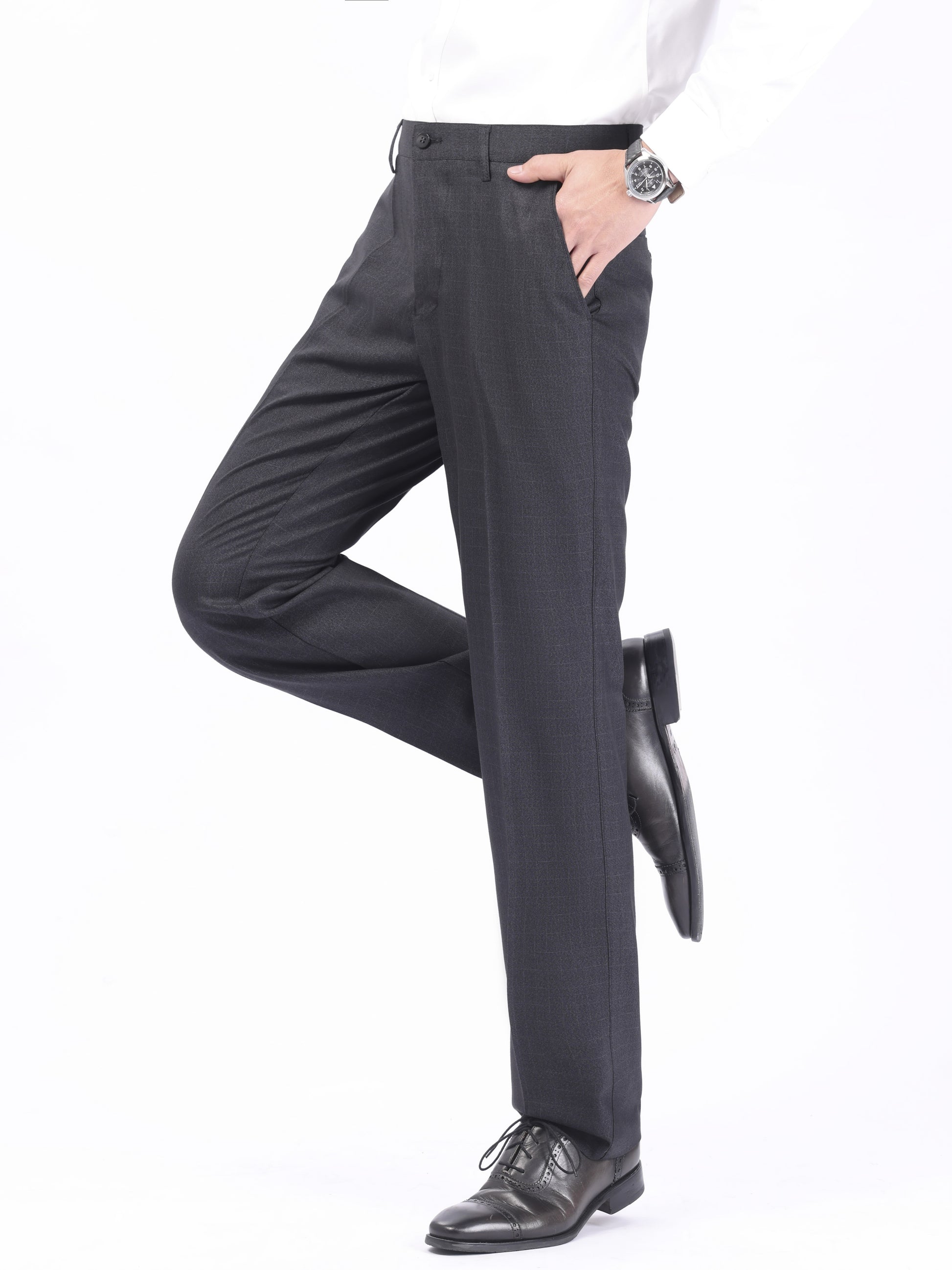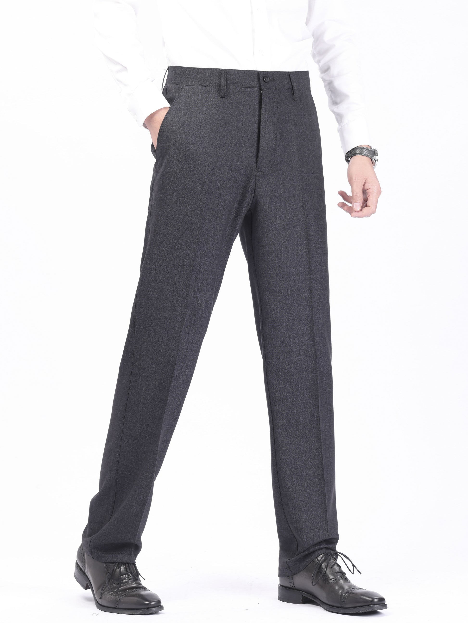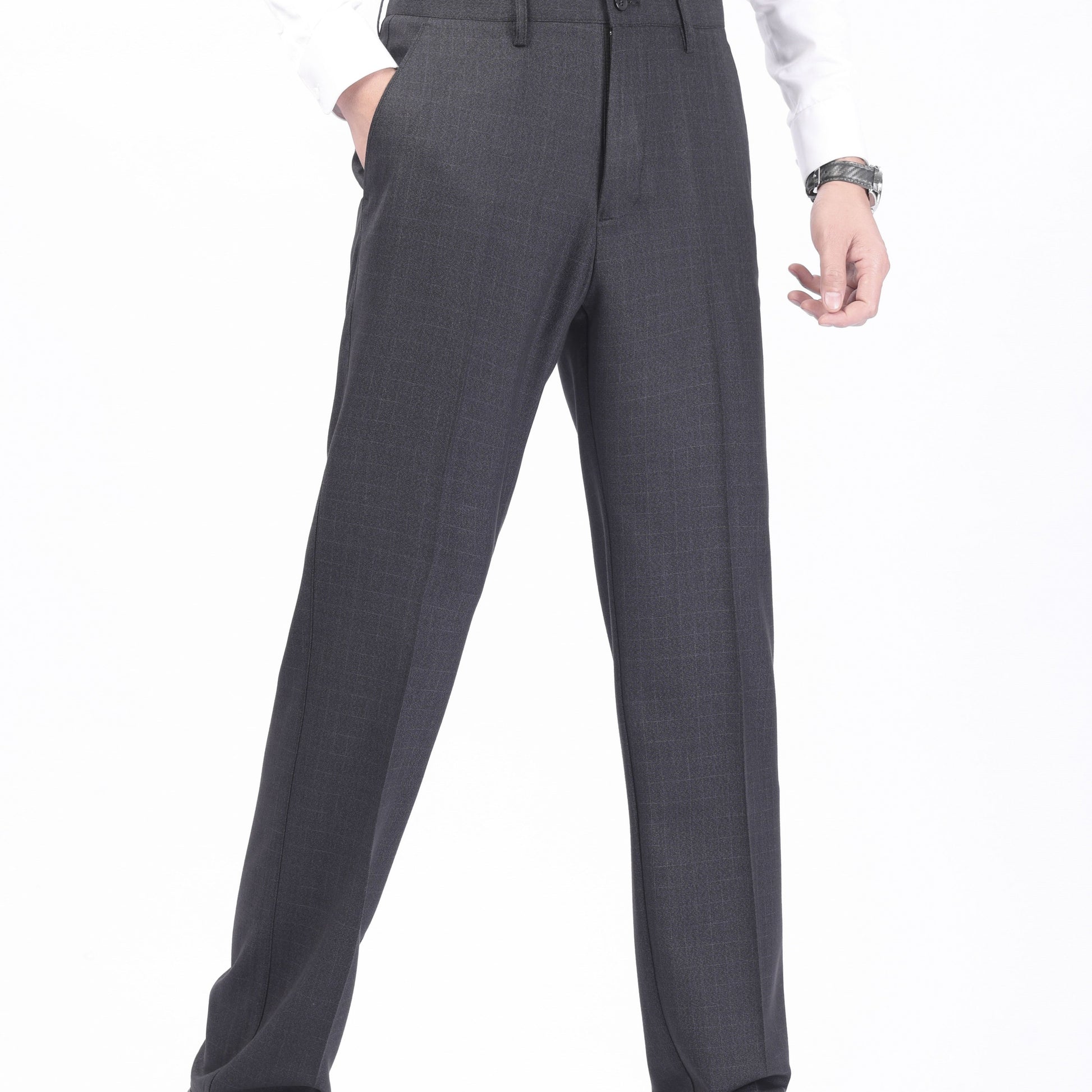 Oliy sifatli, chiziqli qora kulrang shimlar katta o'lchamdagi erkaklar uchun 0XL-6XL o'lchamlarida. Cho'zilmaydigan polyester aralashmasi, mashinada yuvish mumkin.
