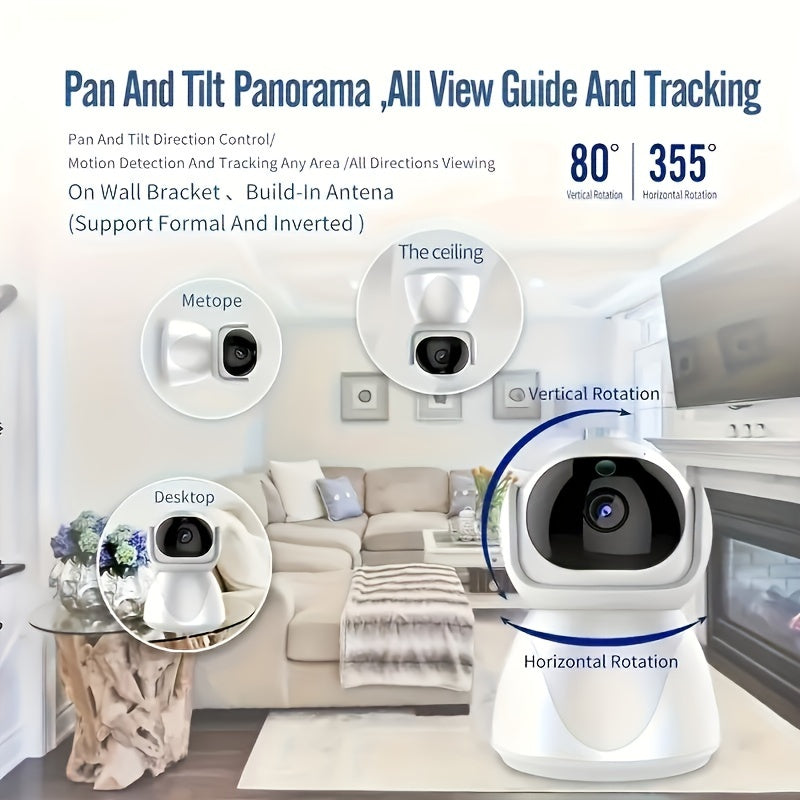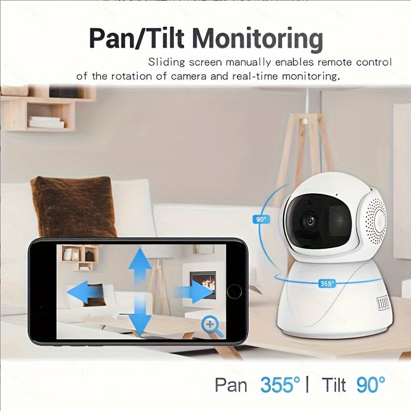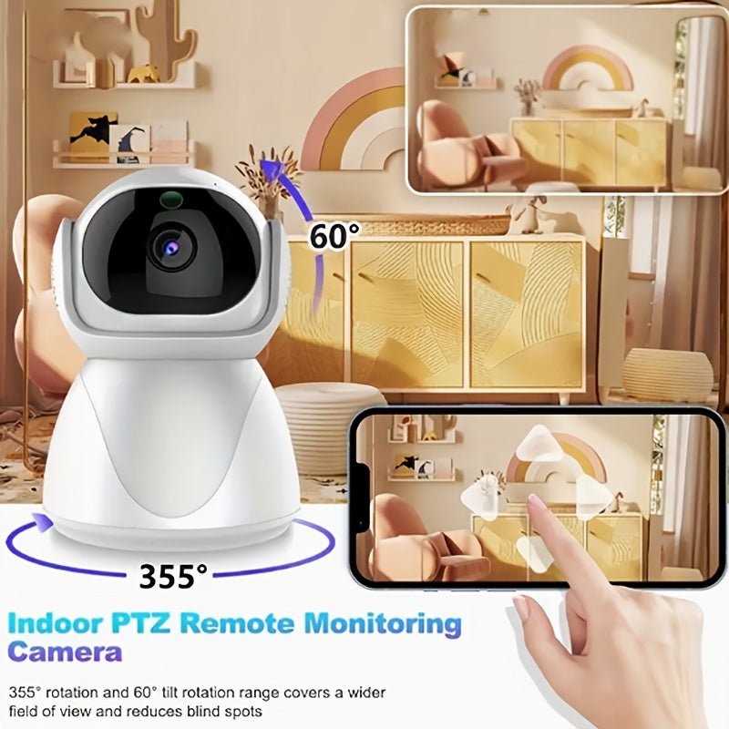 "Yuqori xavfsizlikka ega simsiz WiFi uy kamerasi, uy hayvonlarini kuzatish va aqlli IP kamera. Xususiyatlari: simsiz ulanish, uy xavfsizligi uchun tungi ko'rish, ikki tomonlama ovozli aloqa va bulutli saqlash (to'lovli, xotira kartasi kiritilmagan)."