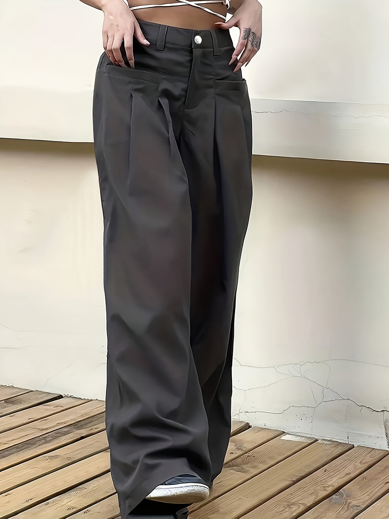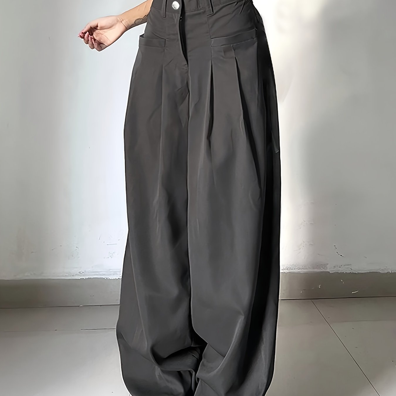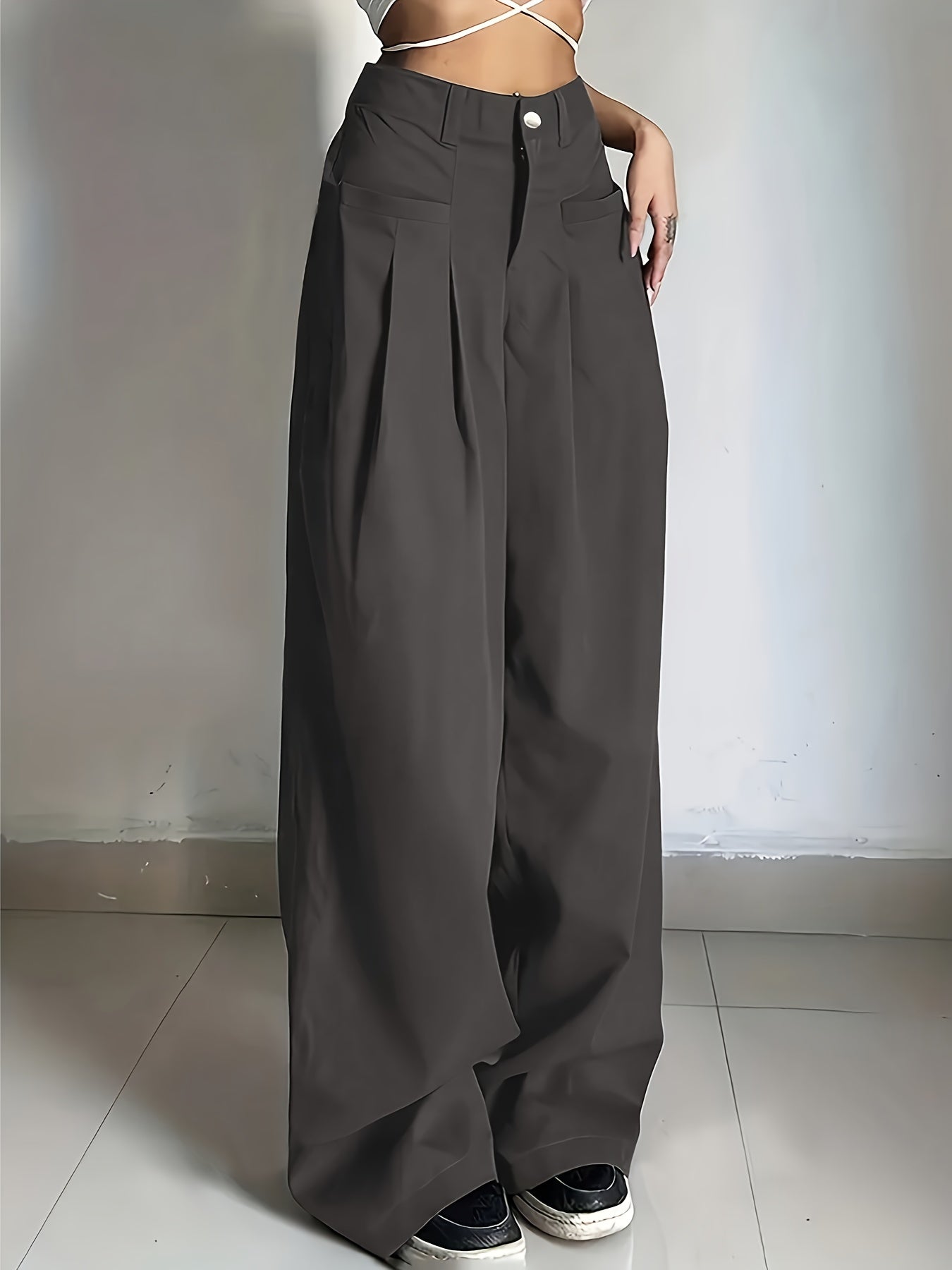 Ayollar uchun ofis kiyimlari uchun bir rangli yuqori belli tugmachali ish shimlari.