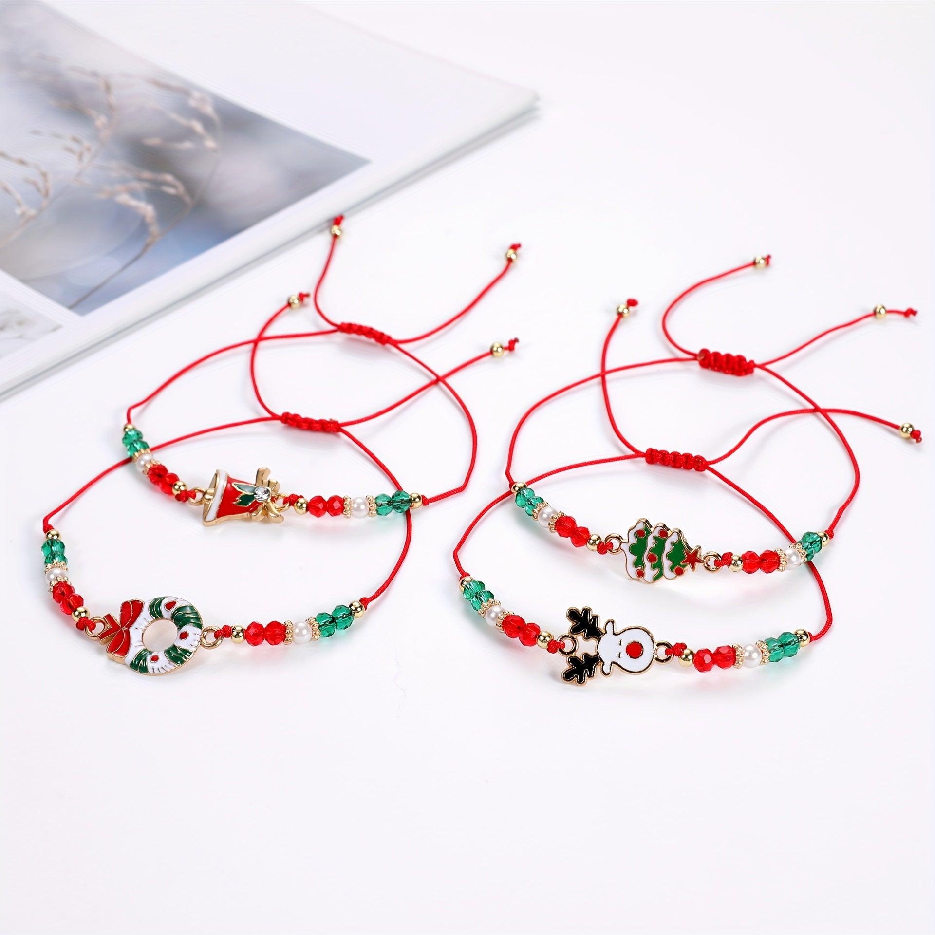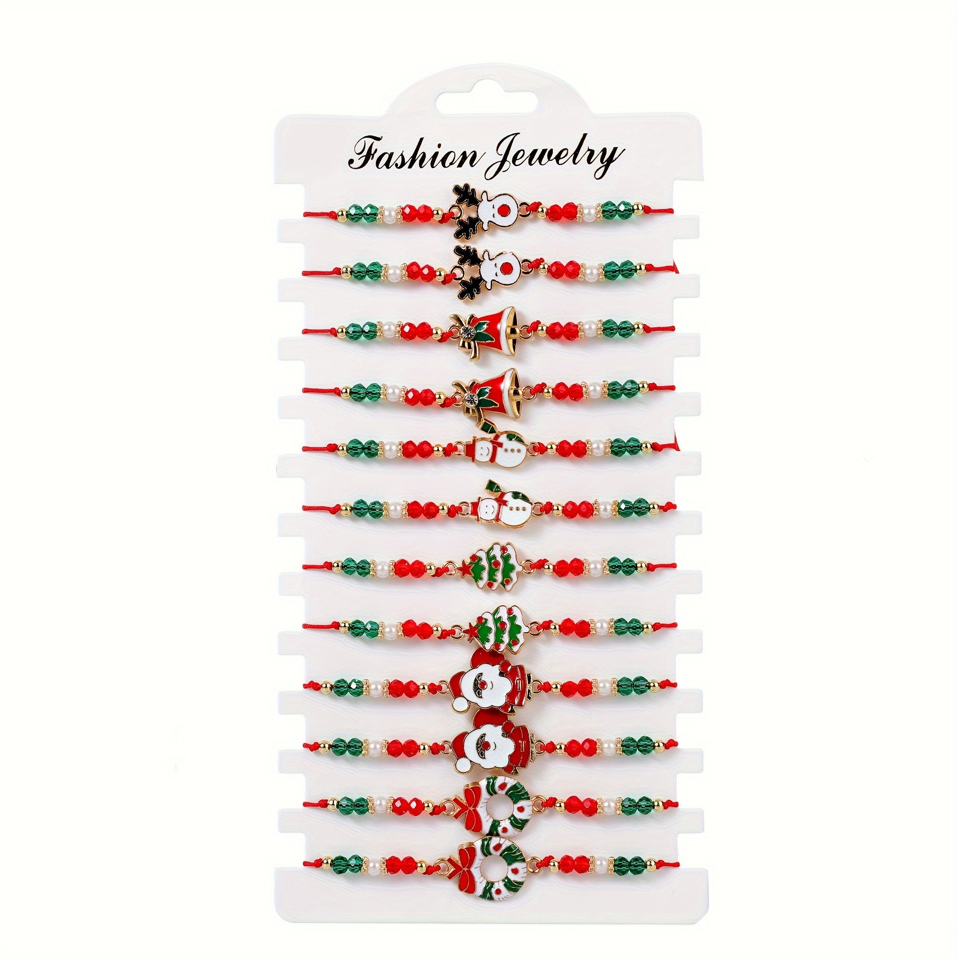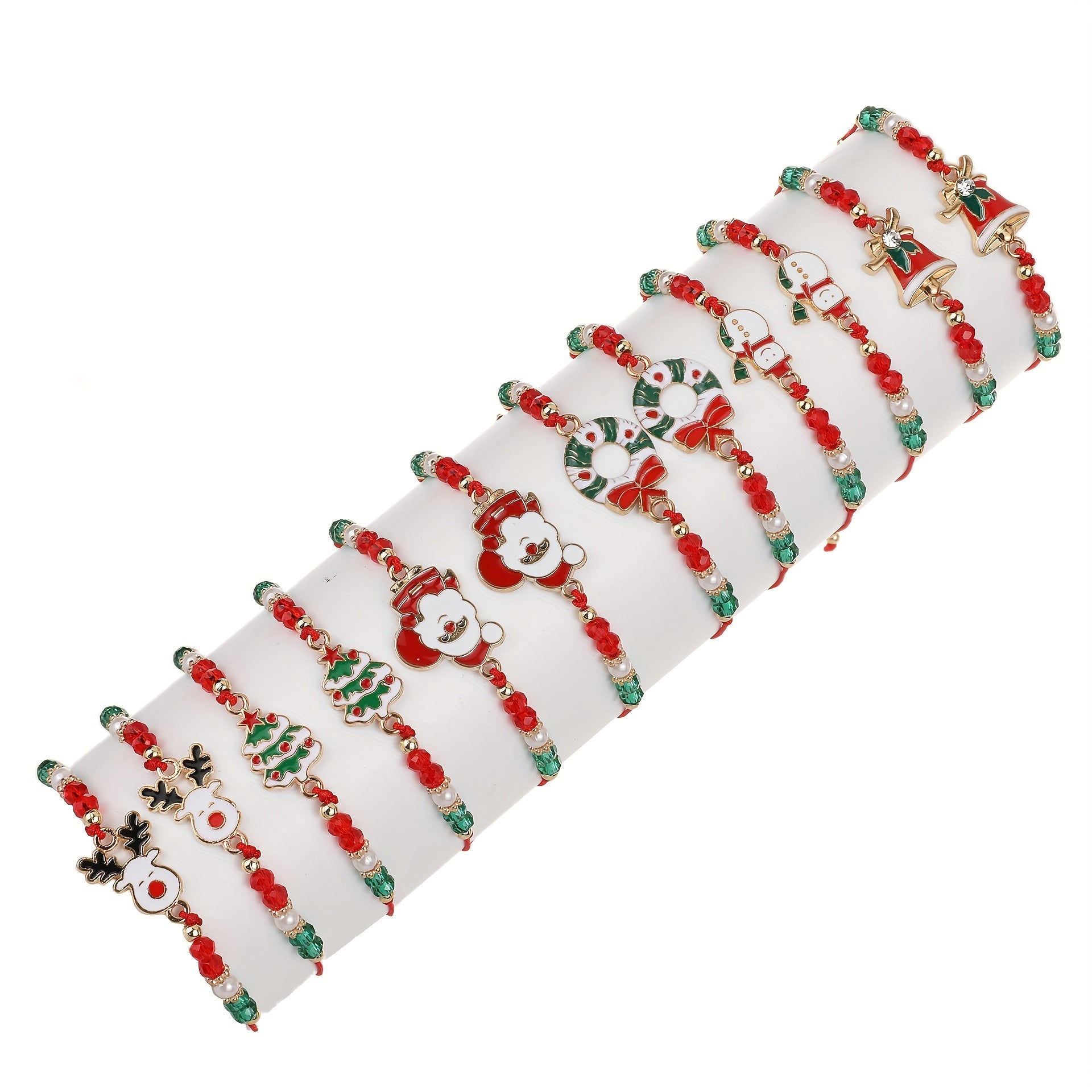 Yilning bayram mavsumi Charm bilaguzuk to'plami, Santa, Qorqiz va Qo'ng'iroq dizaynlari bilan tabiiy marjonlar - juftliklar, erkaklar, ayollar va yoshlar uchun ideal. Bayram daraxti va to'qilgan uslublarni o'z ichiga oladi. 12 dona mavjud.