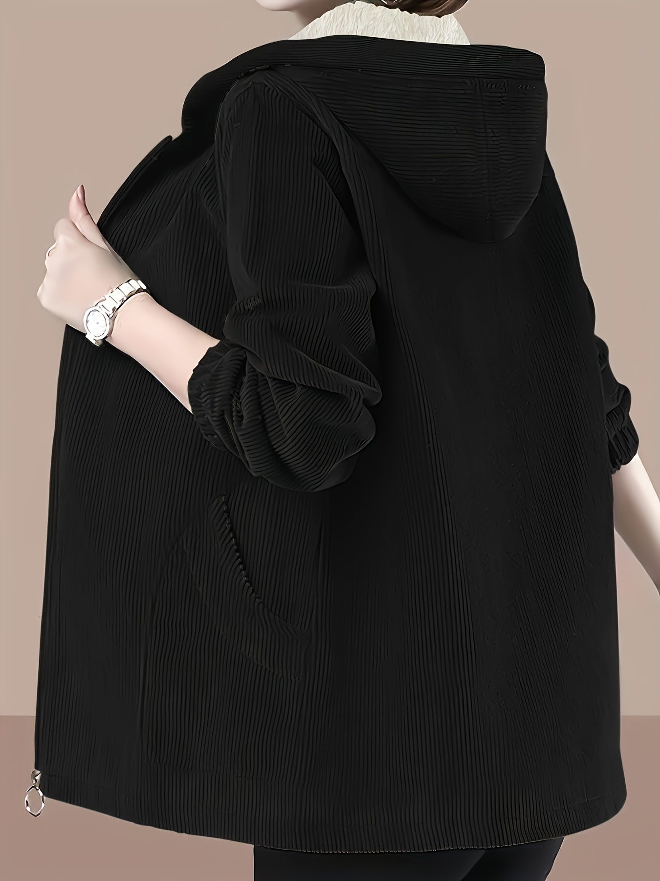 Kuz va qish uchun kapuchonli fermuarlı jaket, katta o'lchamdagi ayollar kiyimlari.