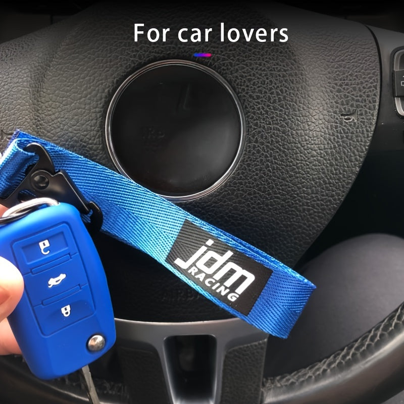 Issiq avtomobil kaliti zanjiri naylon tarmoq bilan ko‘k lentalik emblema kaliti bilan po‘lat klip bilan