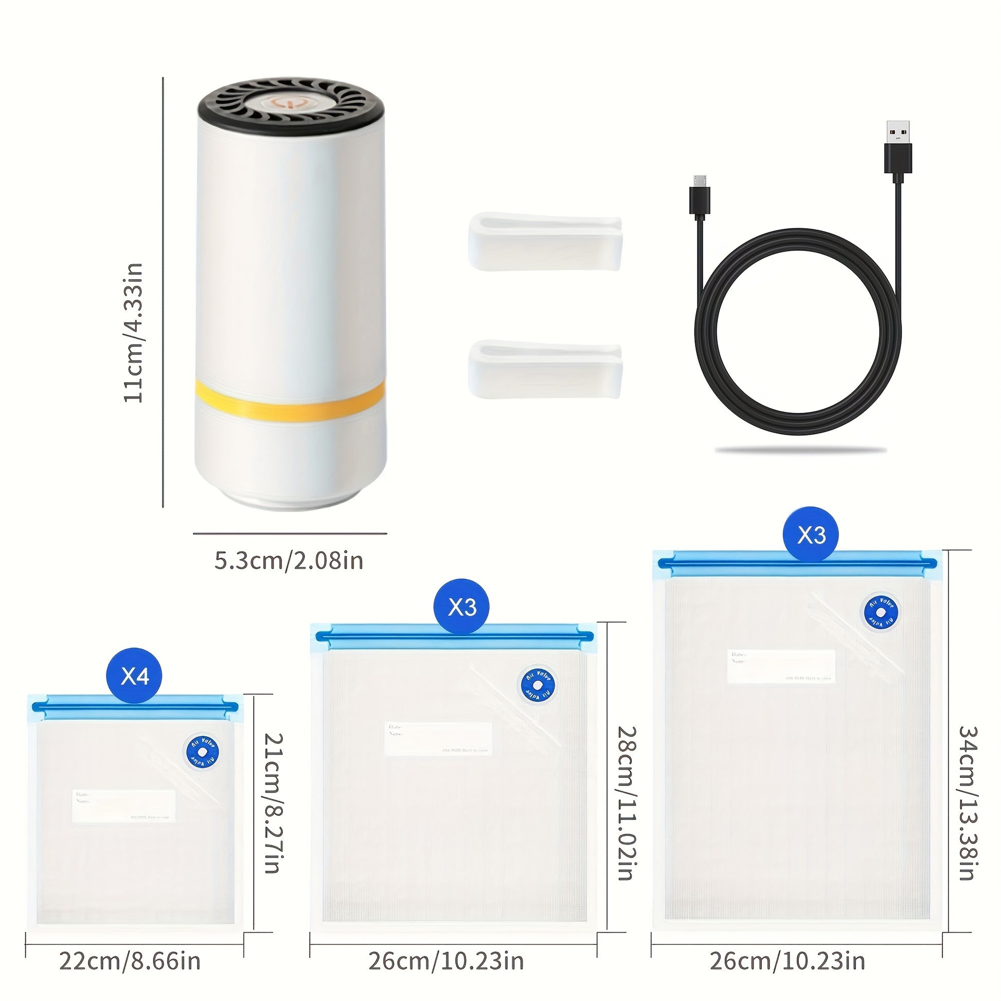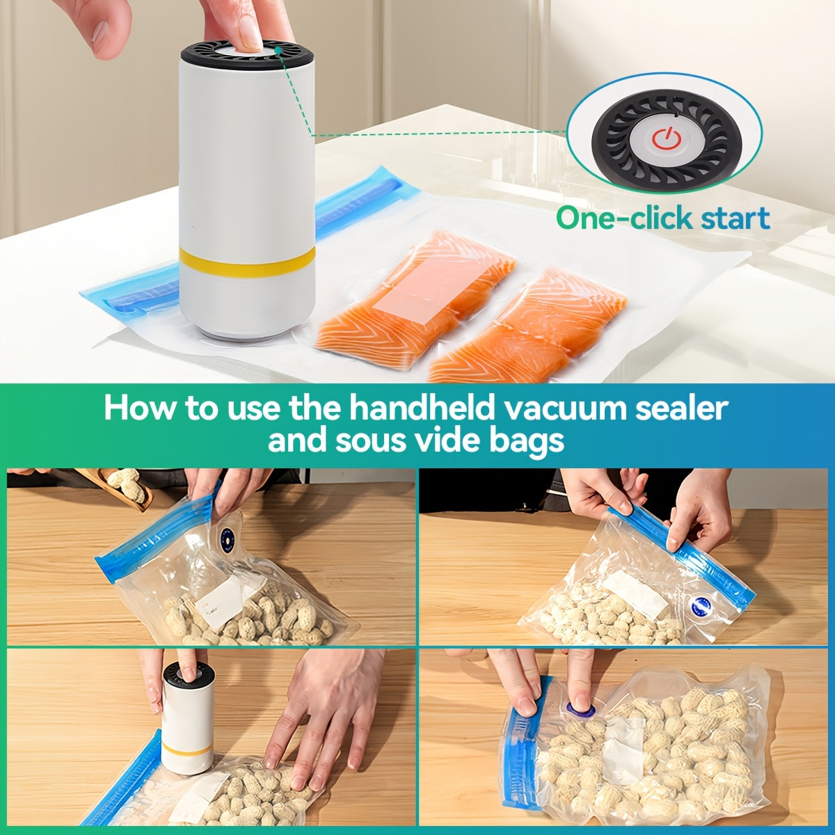 HOTU Mini Elektr vakuum yopishtiruvchi USB zaryadlash bilan, qayta to'ldiriladigan litiy batareya, 3 o'lchamdagi 10 ta oziq-ovqat saqlash sumkasi va portativ pompasi bilan Sous Vide, uy va sayohat uchun mo'ljallangan
