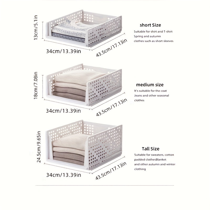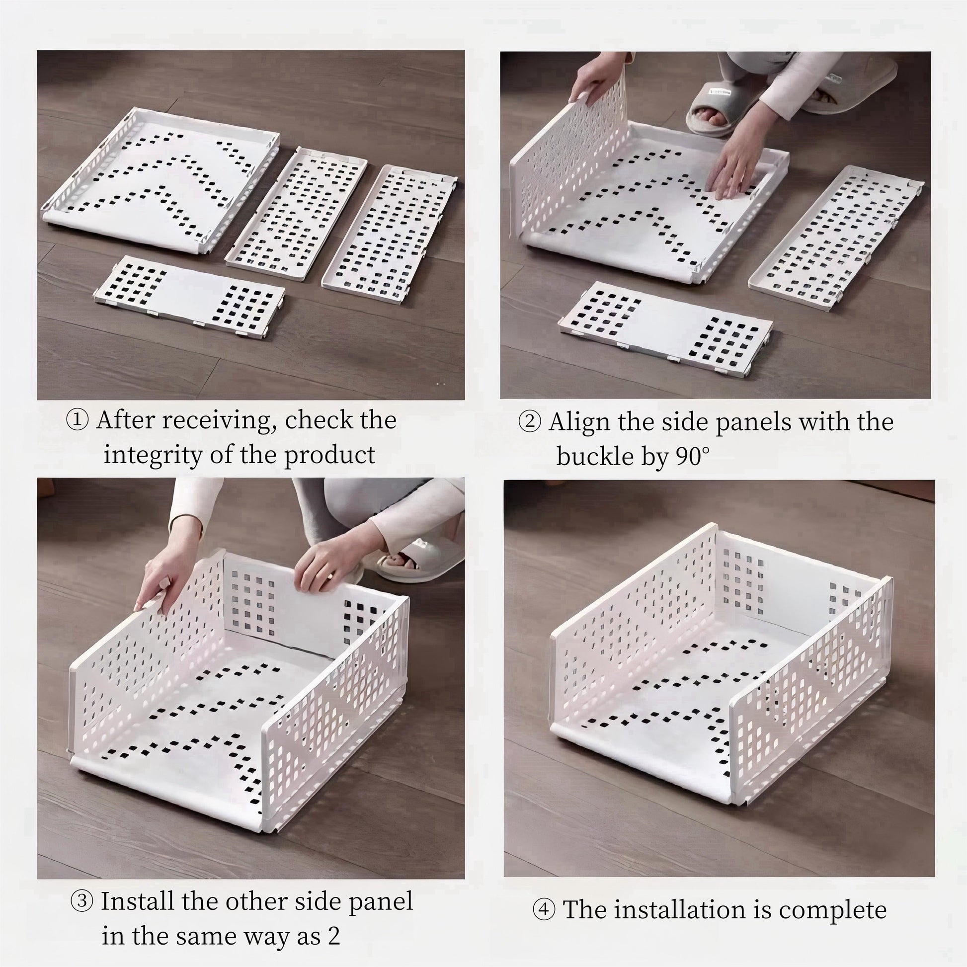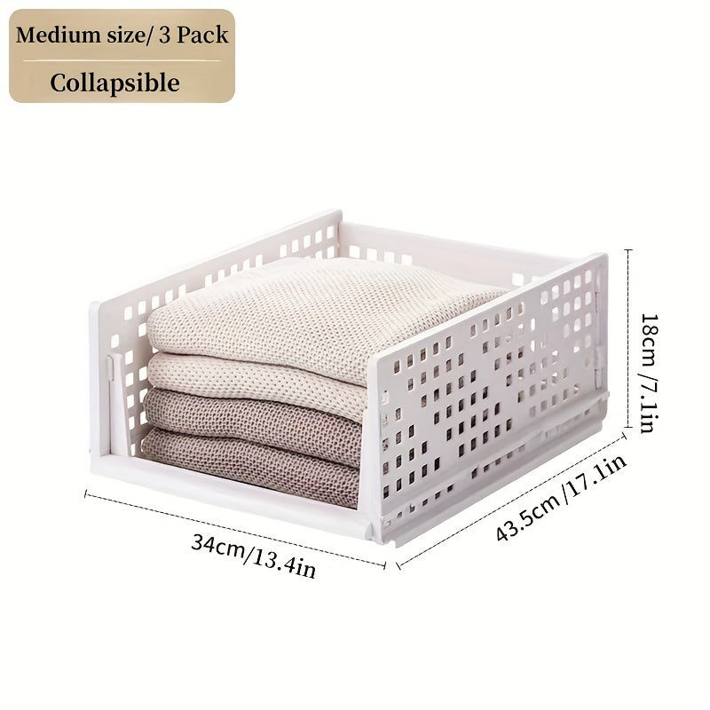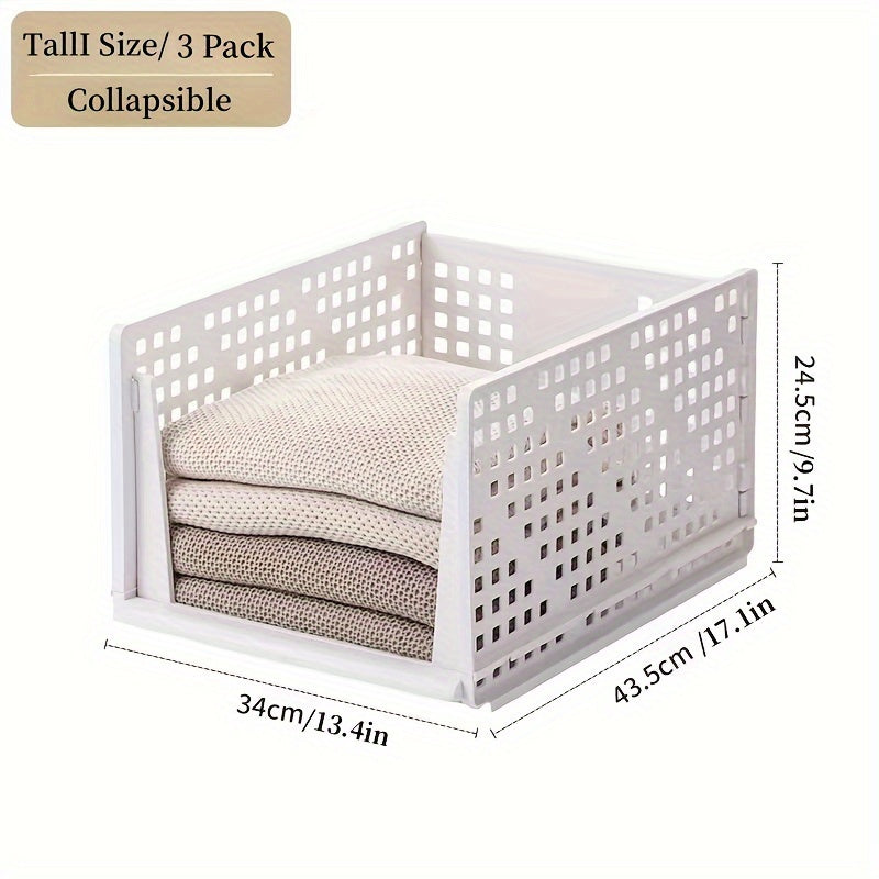 3-to'plamlik buklanuvchi plastmassa saqlash qutilari shkaf va yotoq xonasi uchun tashkil etish