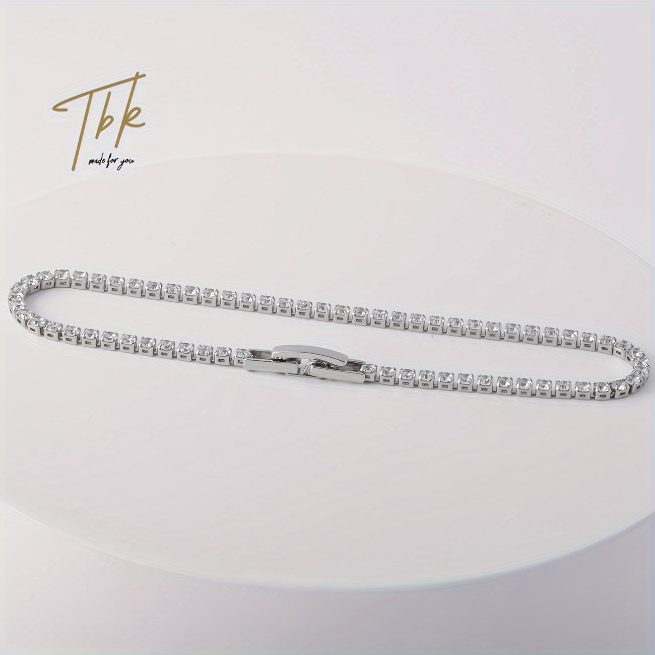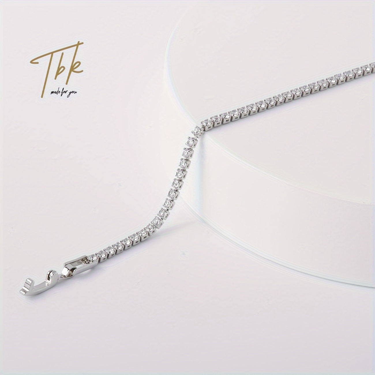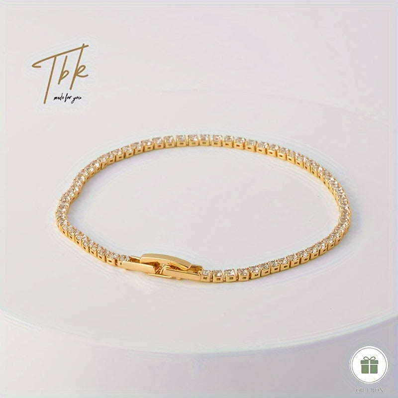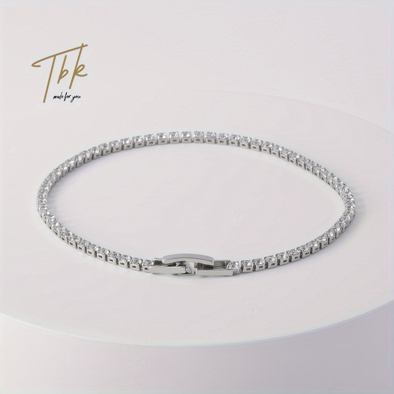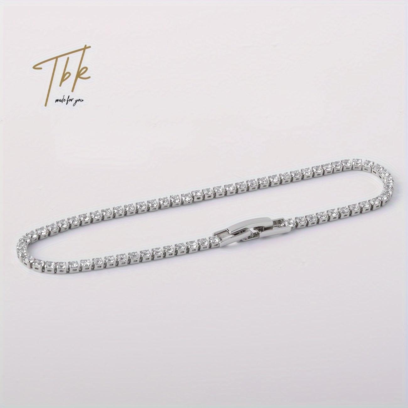 Bu porloq titan po'latidan yasalgan, zirconiy bilan bezatilgan tennis bilaguzuk bilan muzlatib oling, qo'shimcha hashamat uchun sovg'a qutisida taqdim etilgan.