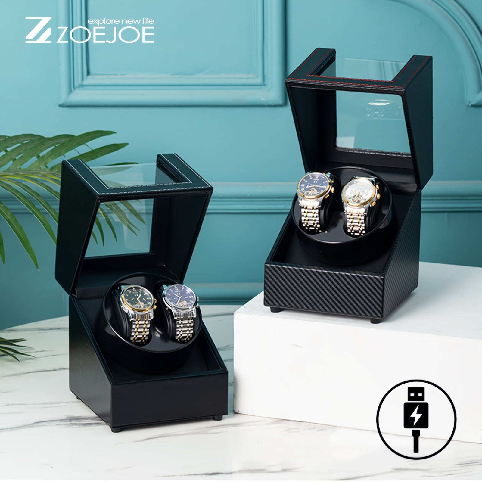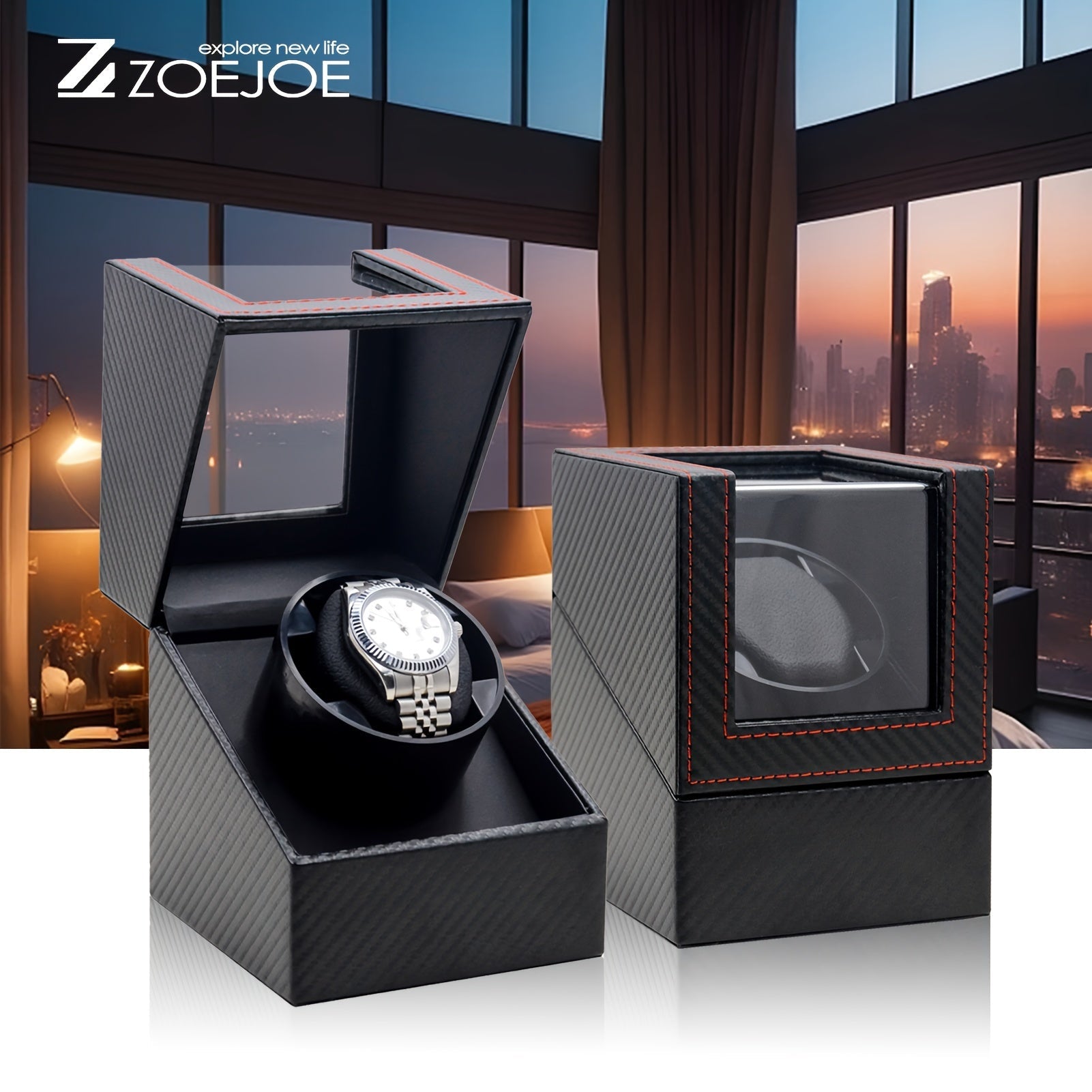 Erkaklar va ayollar uchun qora PU karbon tolali soat o'rash qutisi, bitta yoki ikkita joy bilan