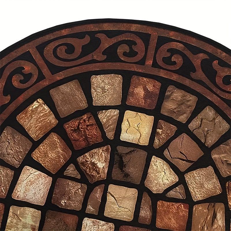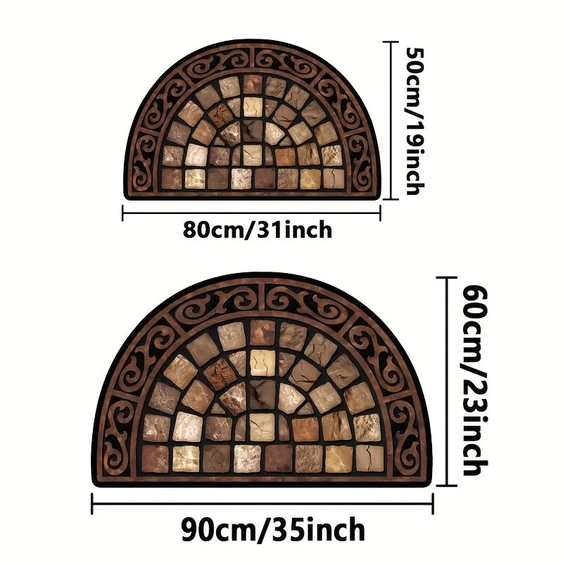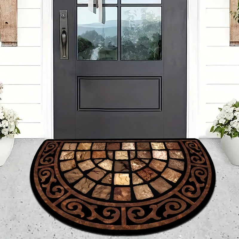 O'ziga xos Retro Yarim Doira Velur Eshik Gilami, Sirpanmaydigan Orqa Qismi - Nafis Mozaika Dizayni, Kirish Joyi, Yotoqxona, Oshxona, Hammom uchun Mukammal - Tozalash Oson, 100% Poliesterdan Yasalgan, Hammom Gilami, Thanksgiving uchun Ajoyib