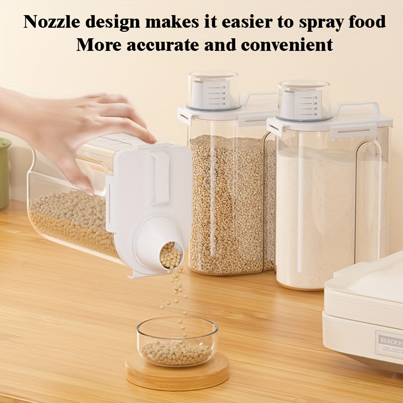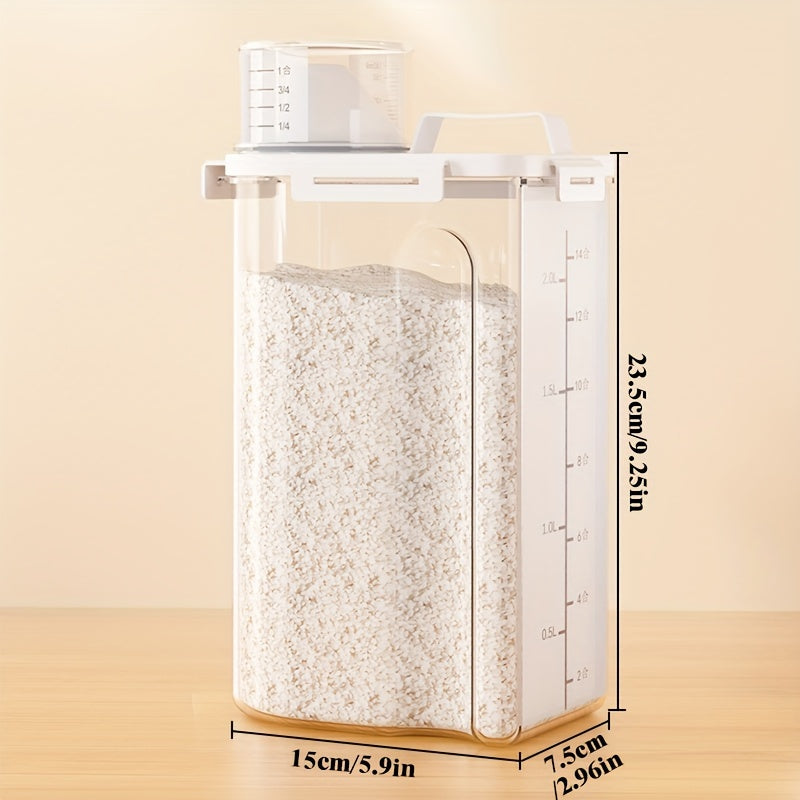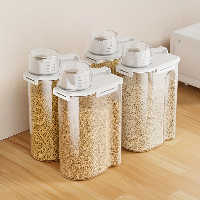 "Insektlardan himoyalangan va namlikdan himoyalangan qopqoqli saqlash konteyneri - don, yong'oq, un, guruch va boshqa oziq-ovqat mahsulotlari uchun ideal. Portativ, oqmas va oshxona tashkiloti va saqlash uchun mukammal. Ko'p funksiyali oshxona aksessuar."