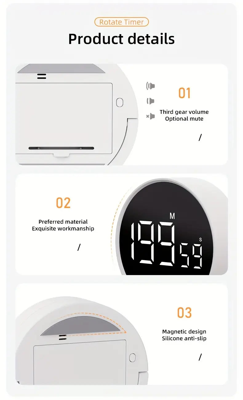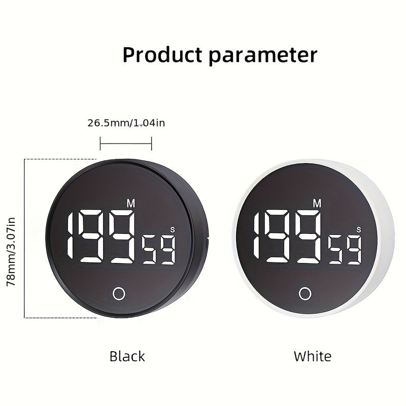Katta LCD ekranli integratsiyalashgan magnit raqamli hisoblagich taymeri, ovqat pishirish, sport zallari, uchrashuvlar va yotoqxonalarda foydalanish uchun. 3 AAA batareyasi bilan ishlaydi (batareyalar kiritilmagan).